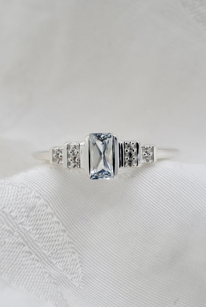 Vintage zilveren ring met topaas