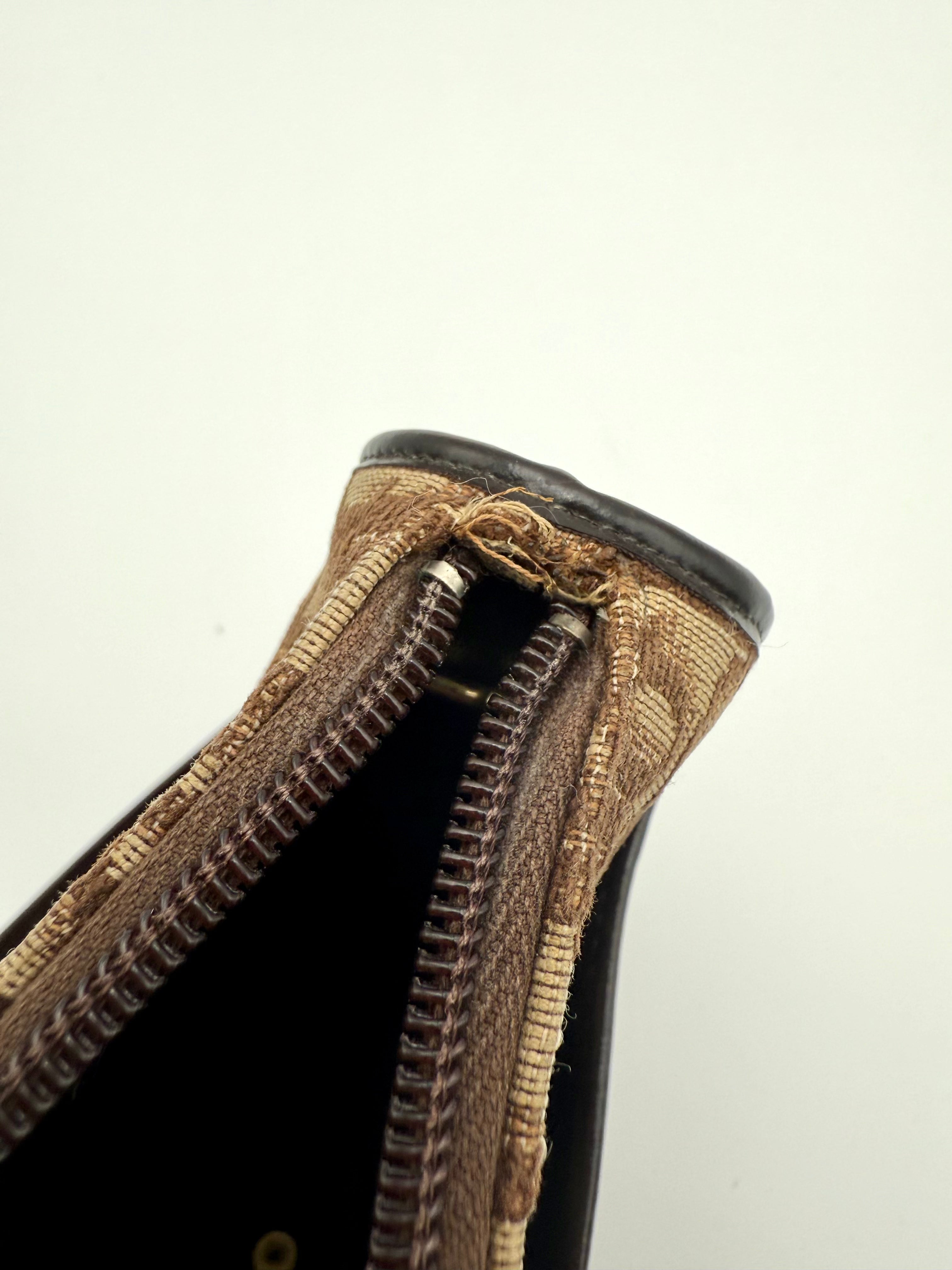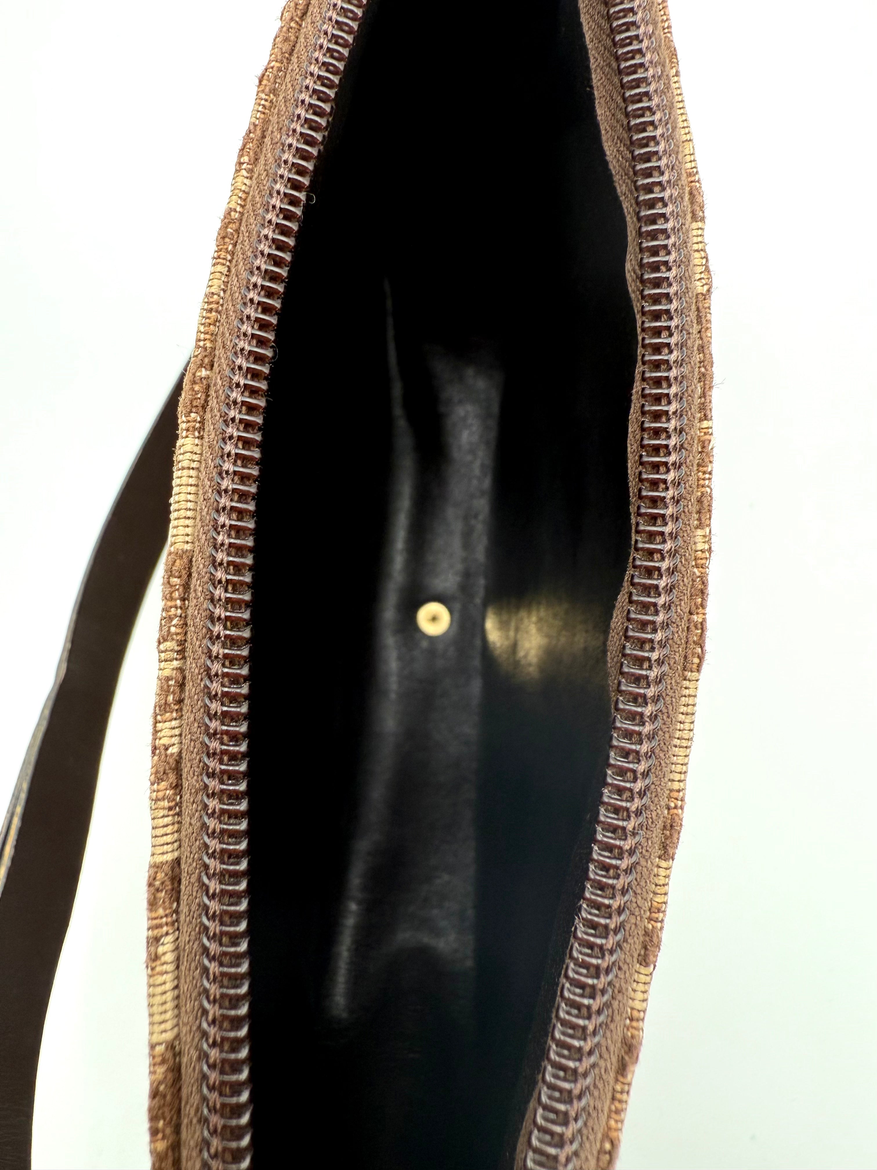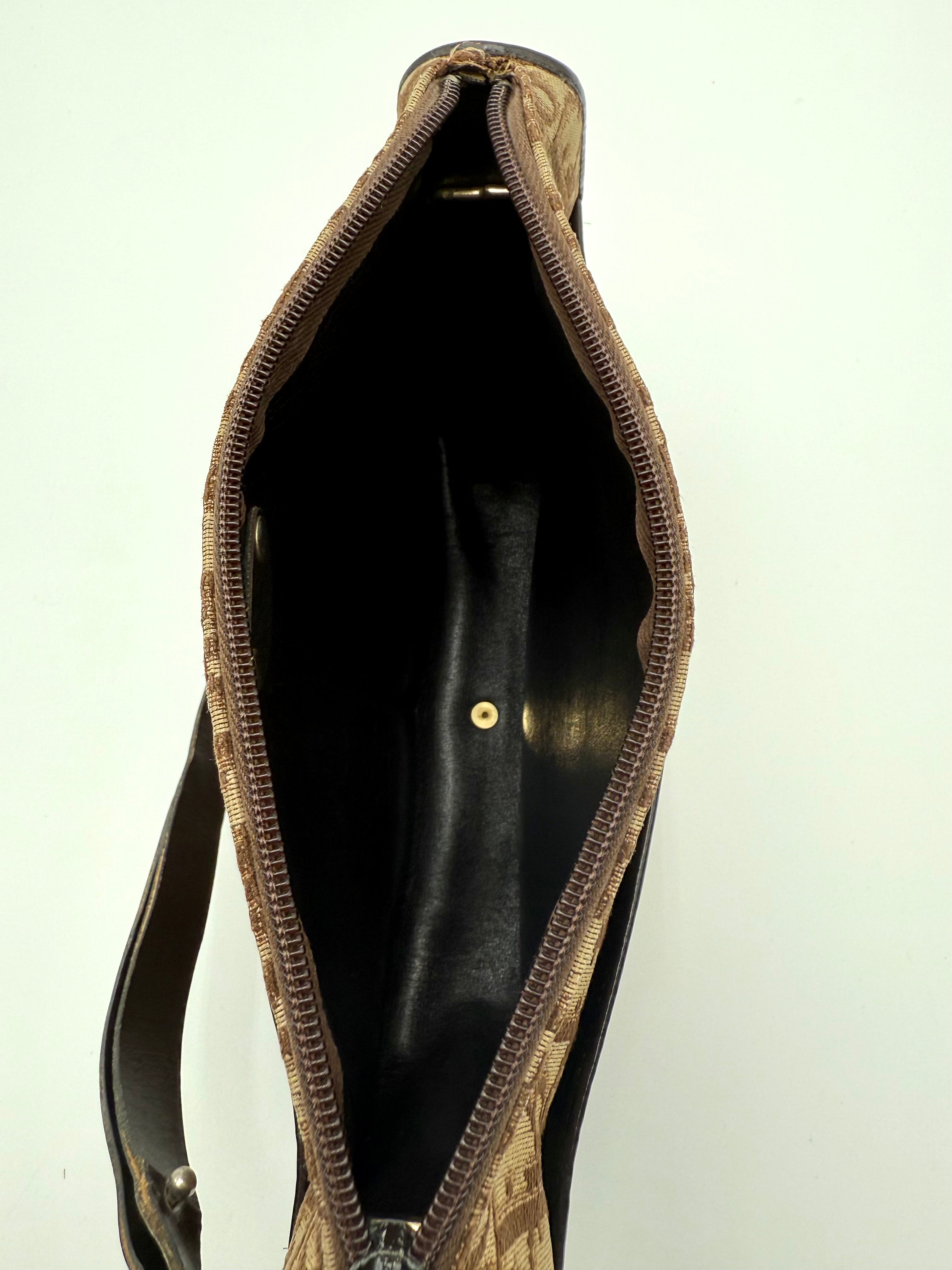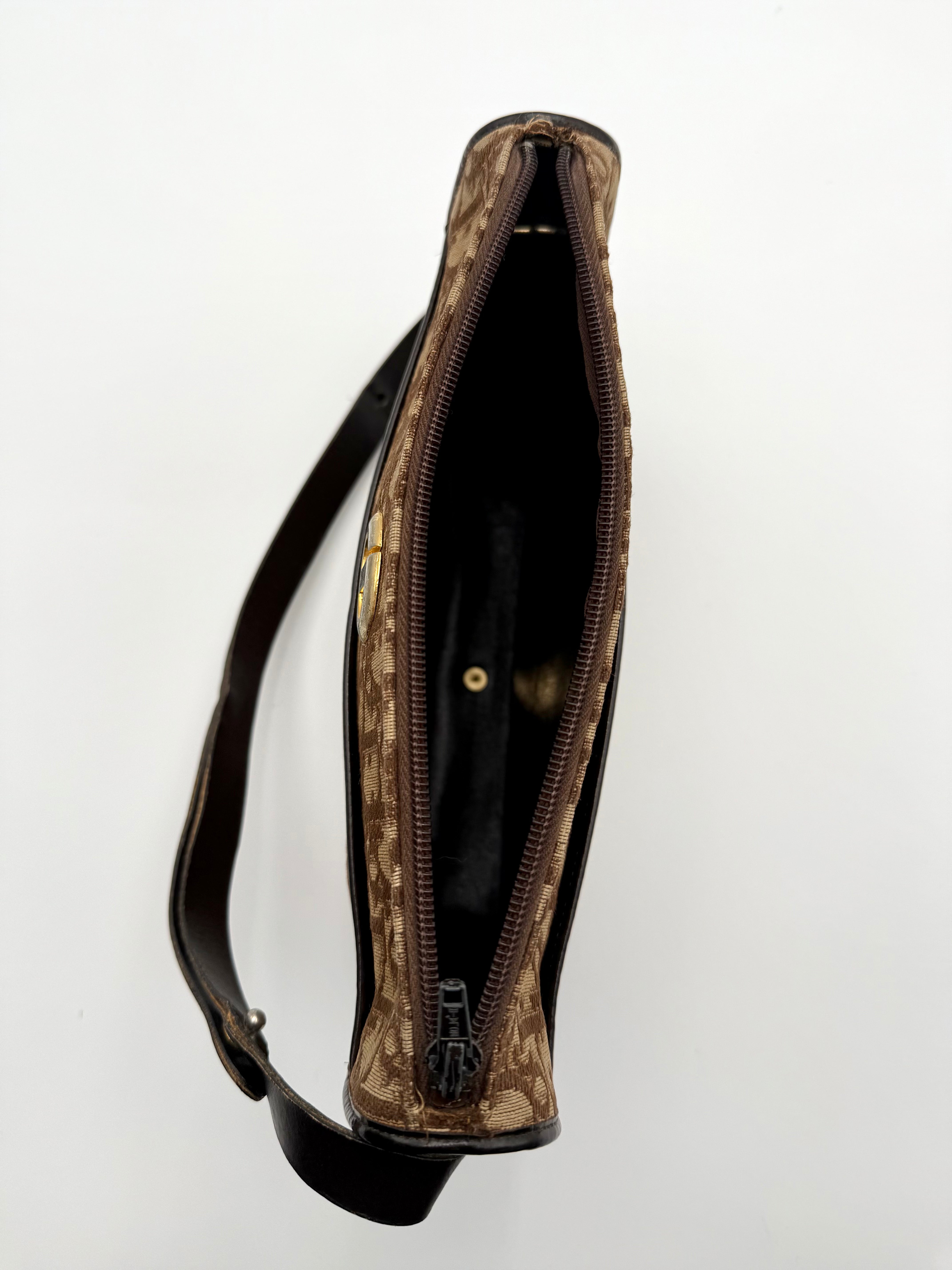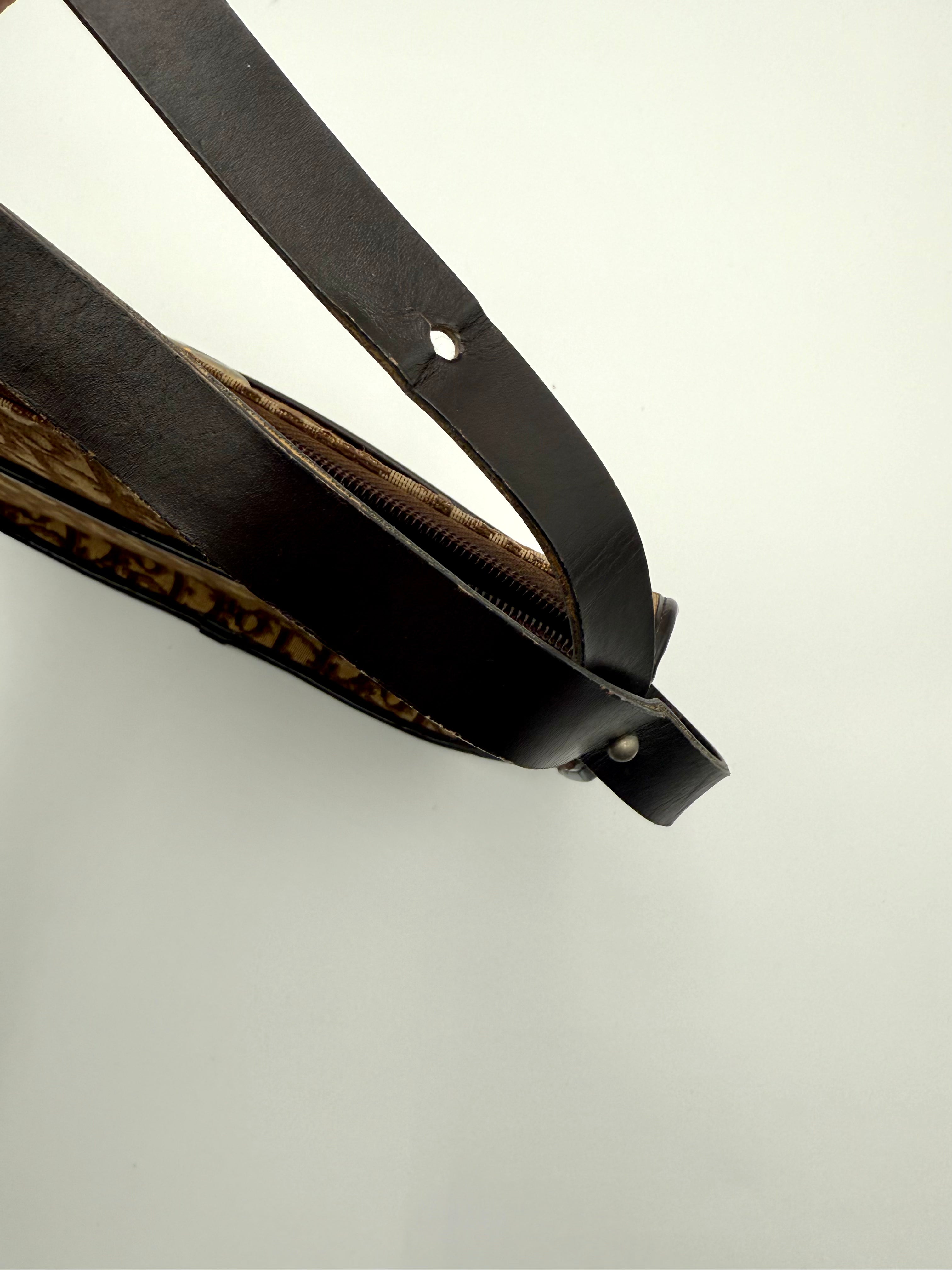 Tweedehands Christian Dior Trotter Canvas bag in de kleur bruin/beige met gouden hardware. De tas beschikt over twee voorvakjes en een achtervakje. De tas kan kort en als crossbody gedragen worden. Het item verkeert in een zeer goede vintage staat, met algemene gebruikssporen. De tas wordt geleverd in onze mooie Moon flower dustbag.