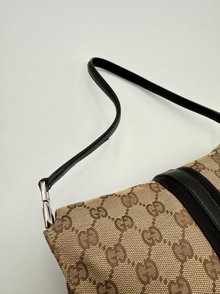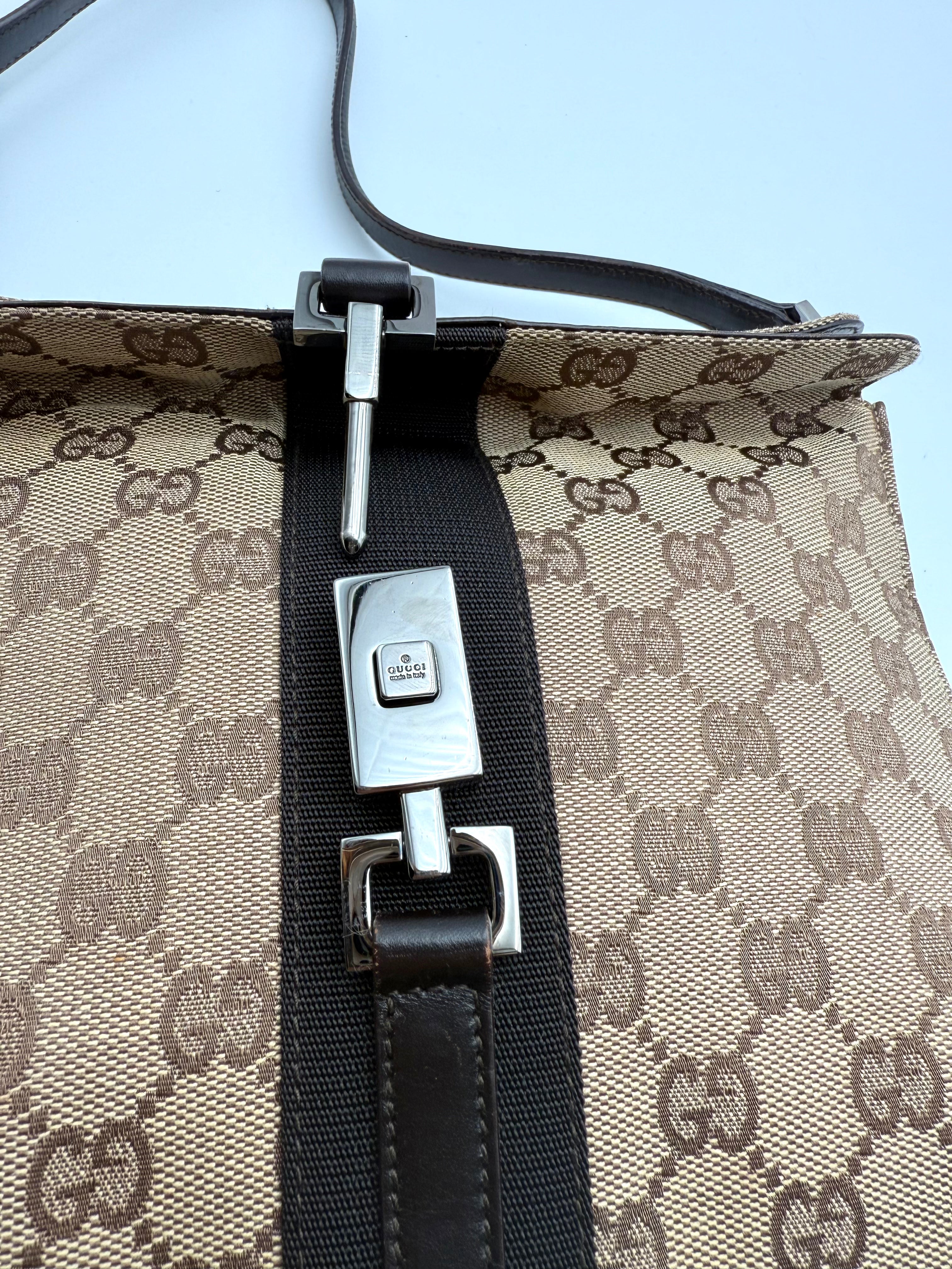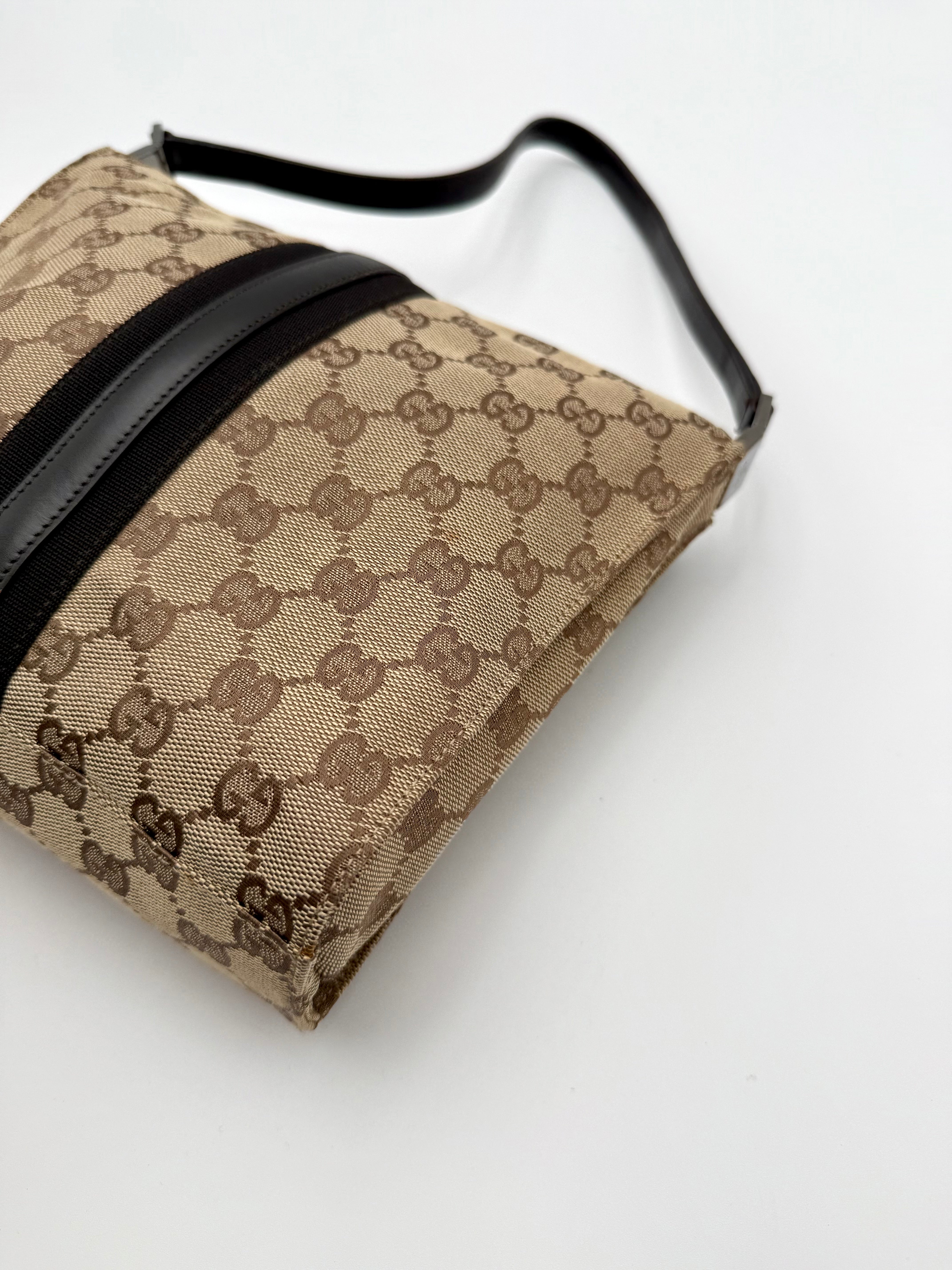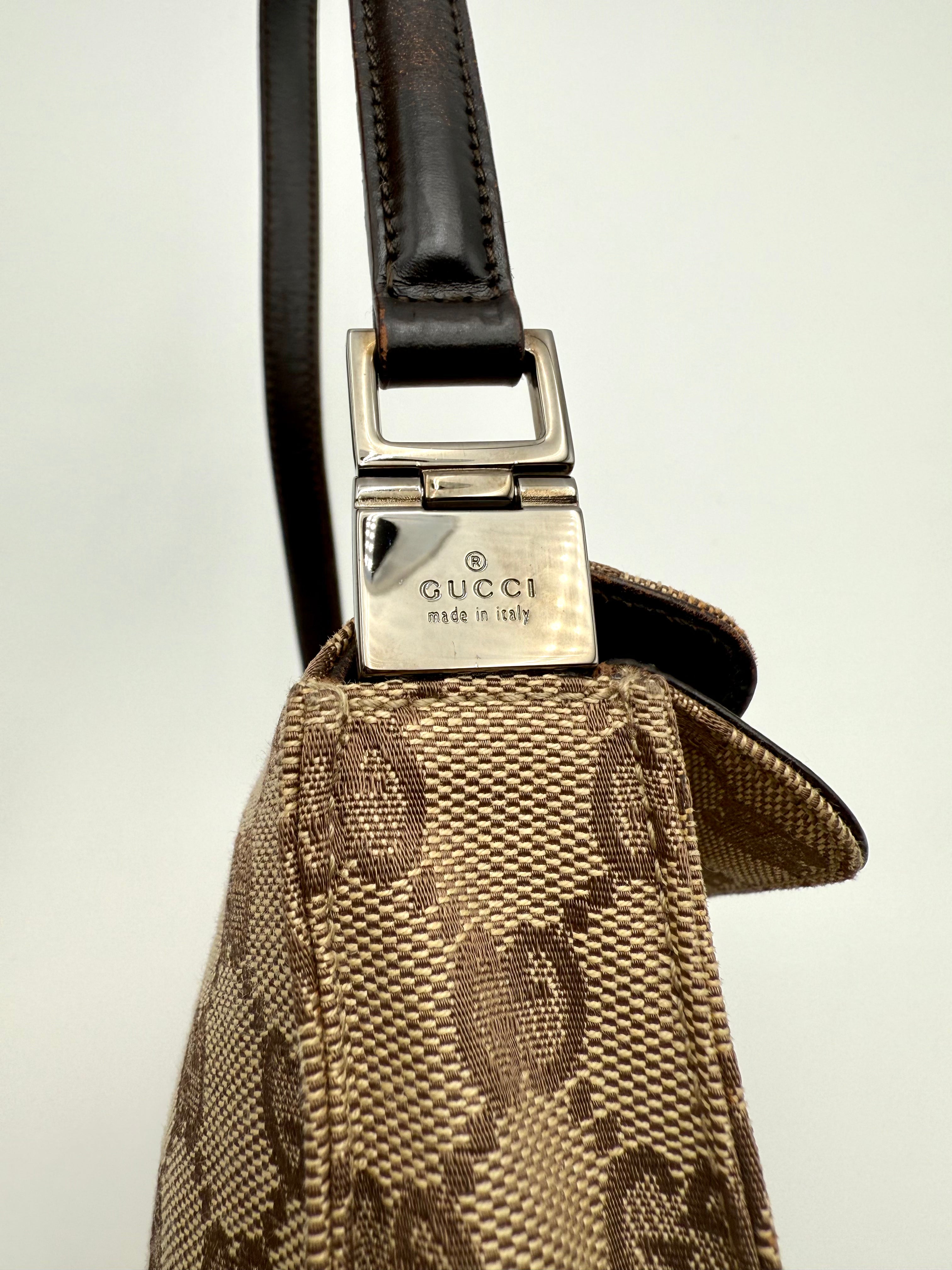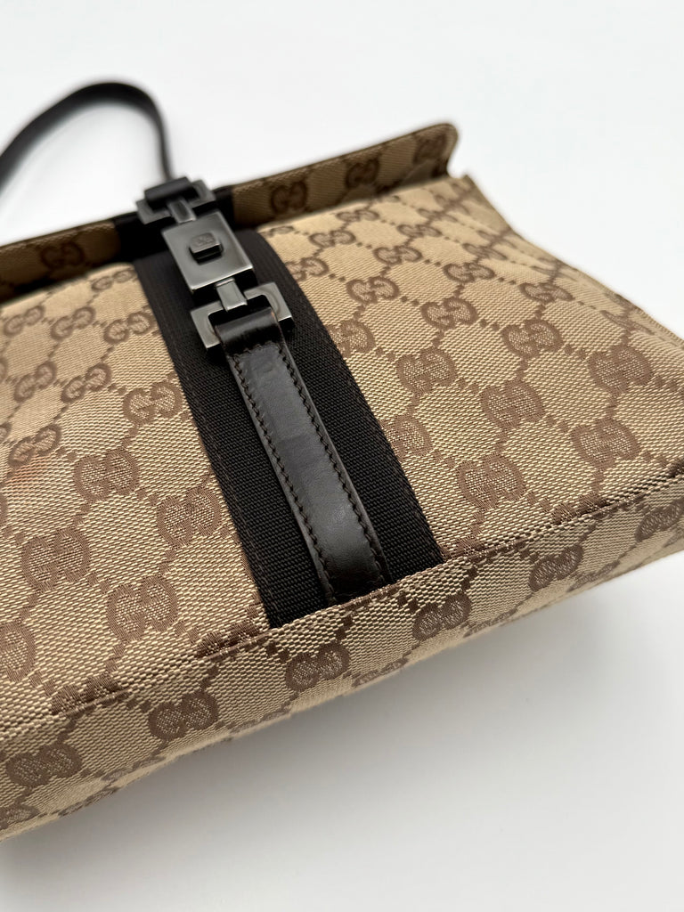Tweedehands GUCCI Supreme canvas bag. De tas is van canvas met een mooi leren hengsel. De tas sluit met een clip en beschikt over een binnenvak met rits. Het item verkeert in een mooie vintage staat, met algemene gebruikssporen. De tas wordt geleverd in onze mooie Moon flower dustbag.