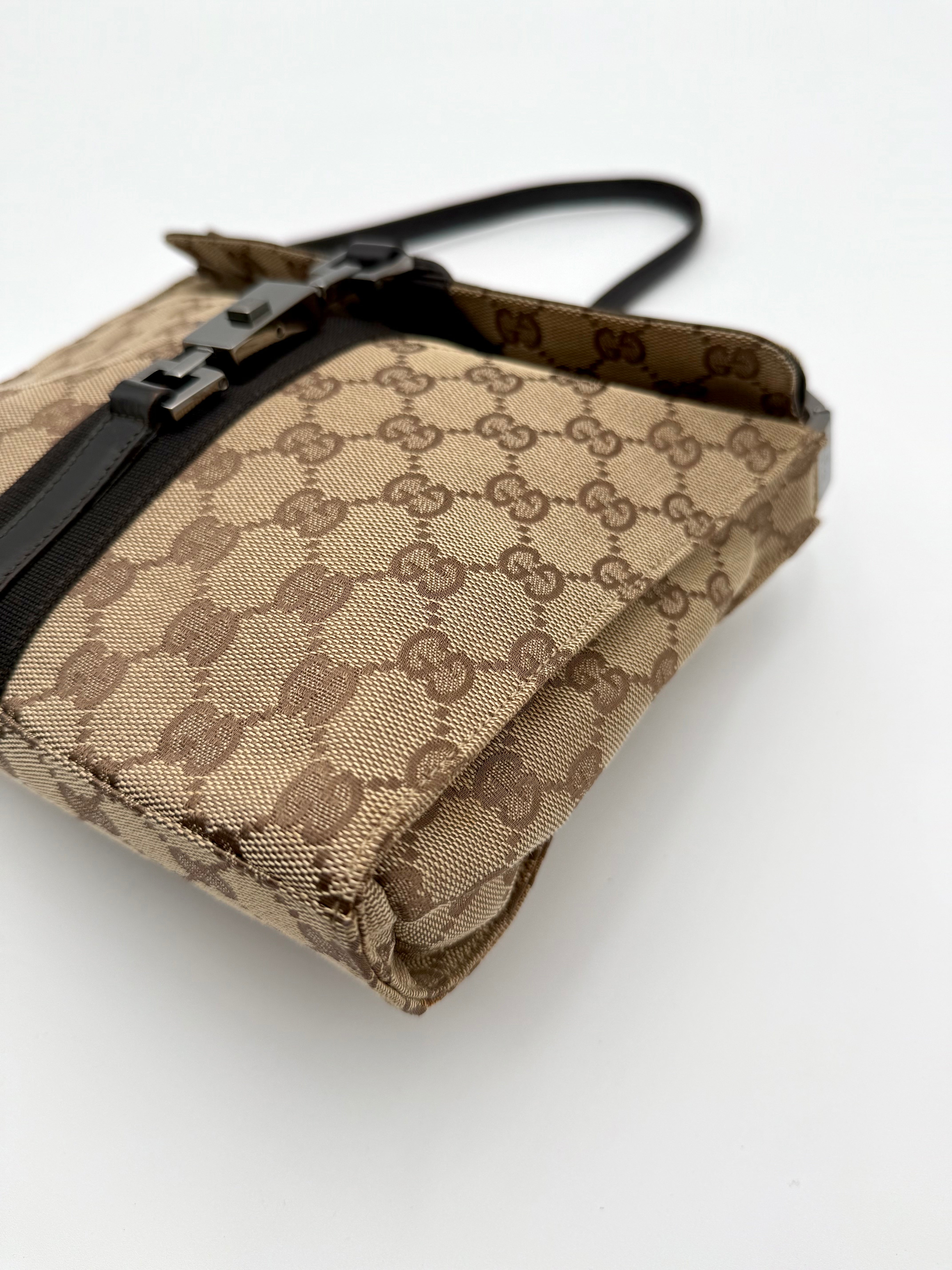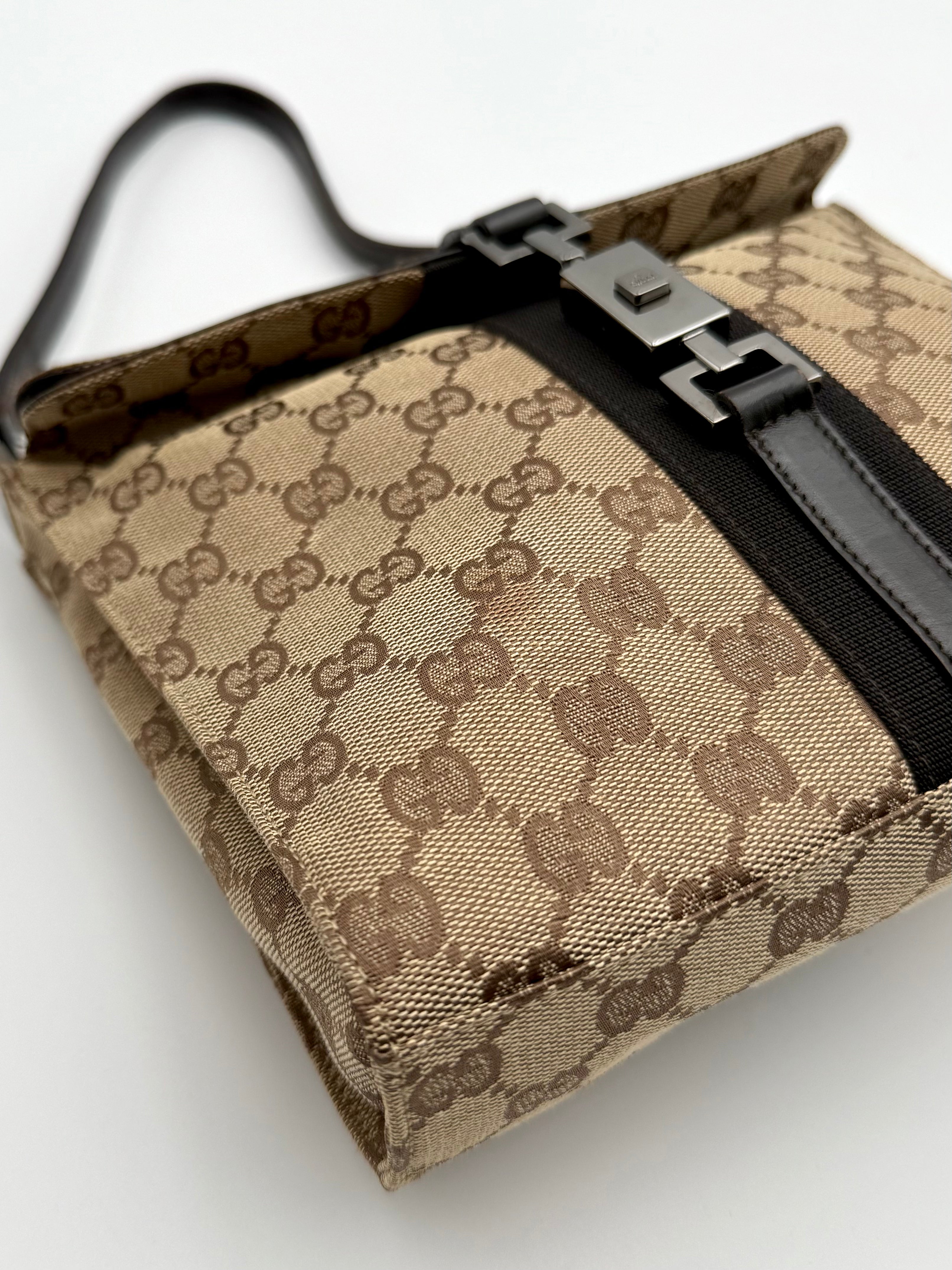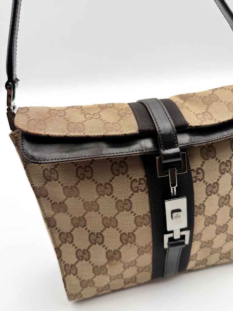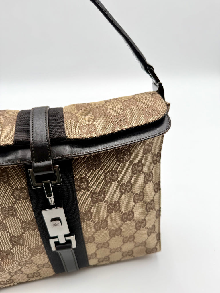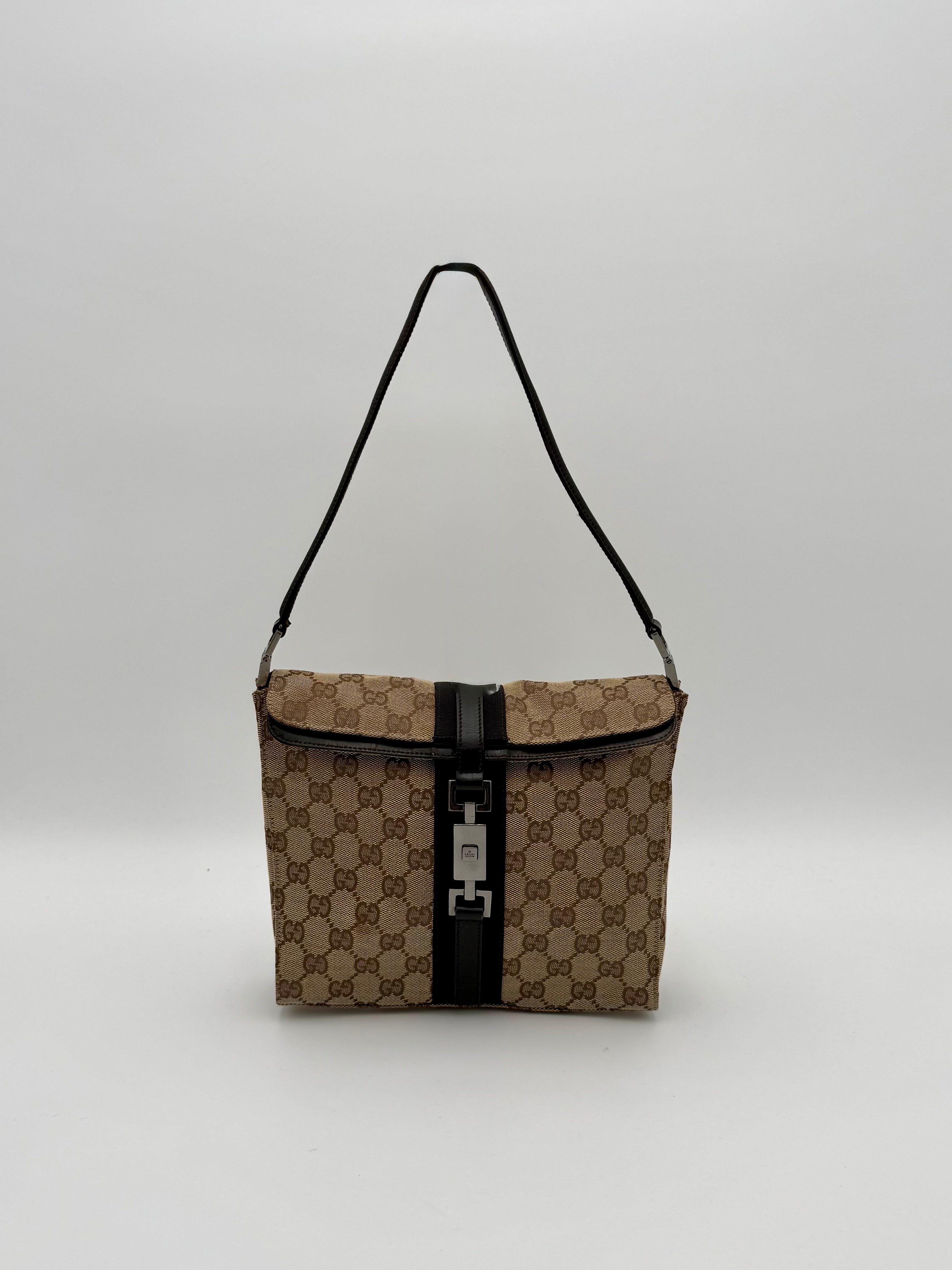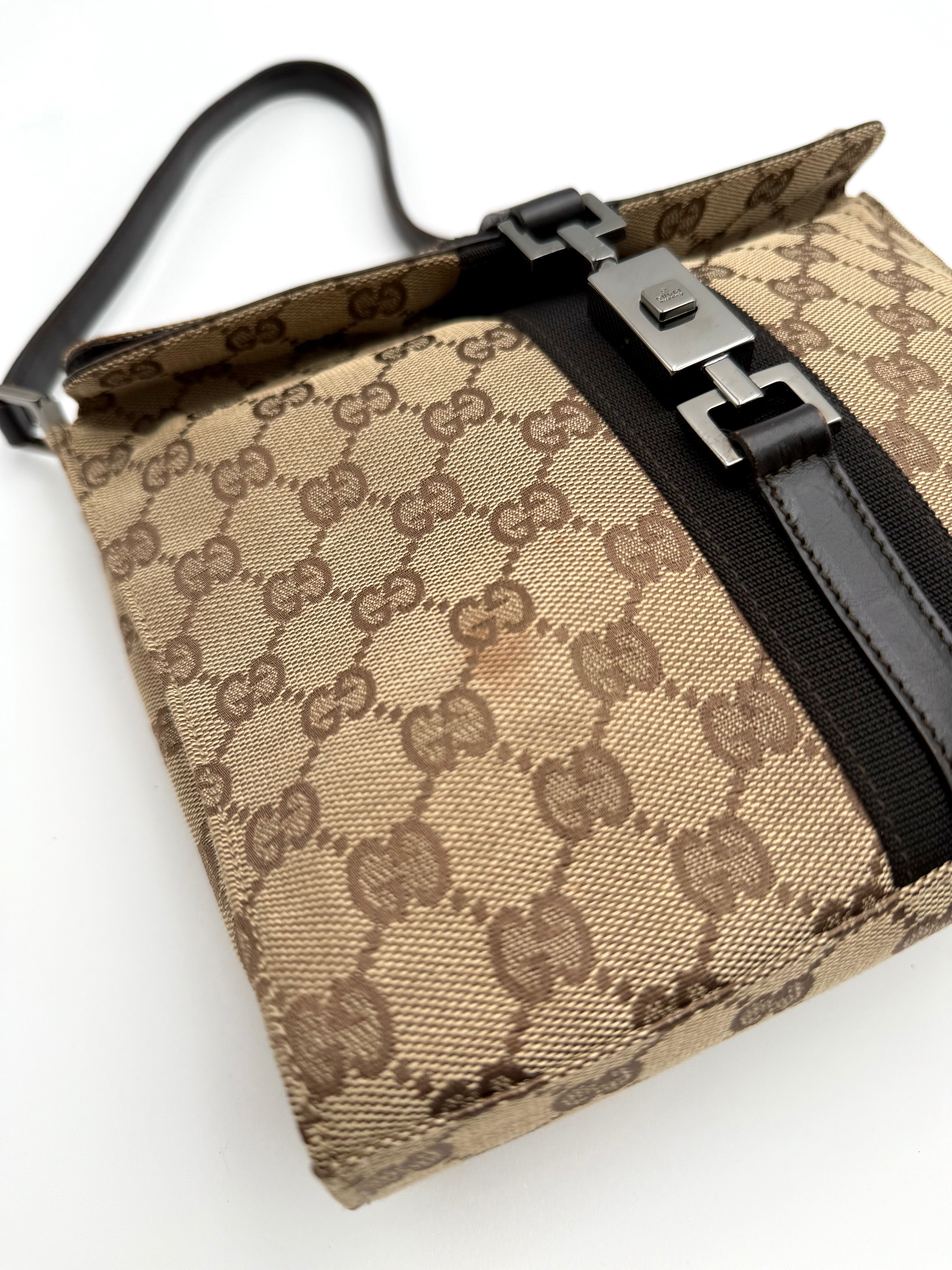 Tweedehands GUCCI Supreme canvas bag. De tas is van canvas met een mooi leren hengsel. De tas sluit met een clip en beschikt over een binnenvak met rits. Het item verkeert in een mooie vintage staat, met algemene gebruikssporen. De tas wordt geleverd in onze mooie Moon flower dustbag.