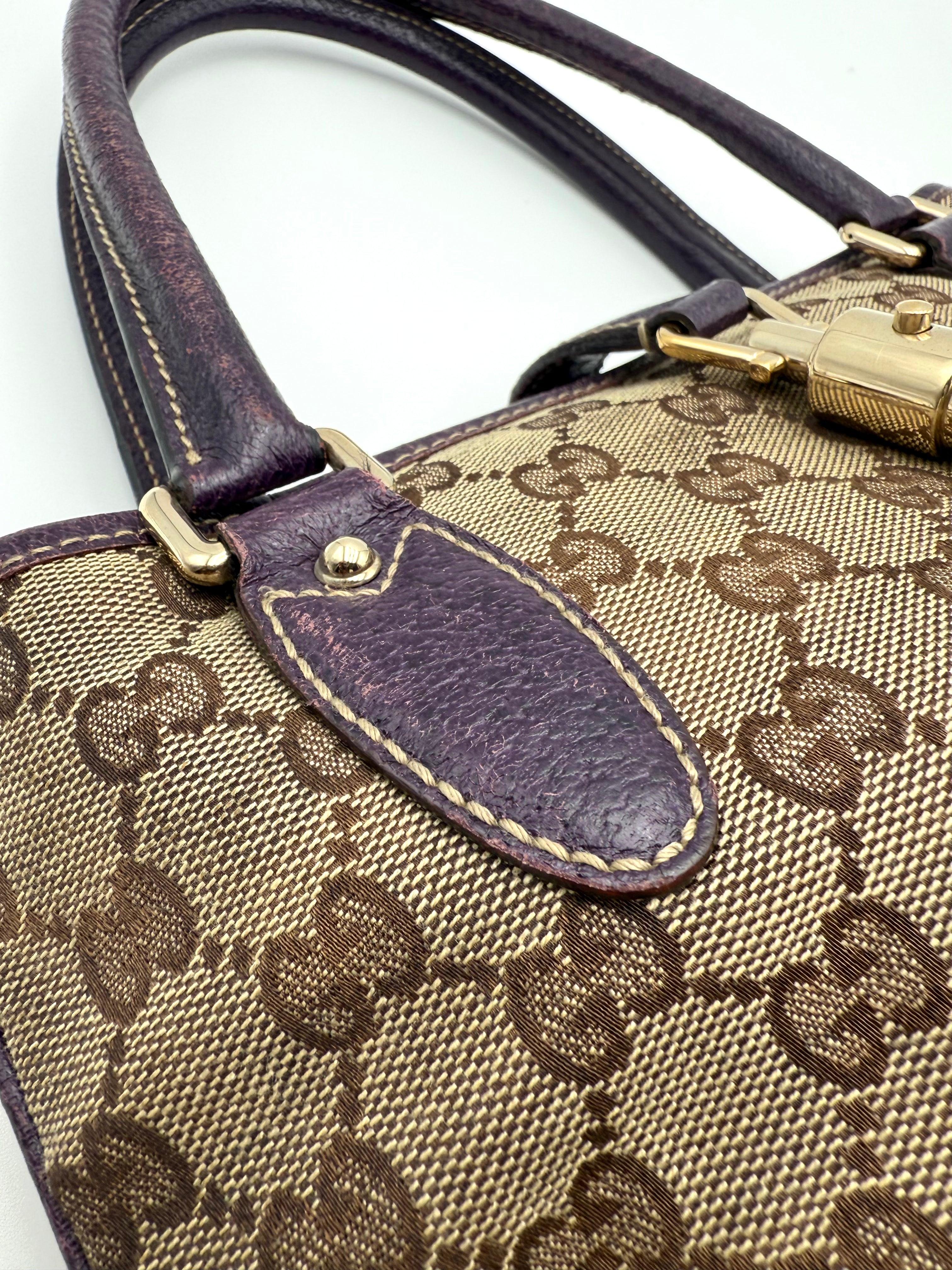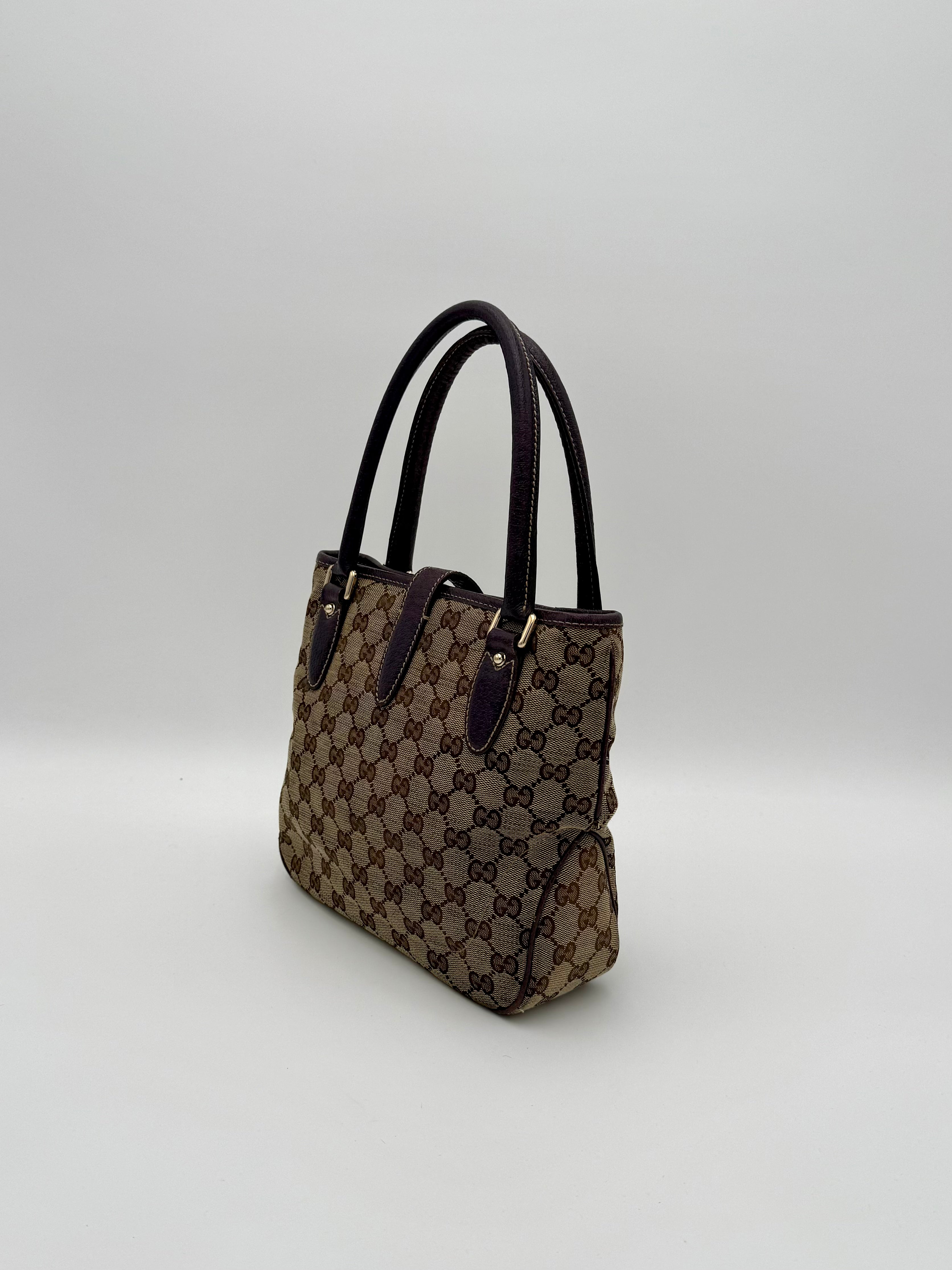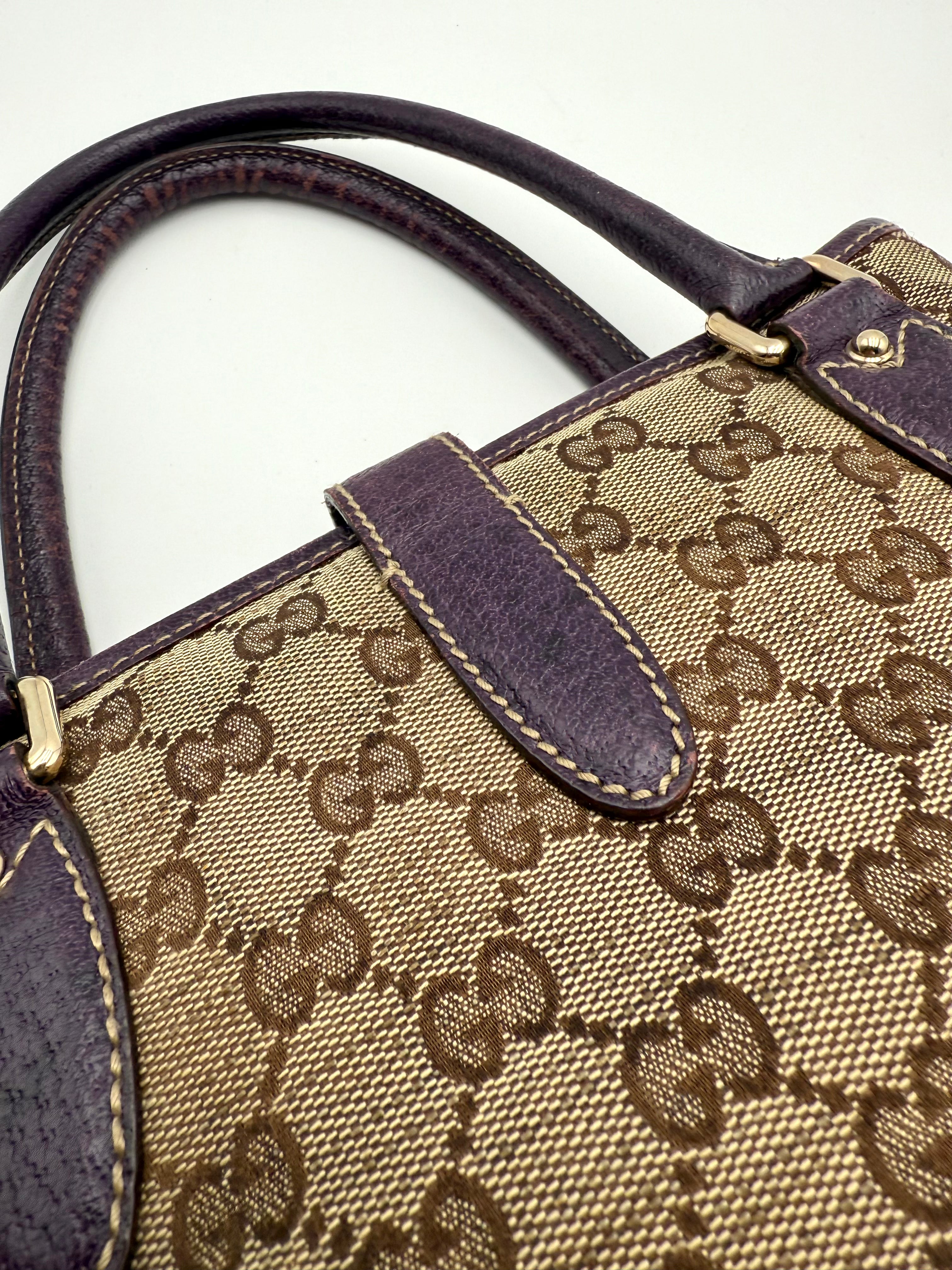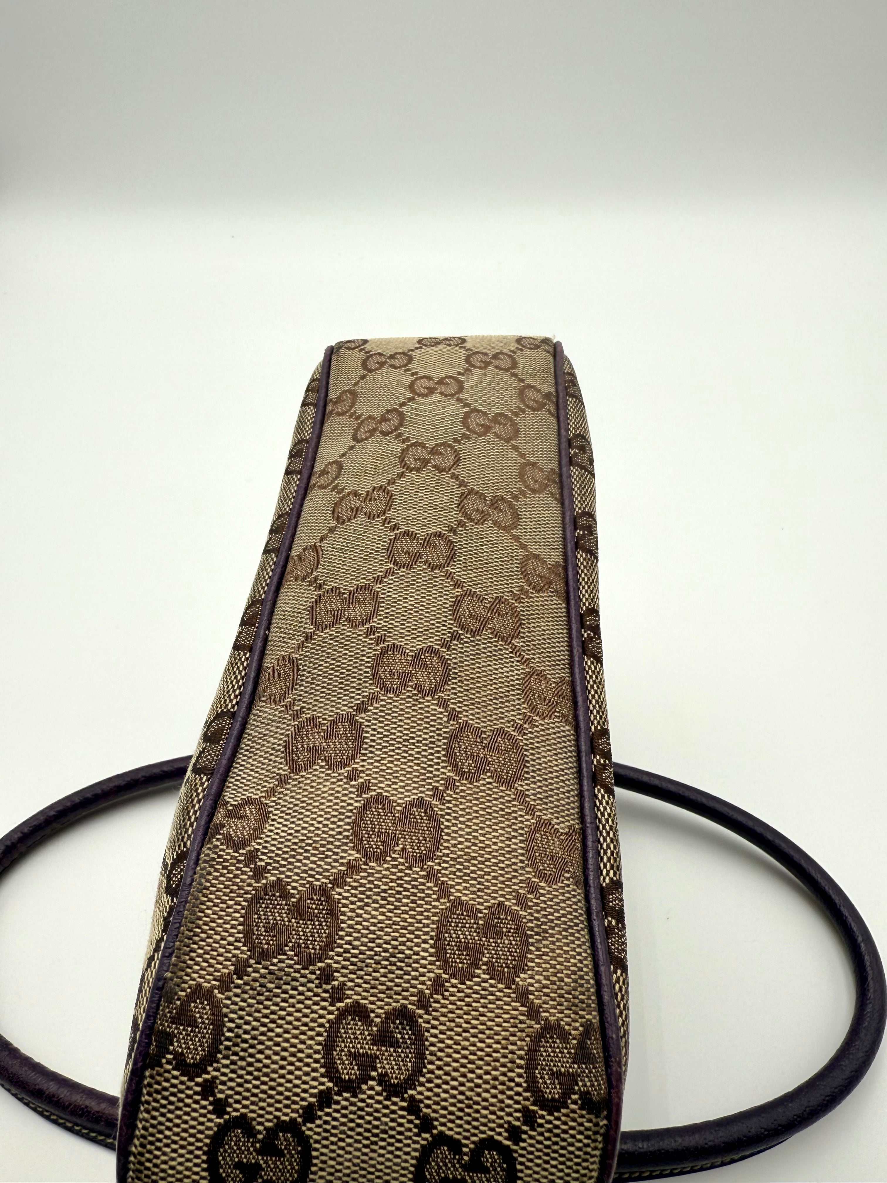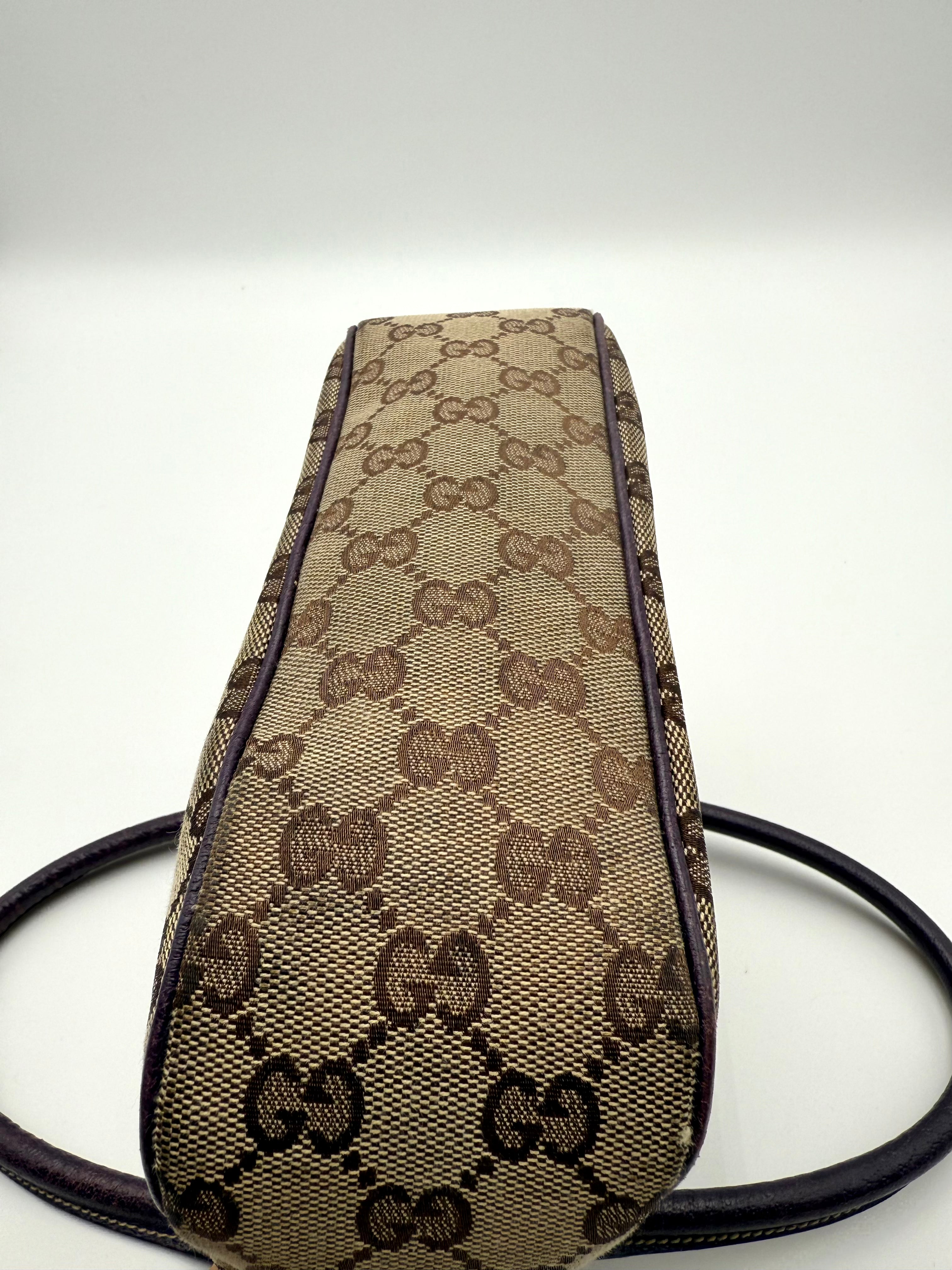 Tweedehands GUCCI Jackie canvas bag. De tas is van canvas met mooie leren hengsels. De tas sluit met een clip en beschikt over een binnenvakje met een rits. Het item verkeert in een perfecte vintage staat, met algemene gebruikssporen. De tas wordt geleverd in onze mooie Moon flower dustbag.