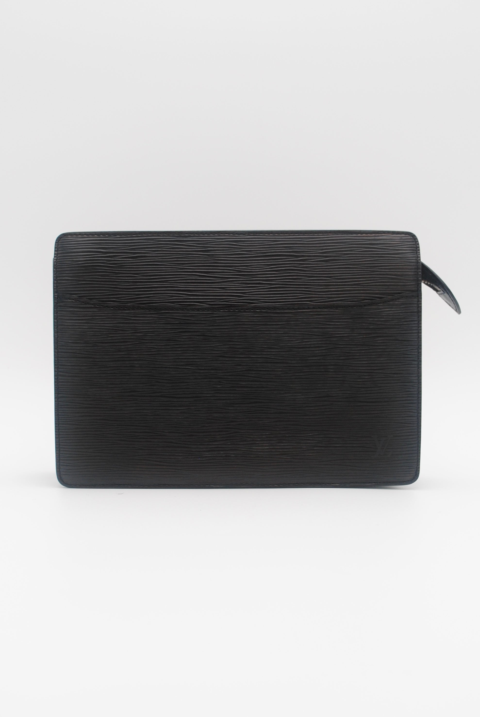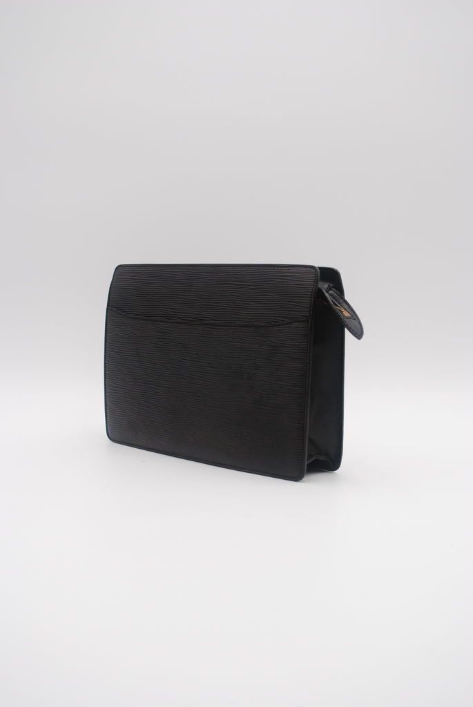 Tweedehands LOUIS VUITTON clutch in het zwart. De clutch sluit met een rits. Het item verkeert in een zeer goede vintage staat, met algemene gebruikssporen. De tas wordt geleverd in onze mooie Moon flower dustbag.