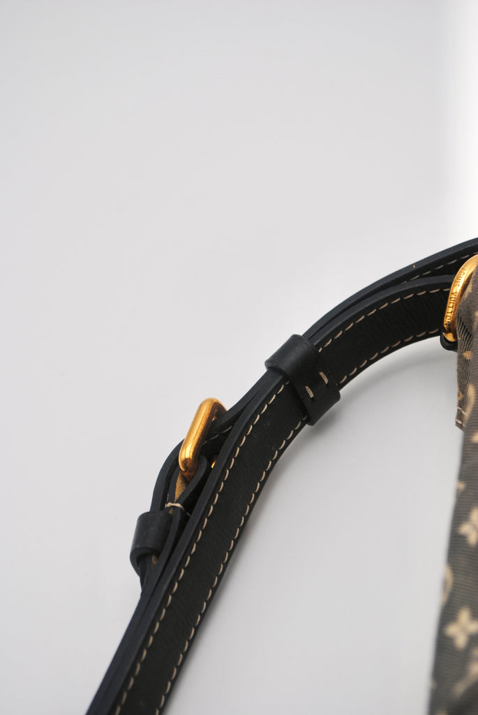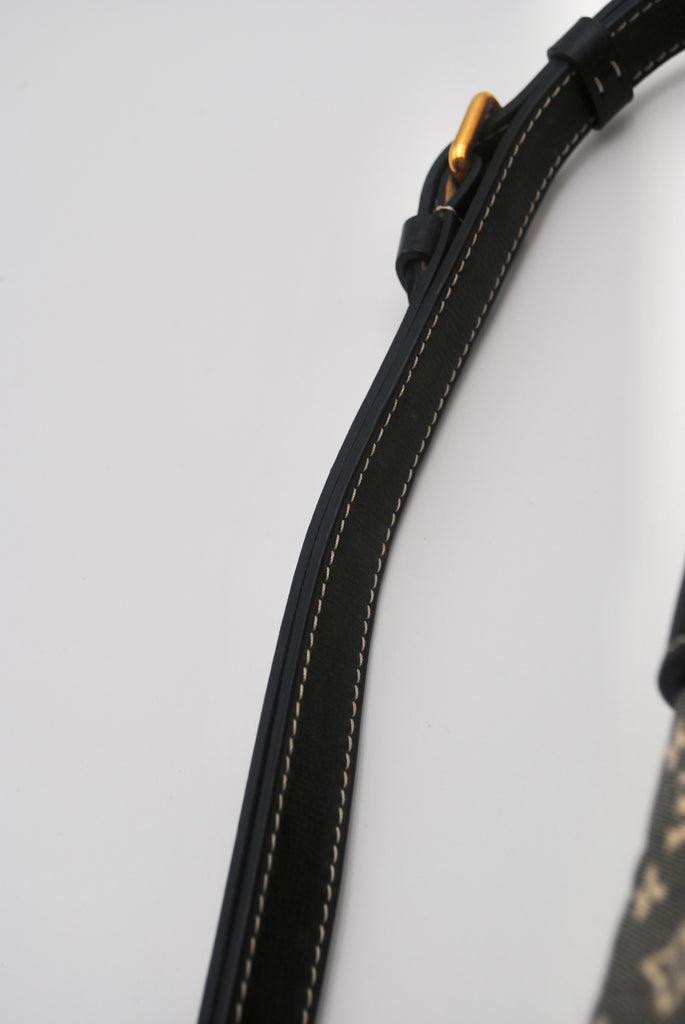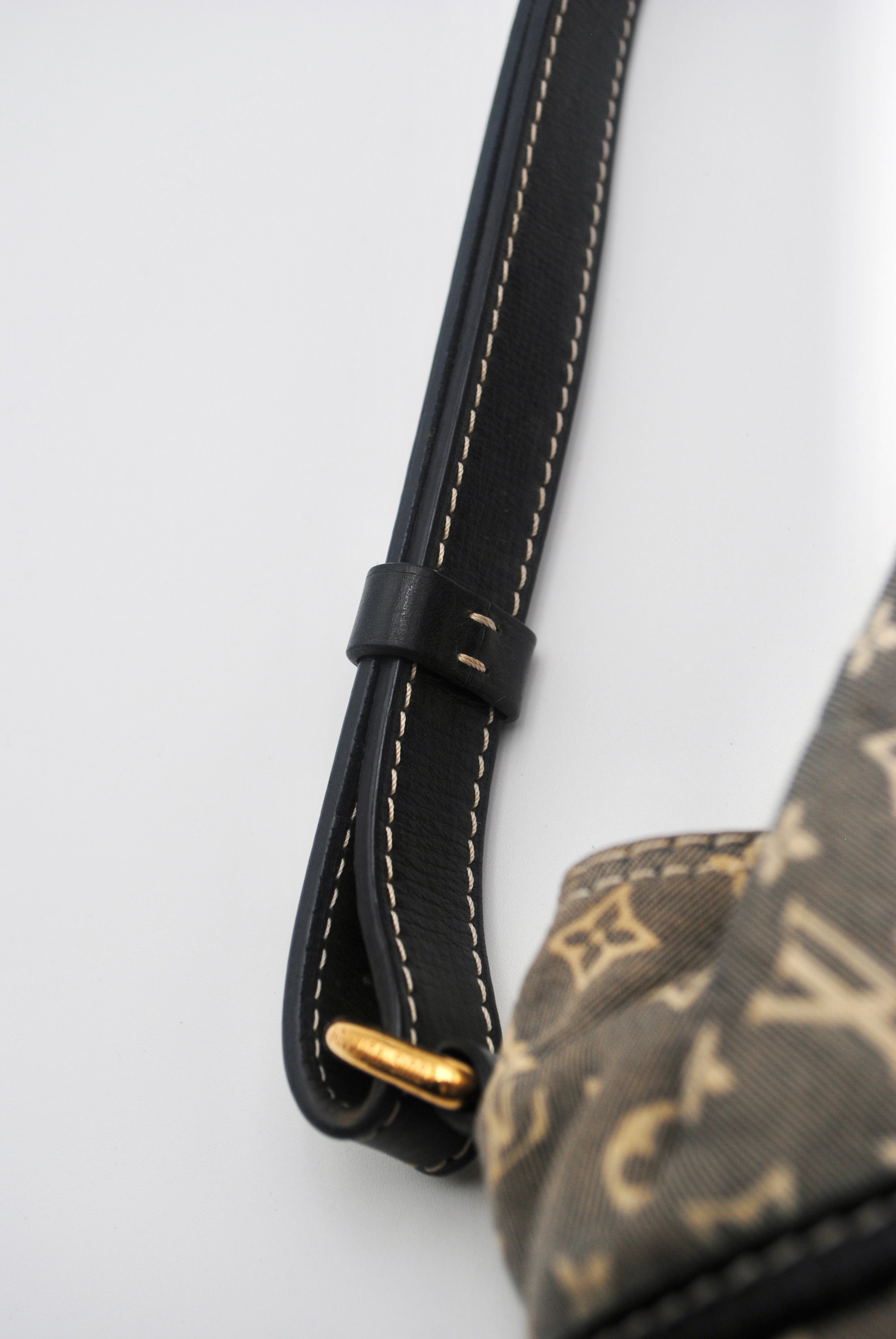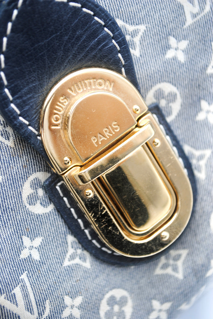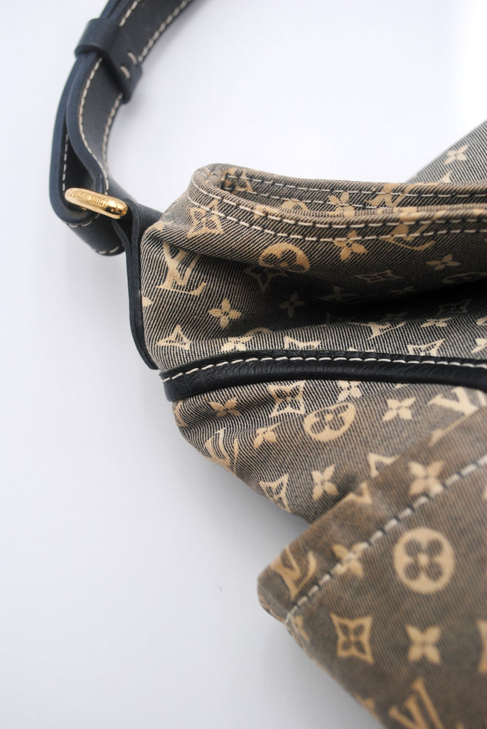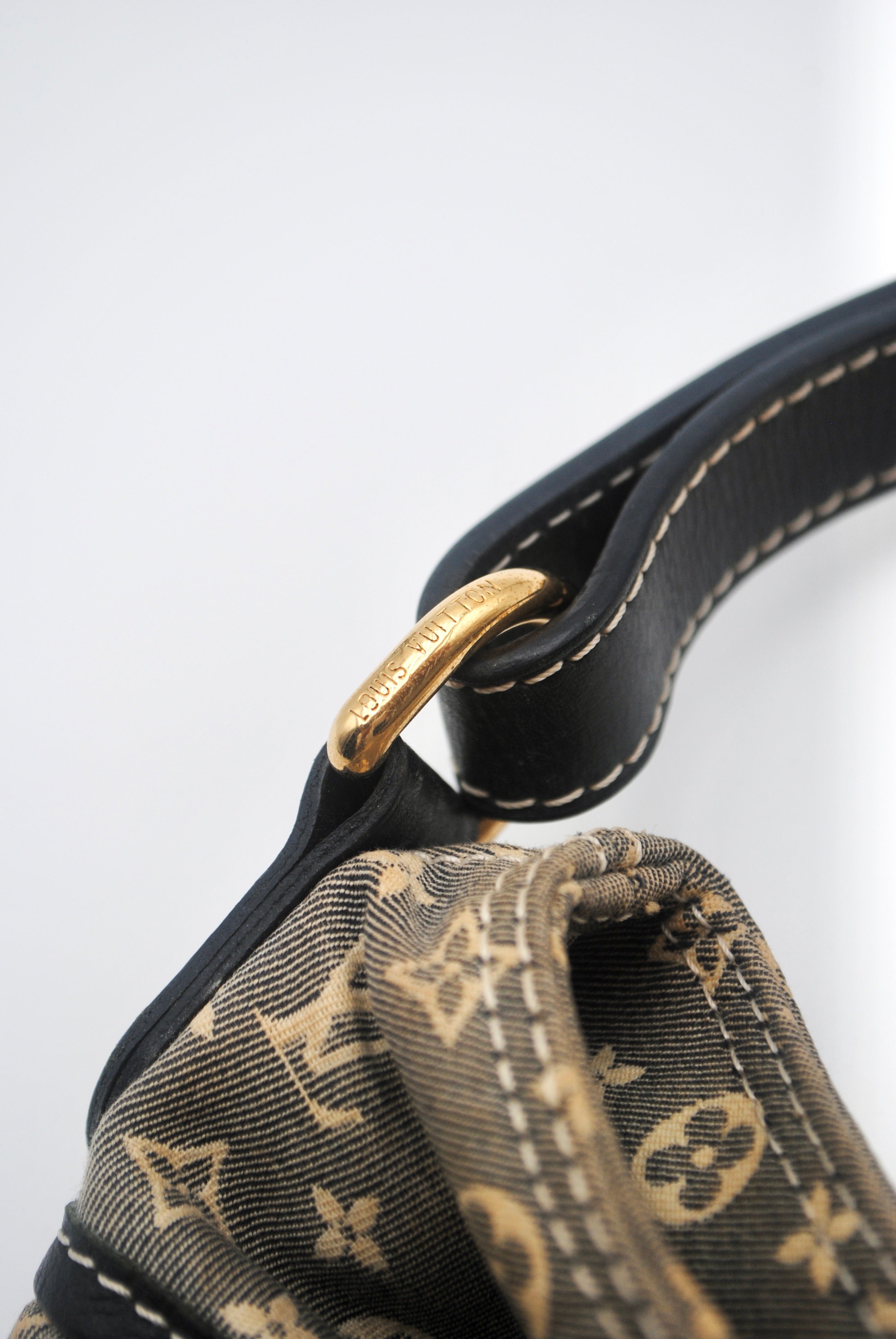 Tweedehands LOUIS VUITTON Idylle romance bag in een mooie denim grijze stof en blauw leren hengsels met gouden hardware. De tas sluit met een gesp en beschikt over twee zijvakjes aan de buitenkant en twee binnenvakjes. Het item verkeert in een zeer goede vintage staat, met algemene gebruikssporen. De tas wordt geleverd in onze mooie Moon flower dustbag.