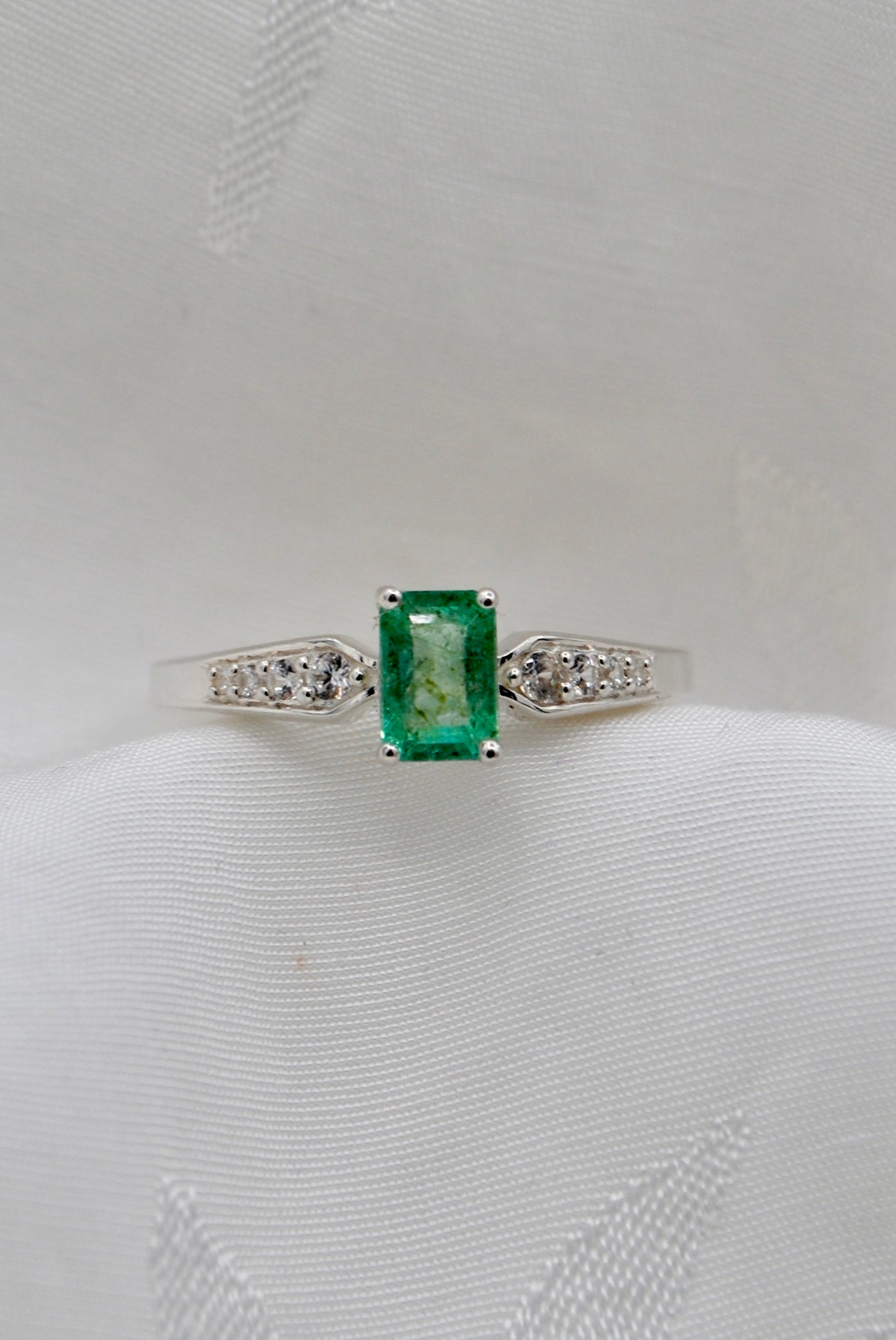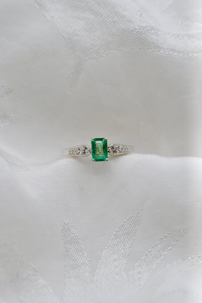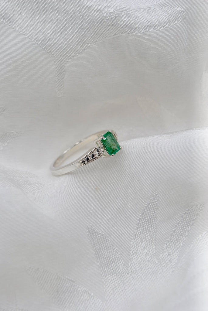 Vintage zilveren ring met smaragd