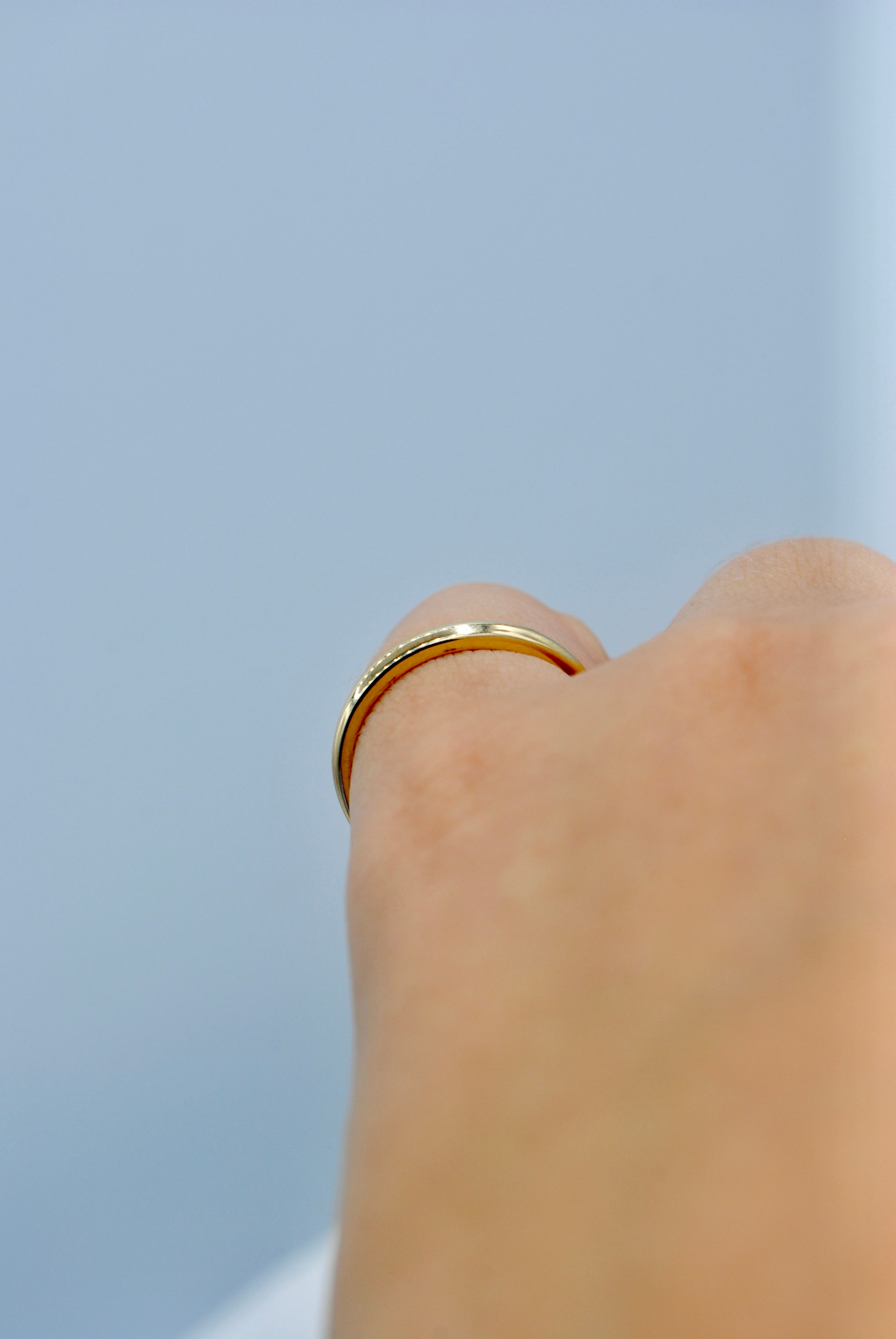 Het is mogelijk om deze ring tot drie maten kleiner of tot drie maten groter te laten vermaken via onze goudsmid.
