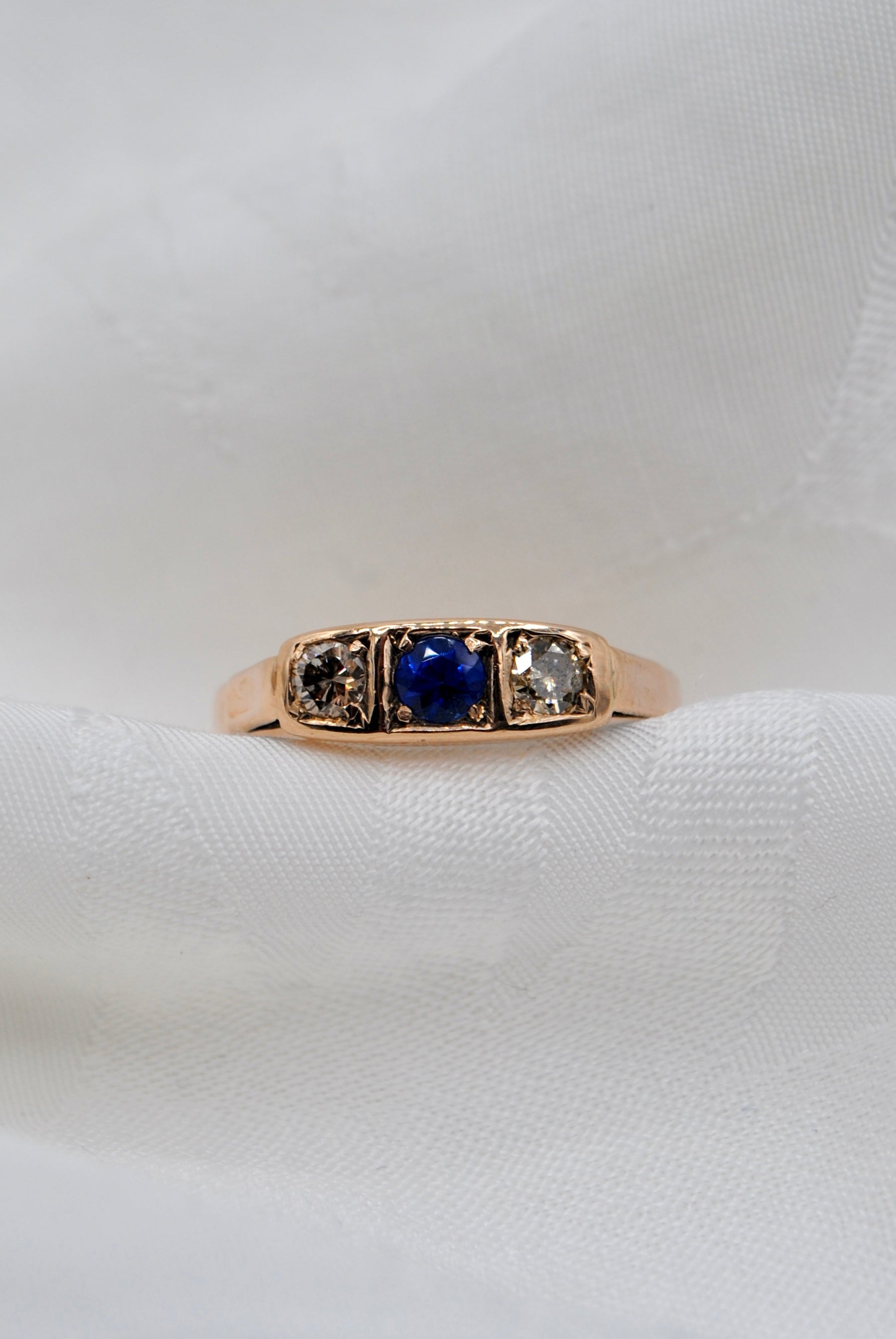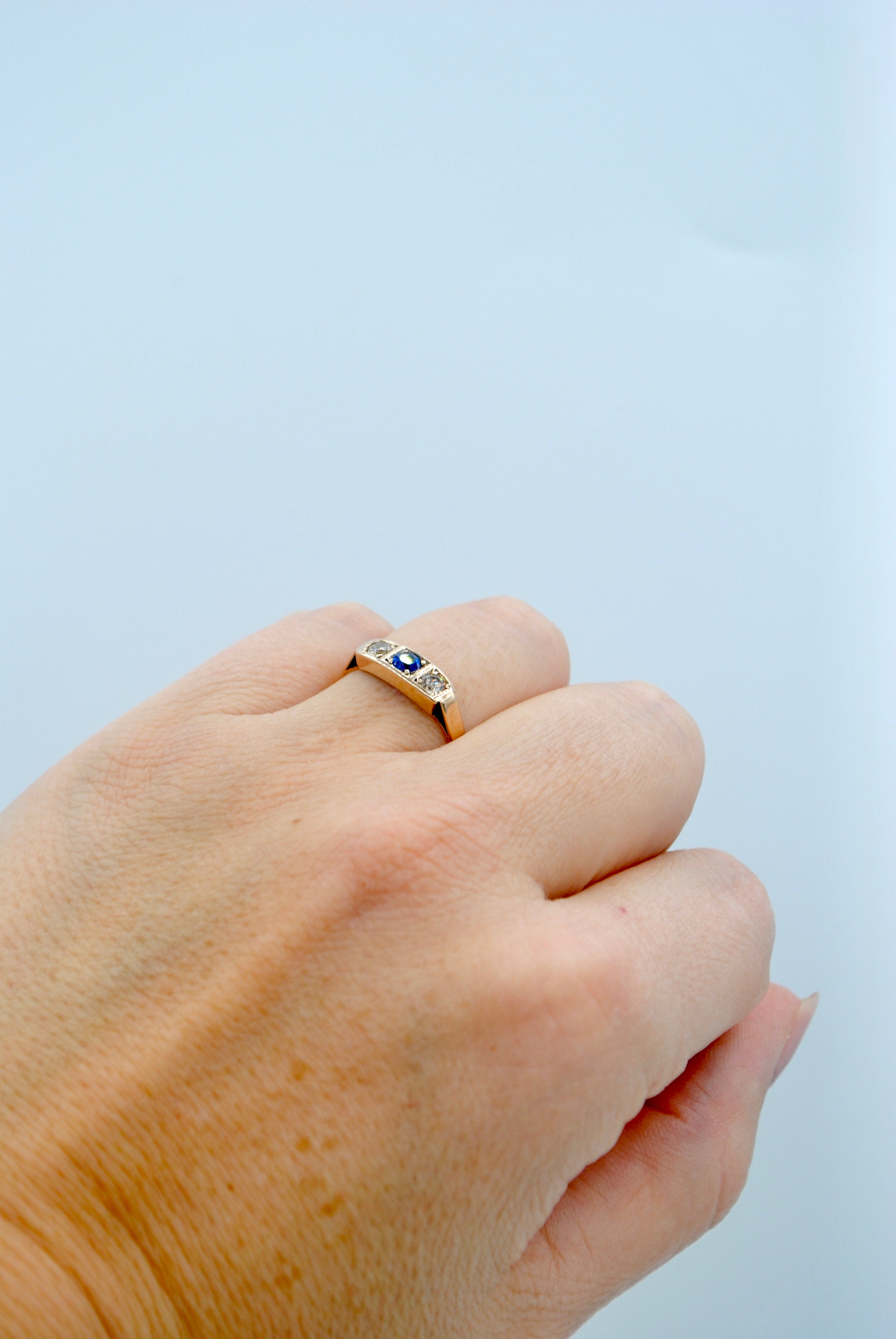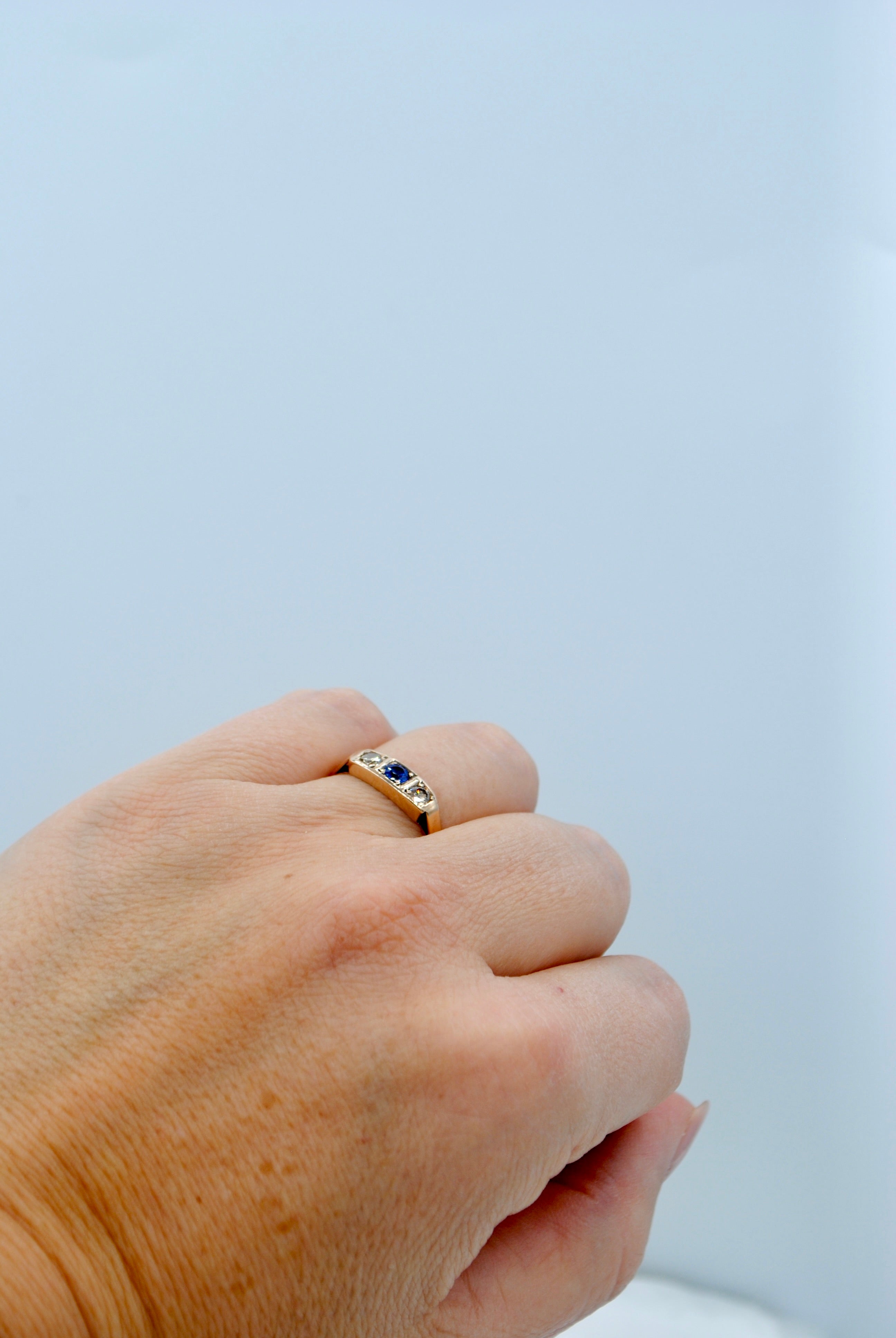 Vintage 8k ring met saffier & topaas