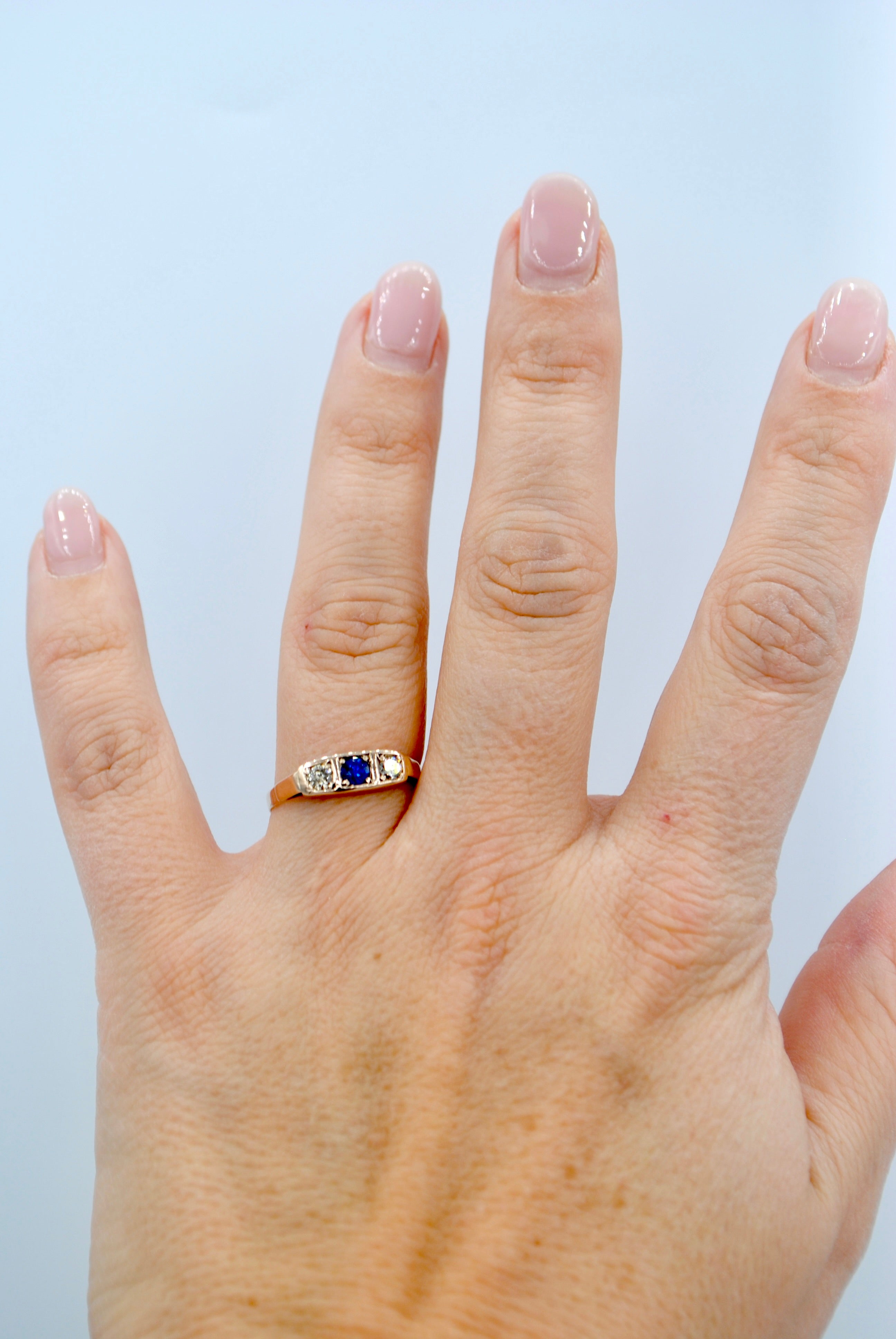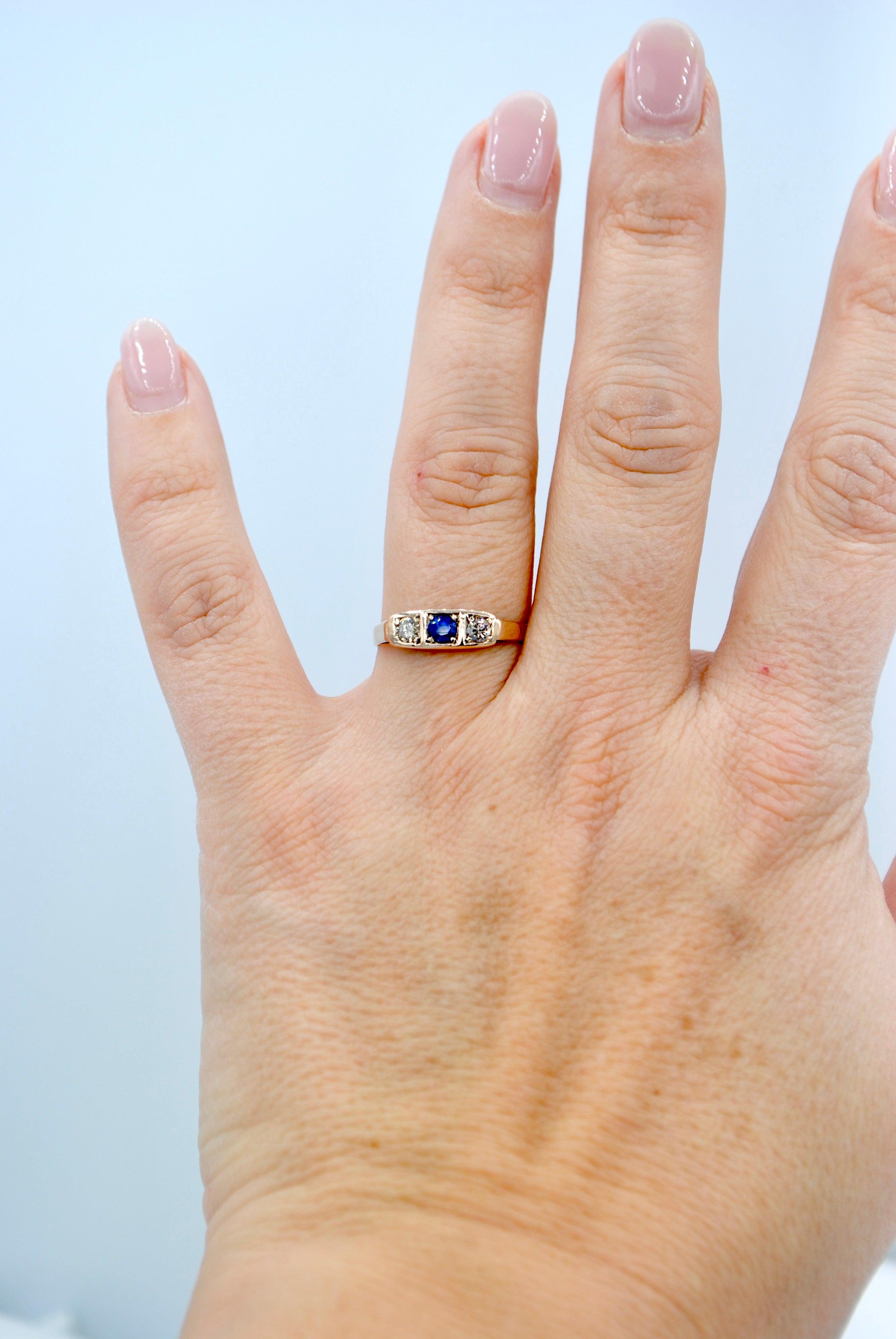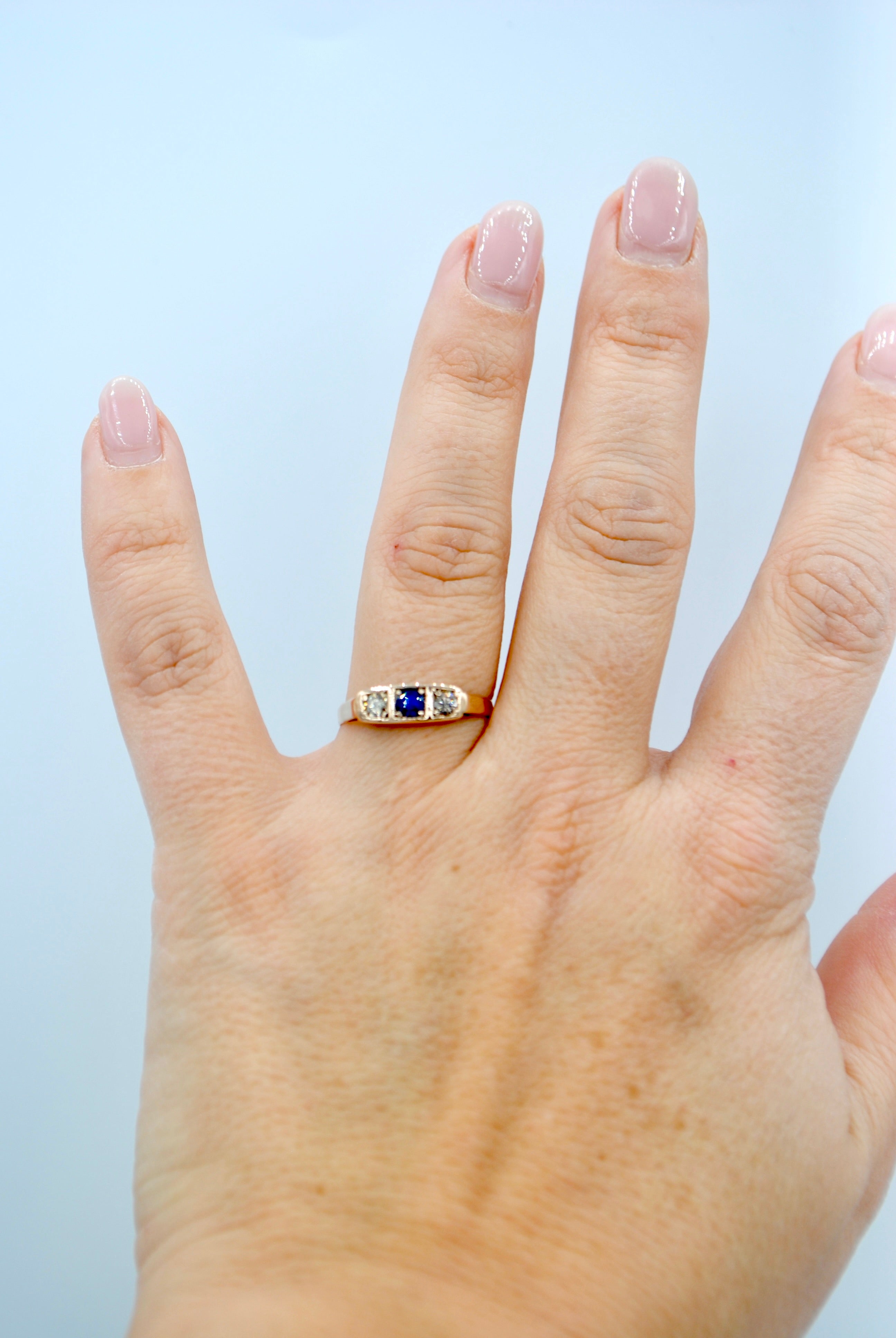 Vintage 8k ring met saffier & topaas