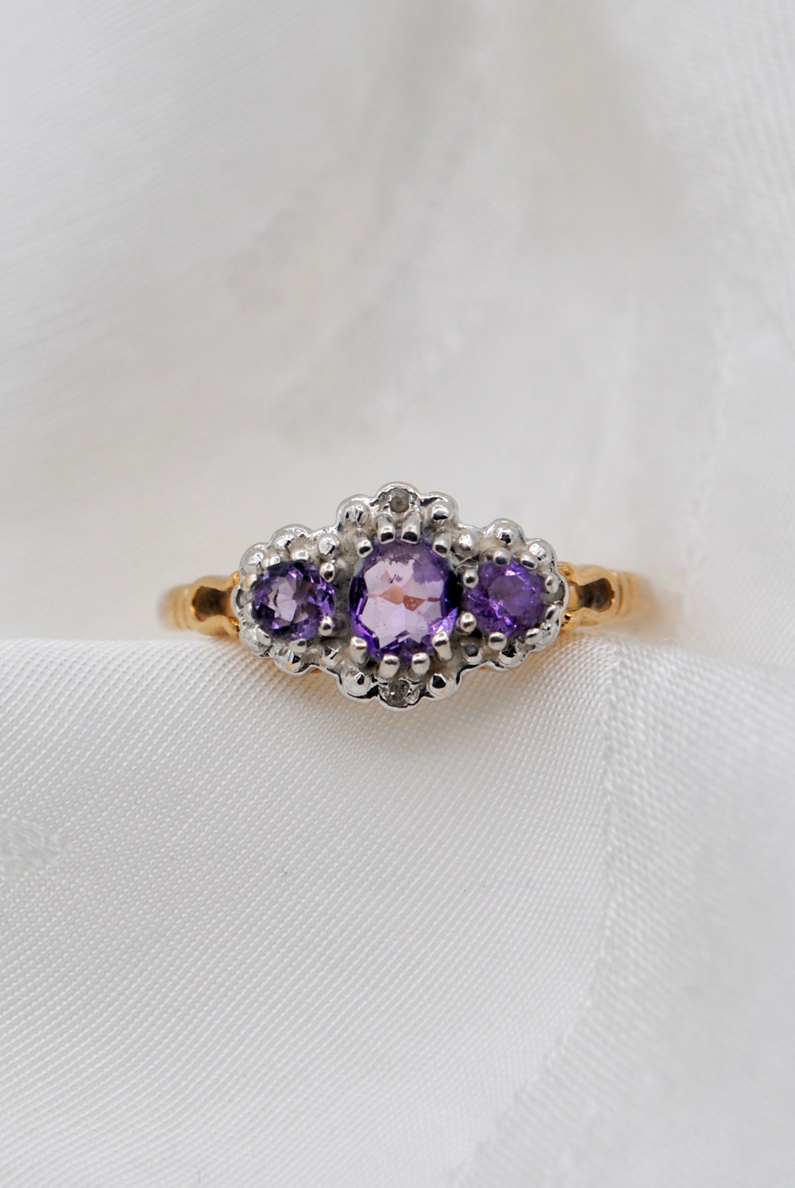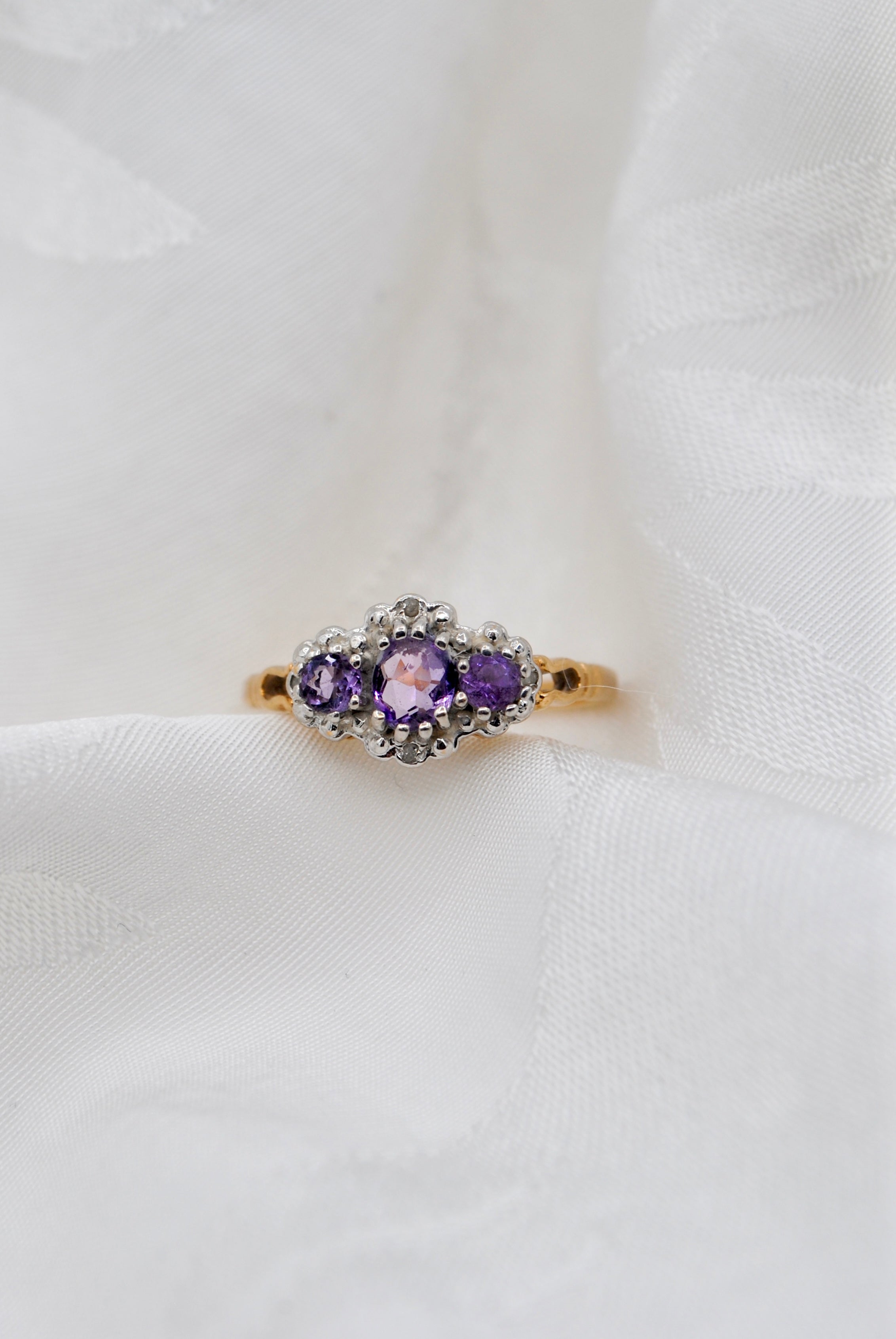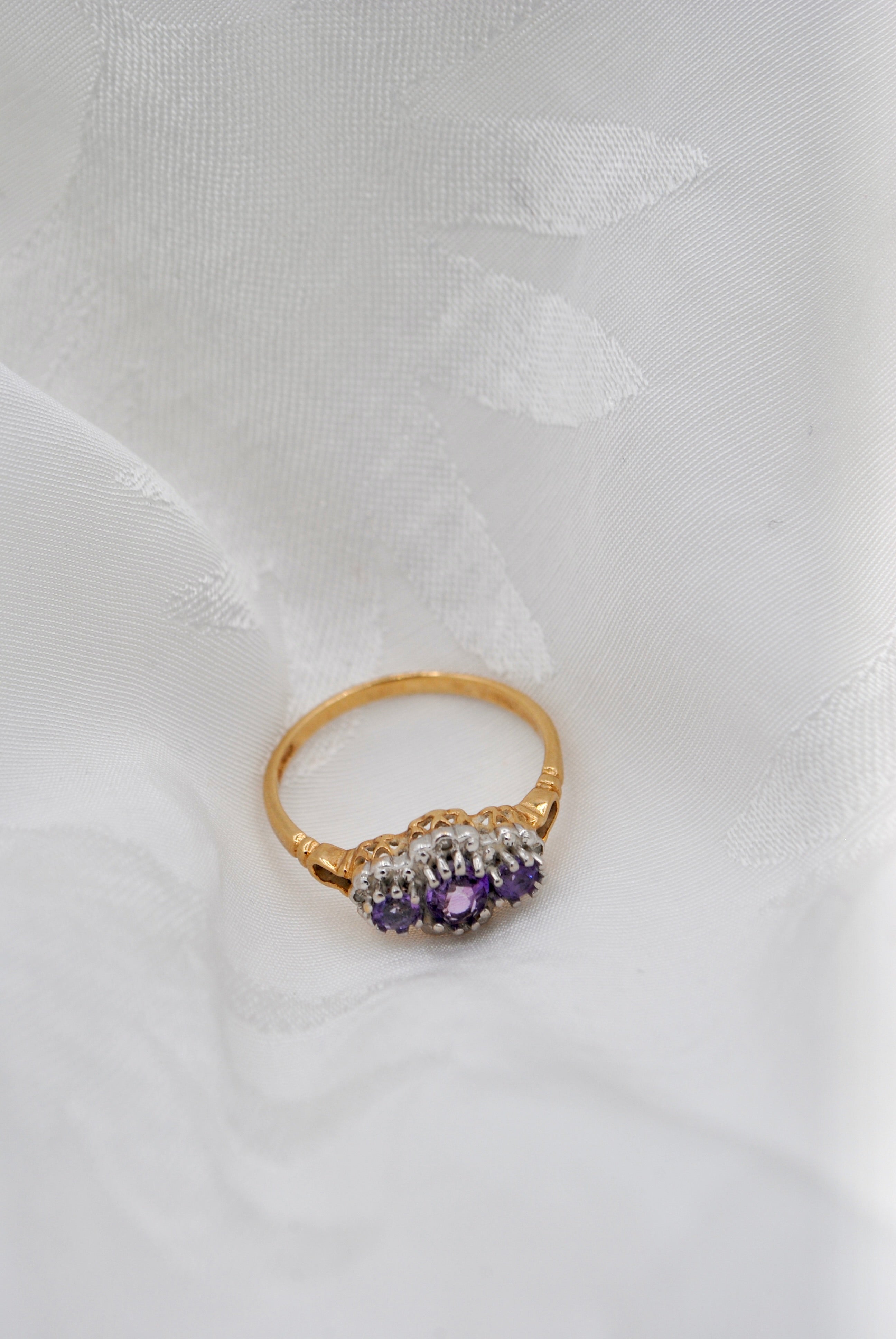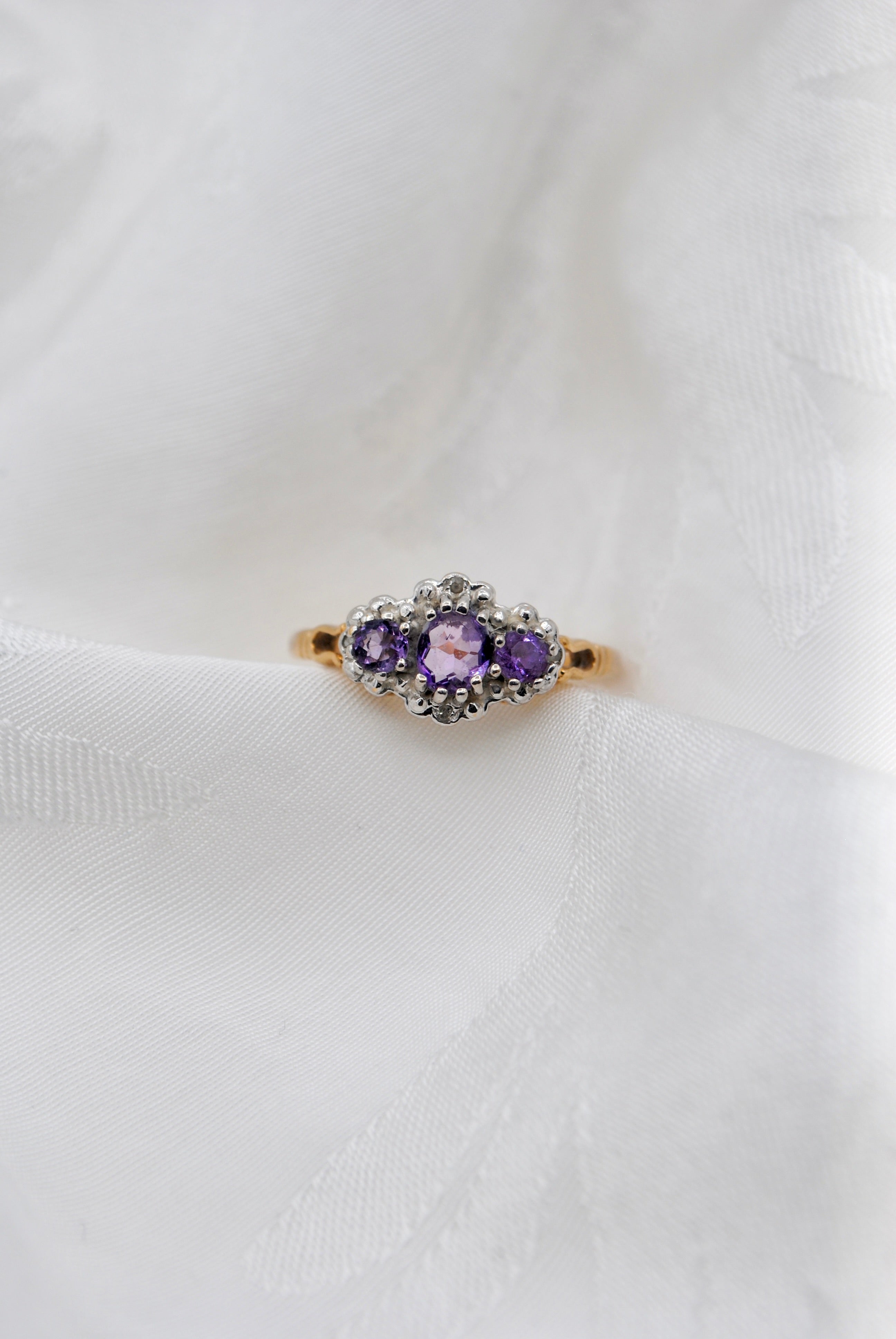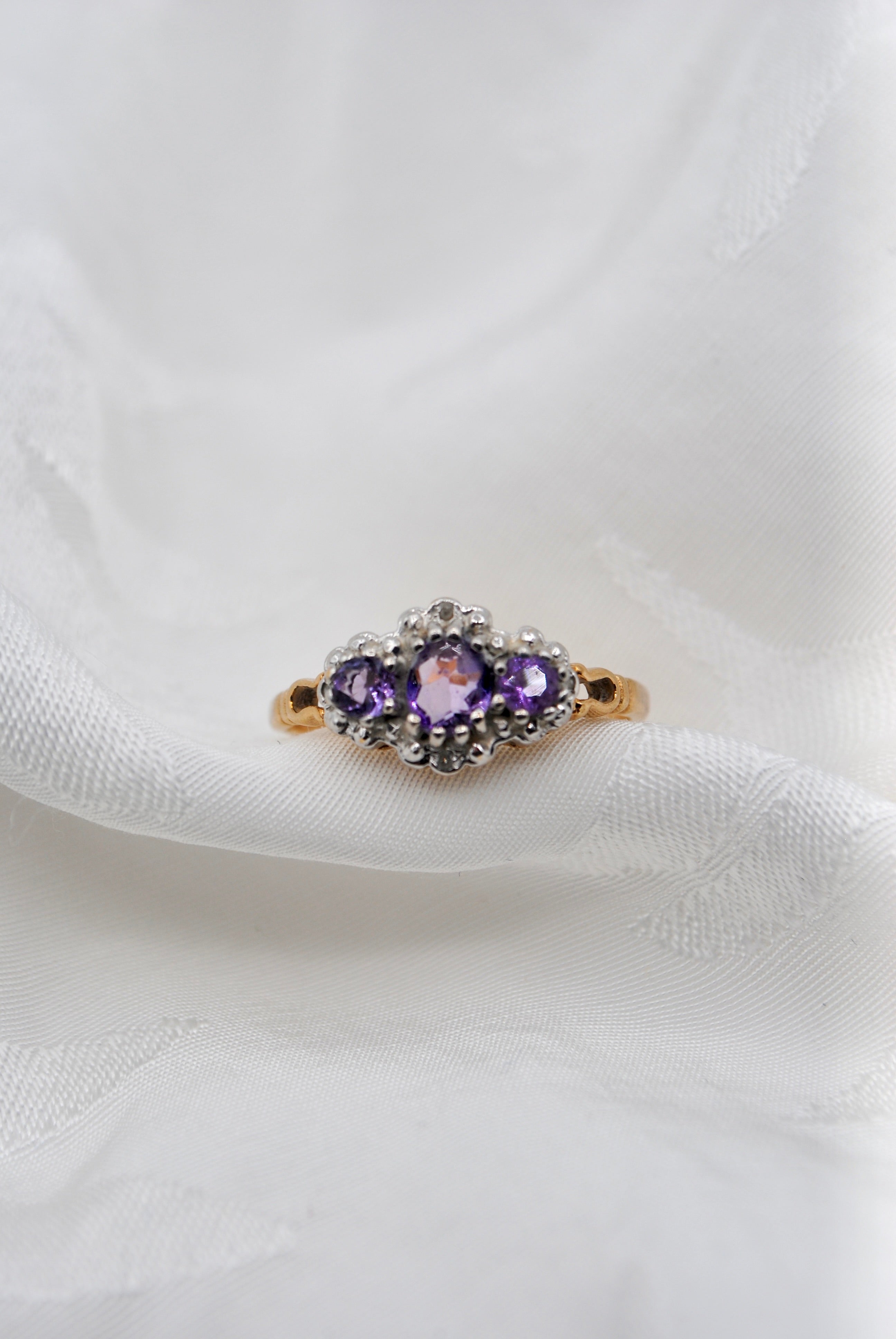 Vintage 9k ring met amethist & diamant