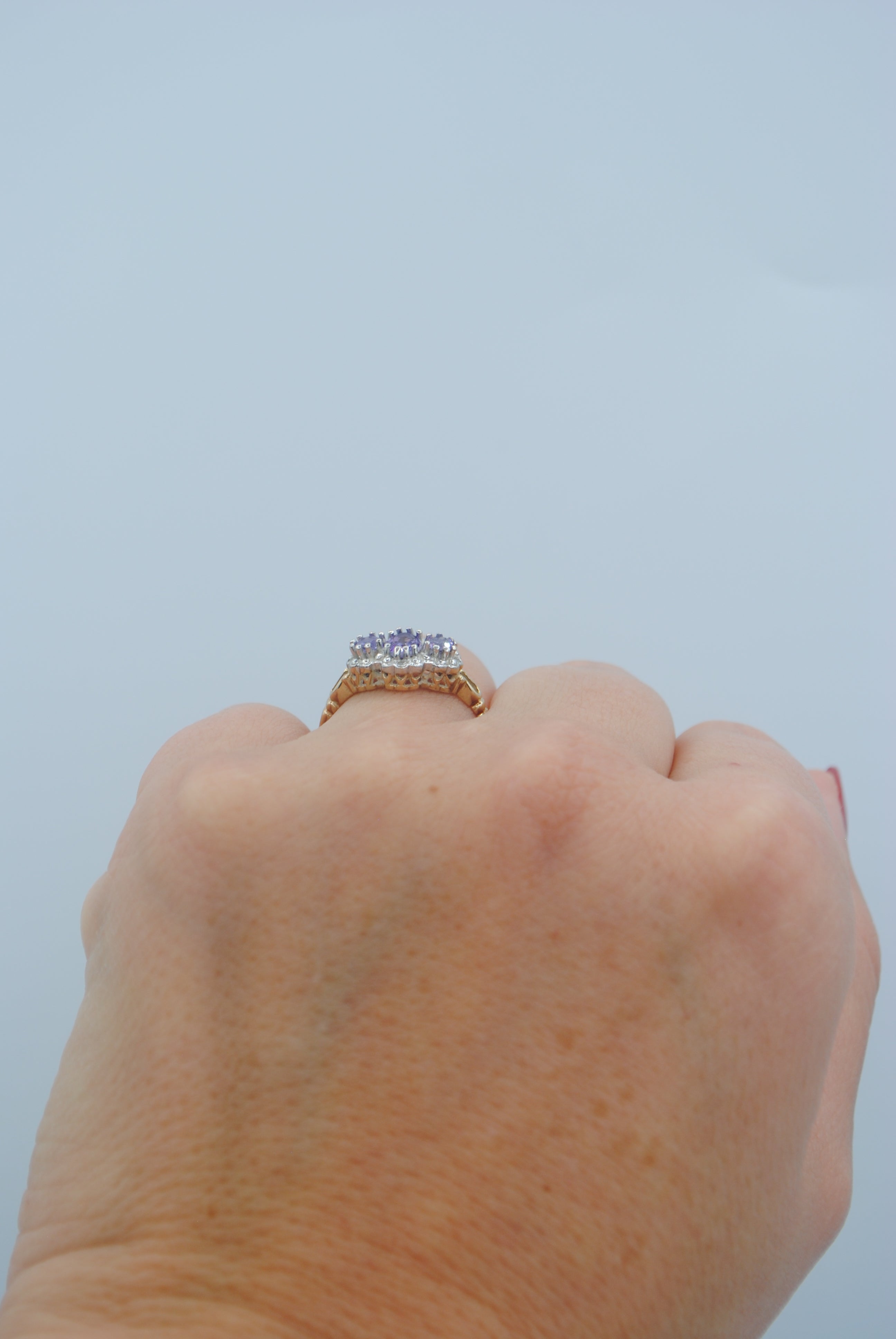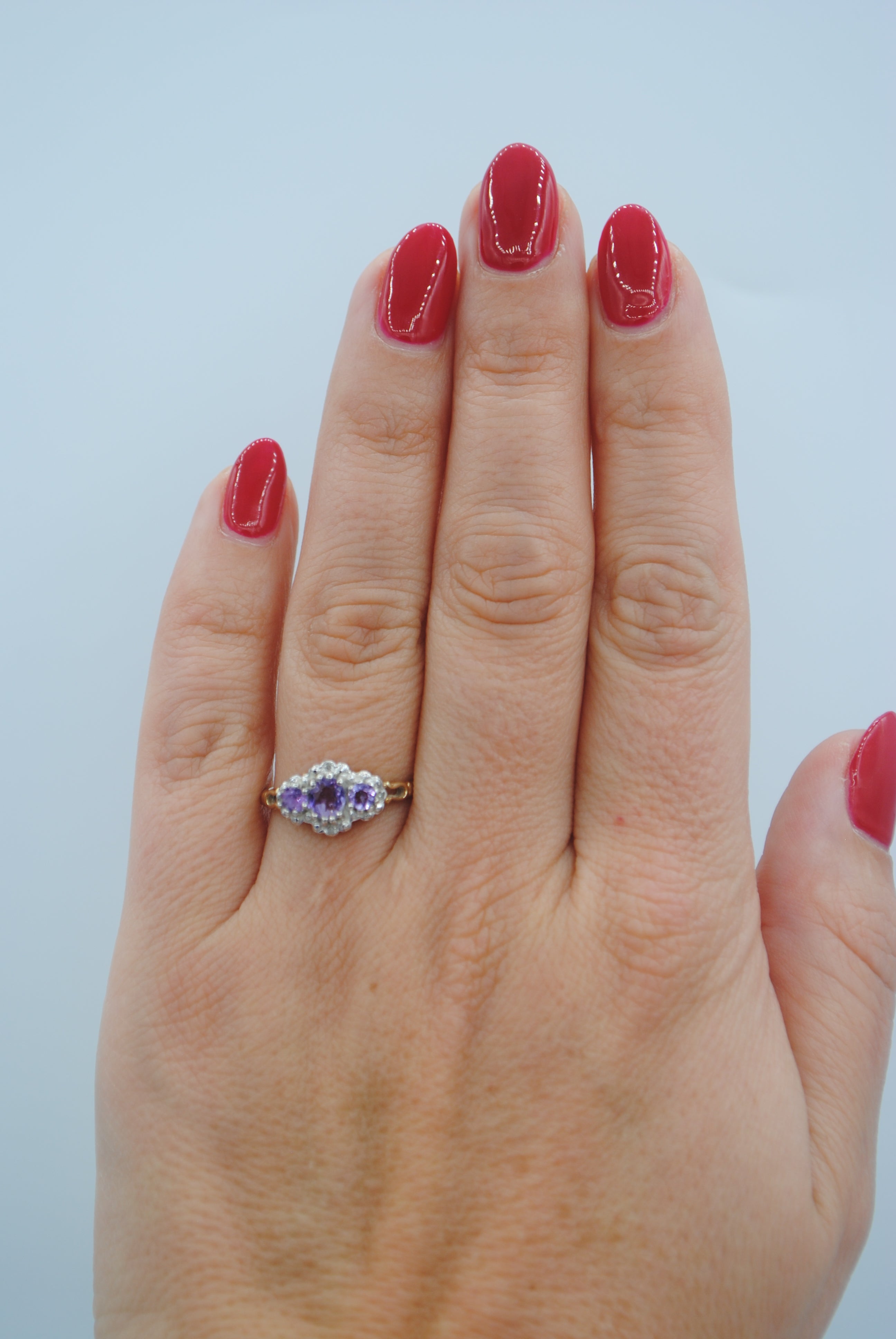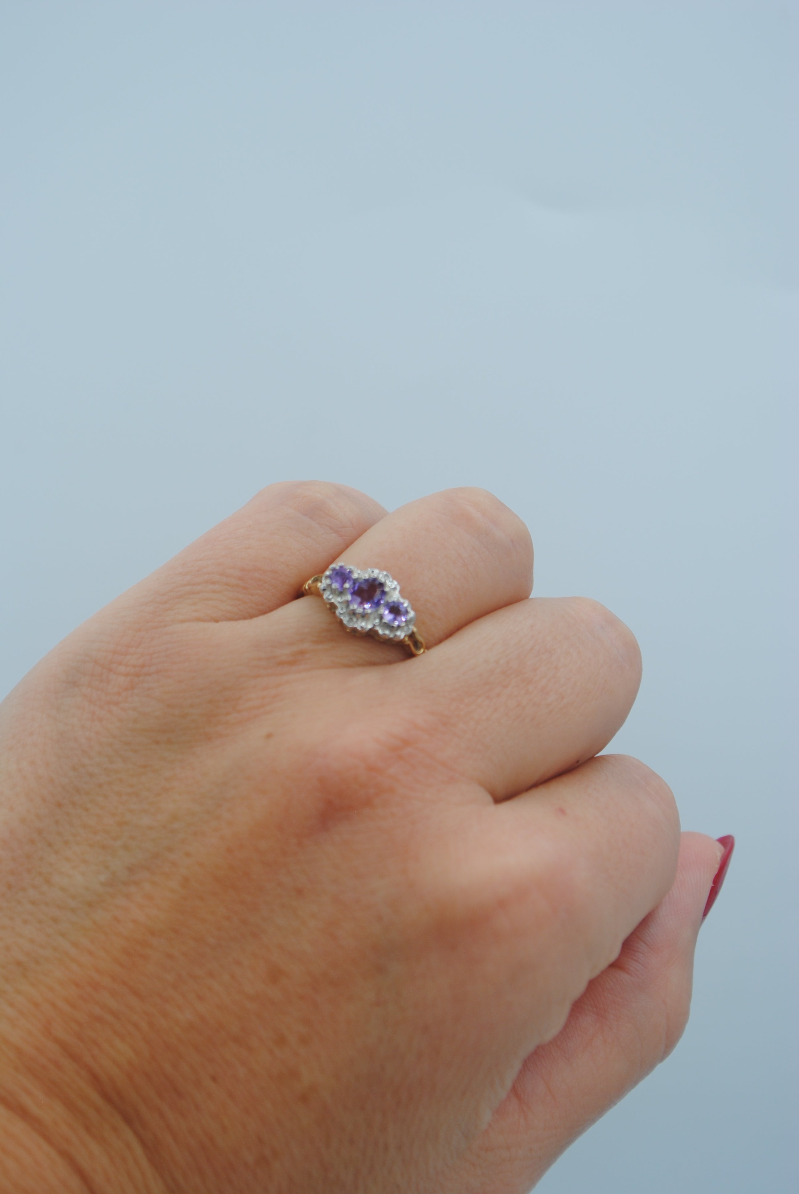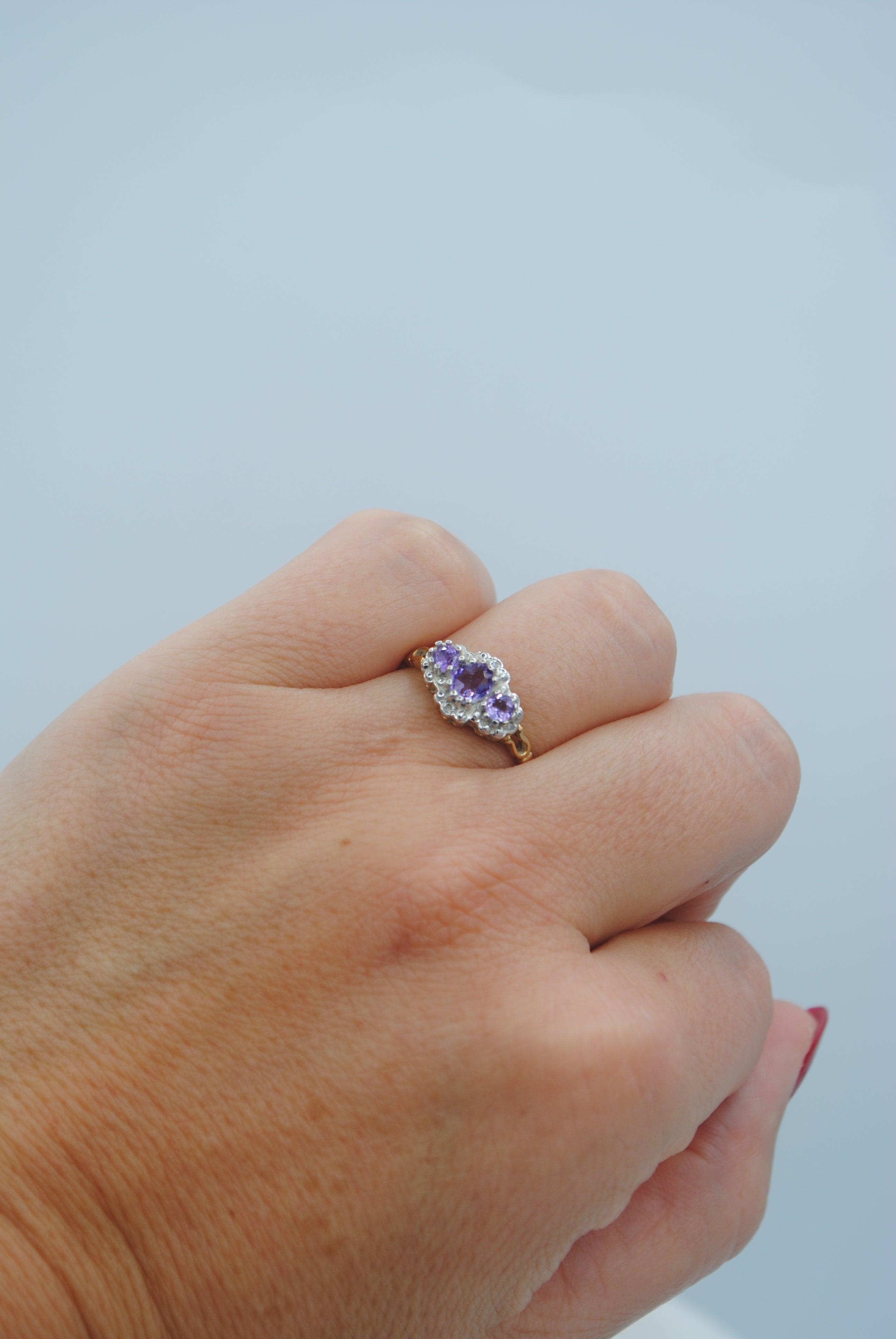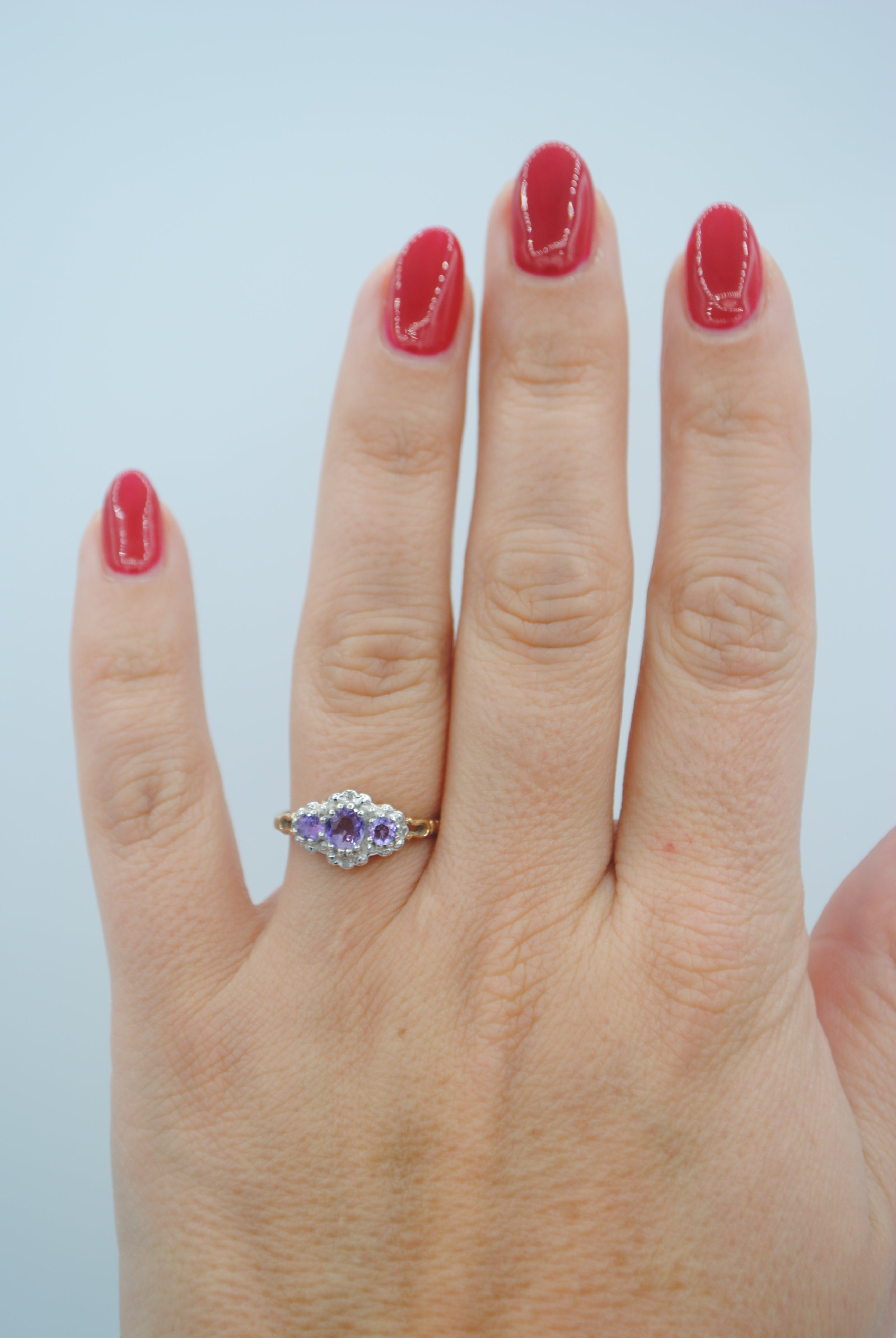 Vintage 9k ring met amethist & diamant