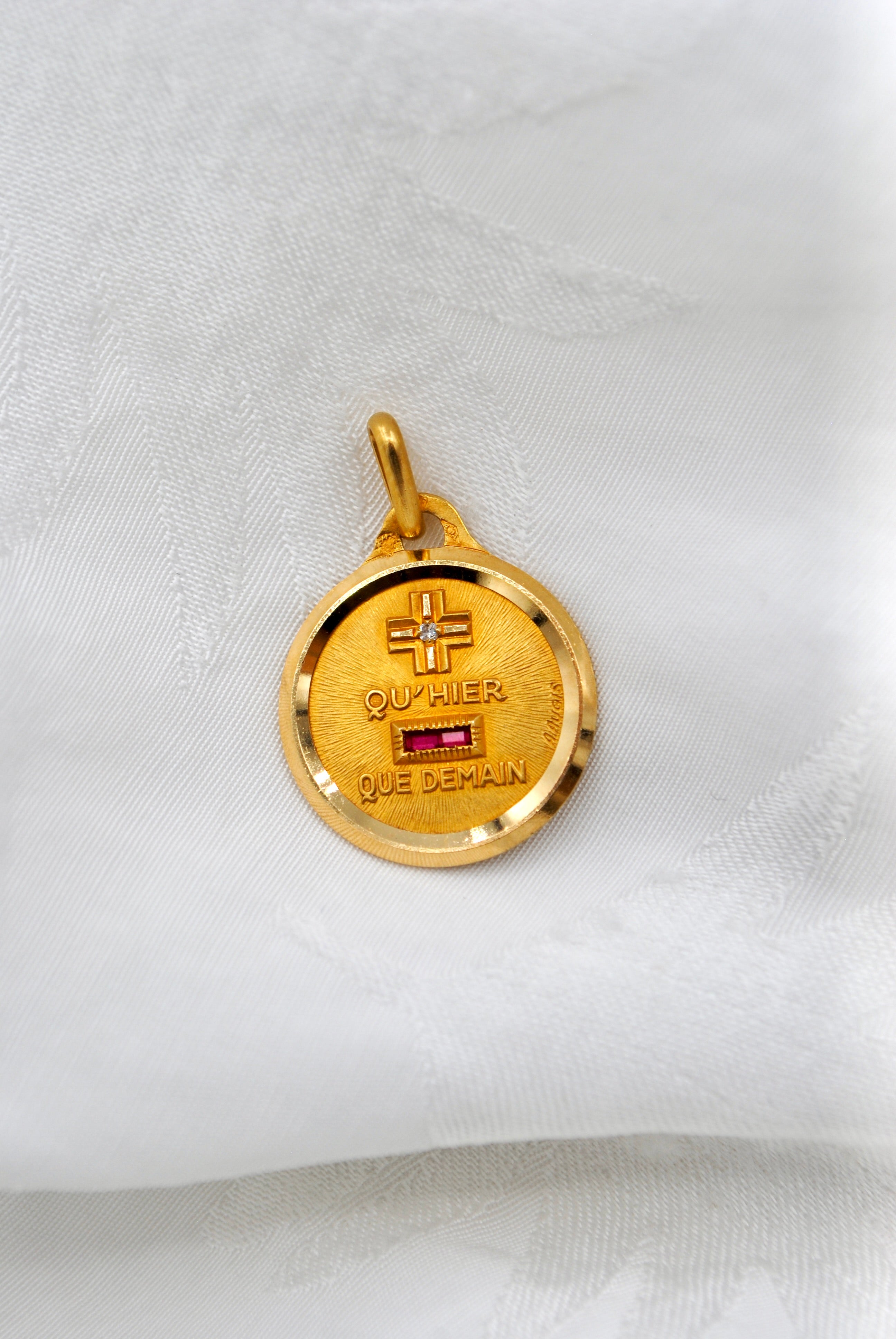 Vintage 18k gouden Augis hanger met robijn & diamant