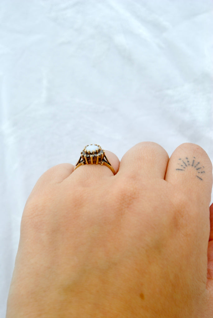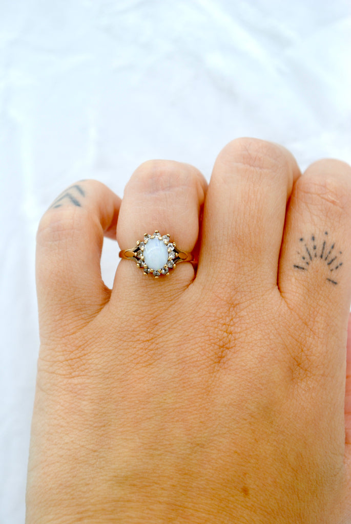 Vintage 9k ring met opaal & tanzaniet