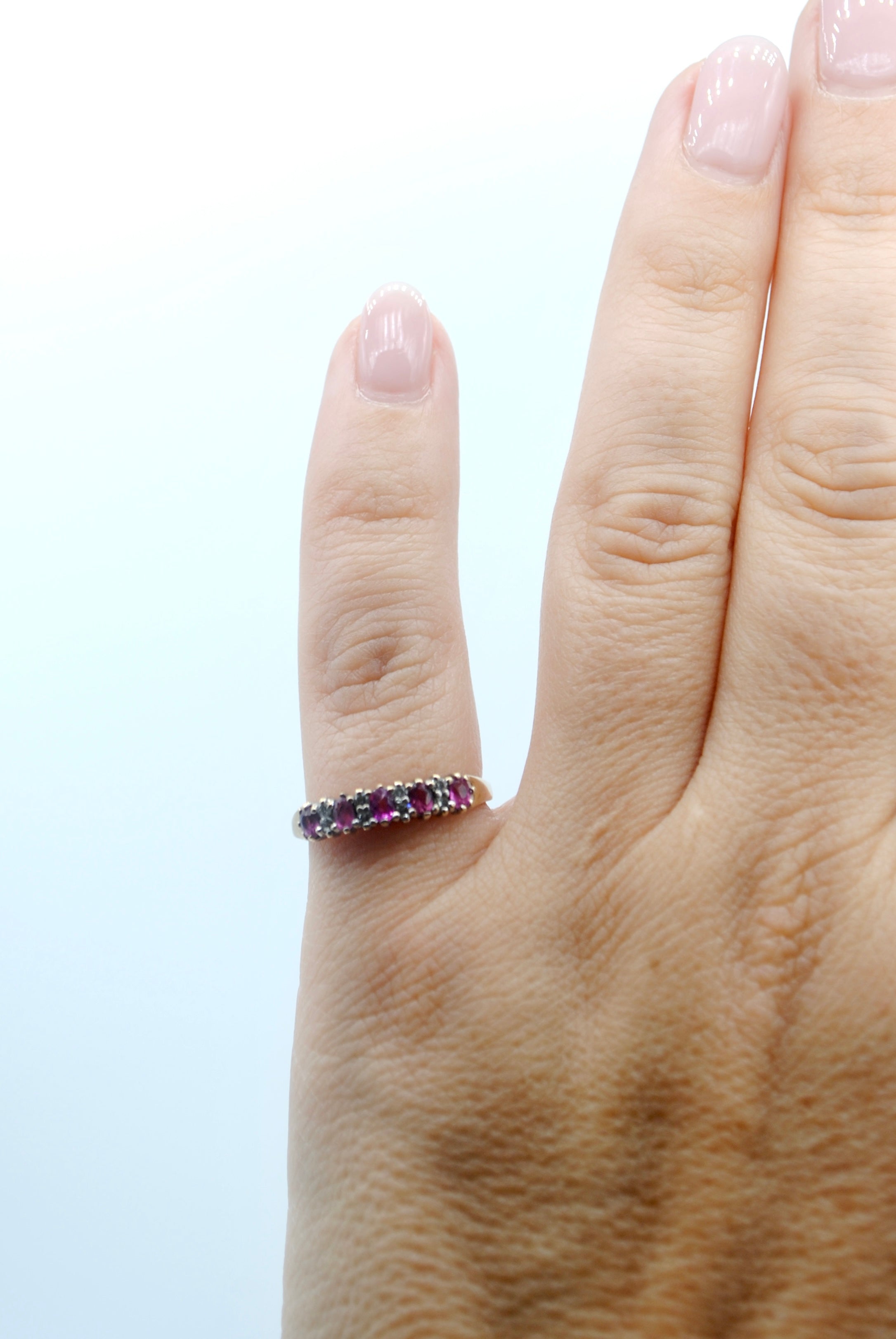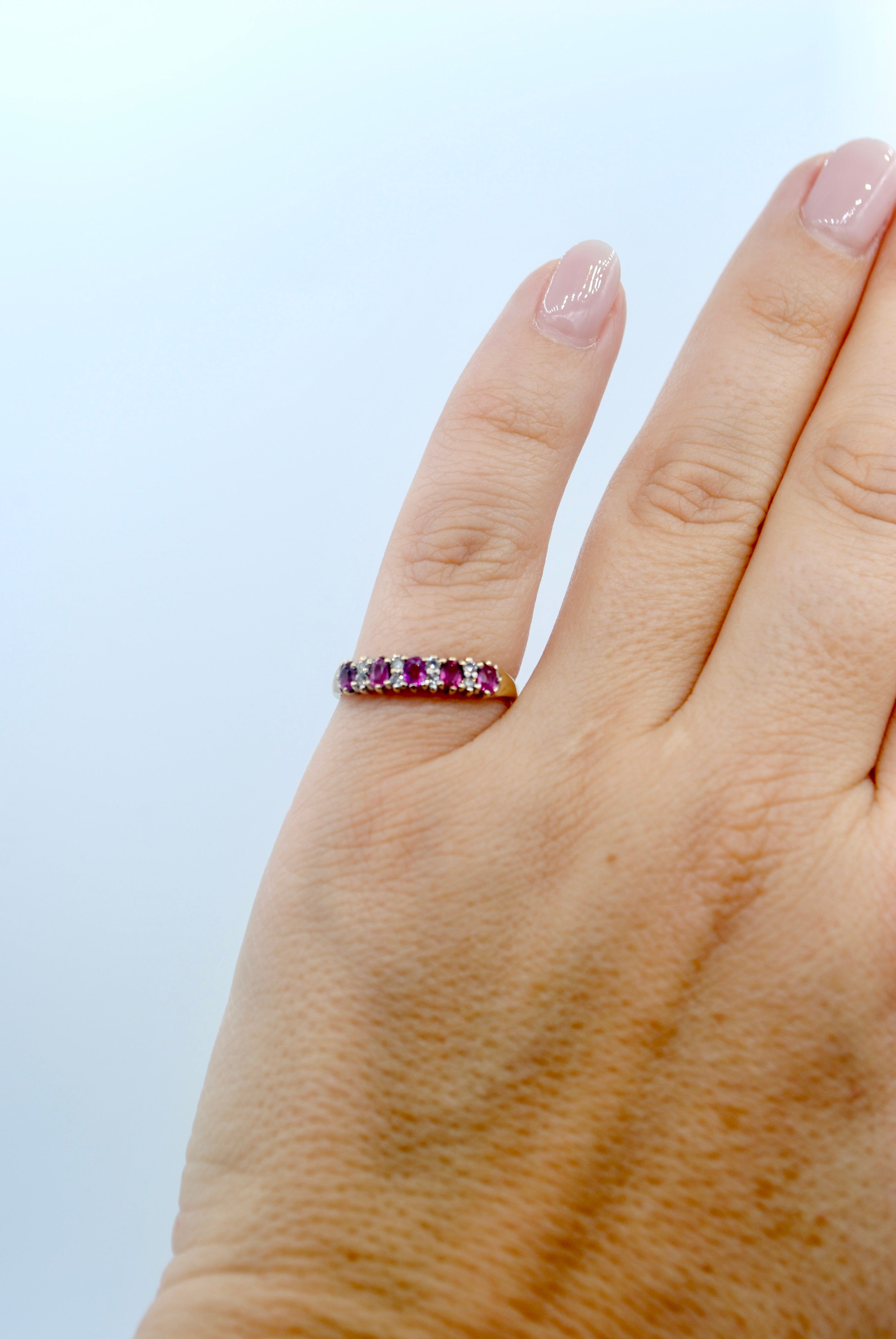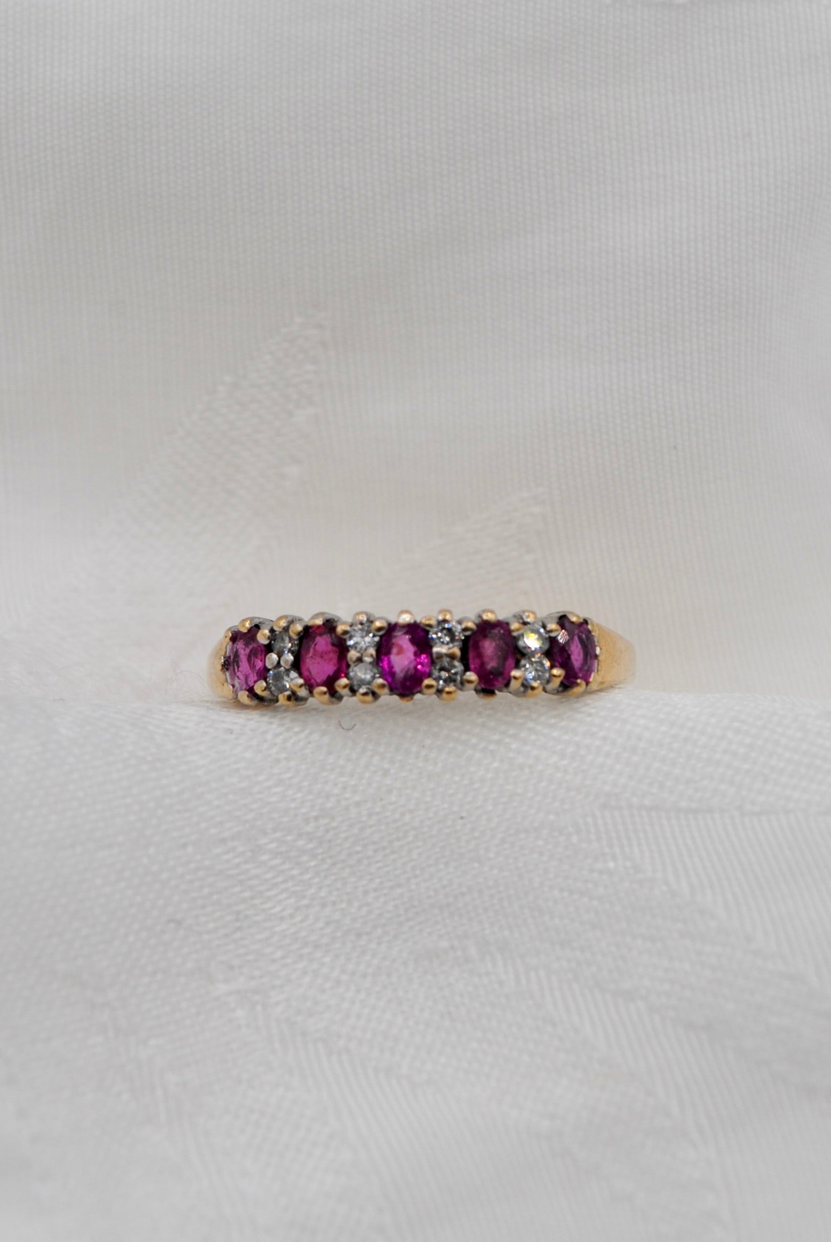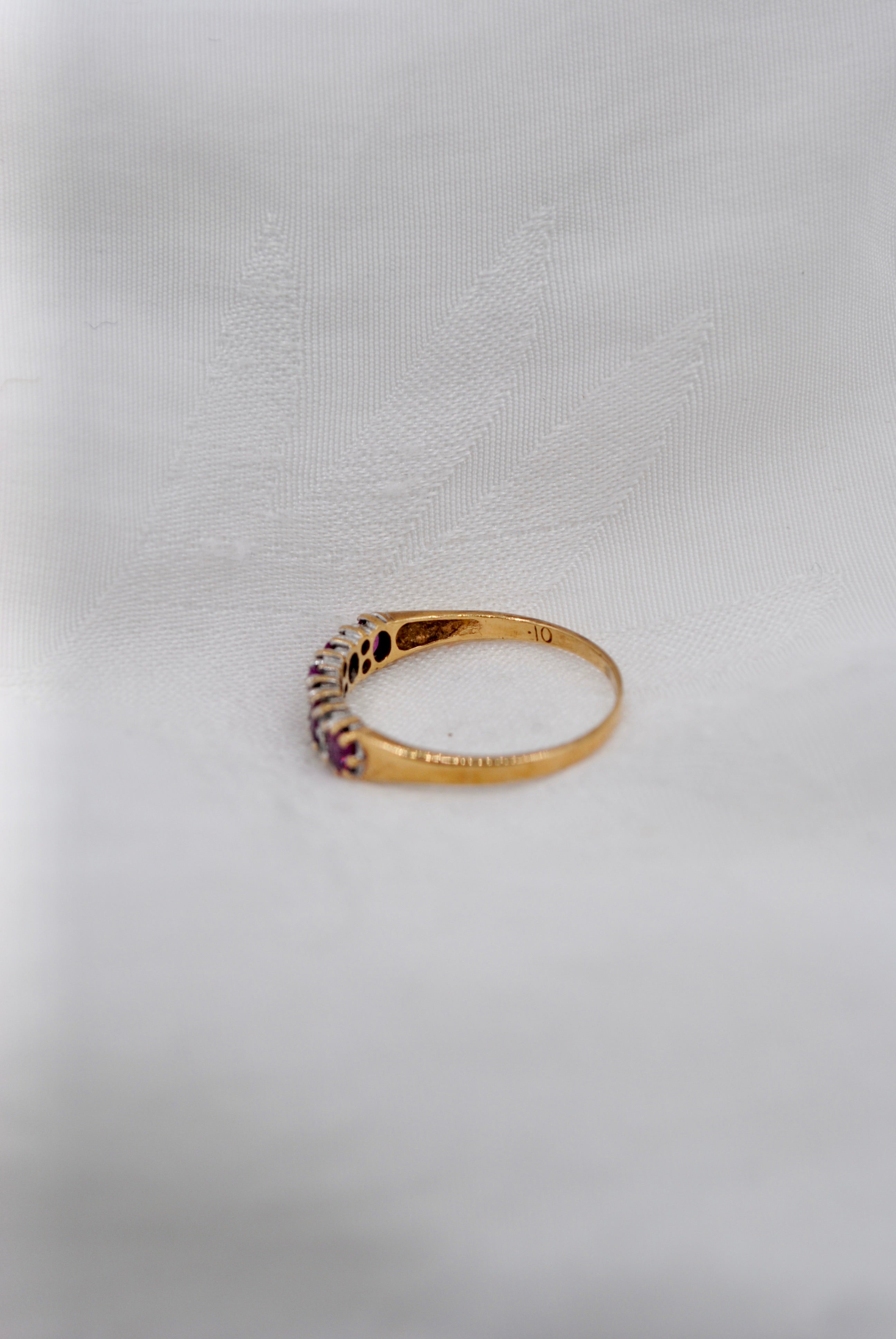 Vintage 9k ring met robijn & diamant