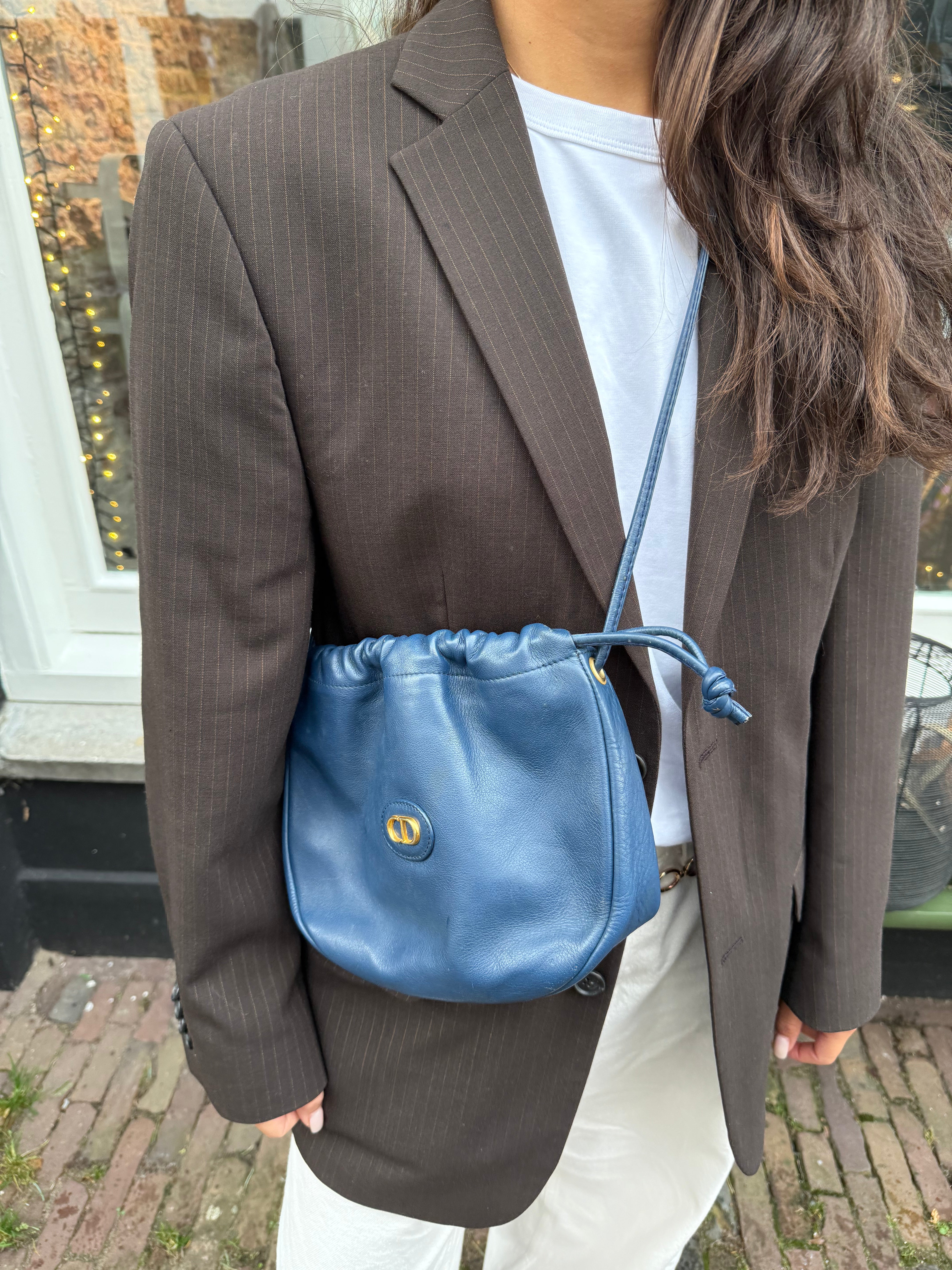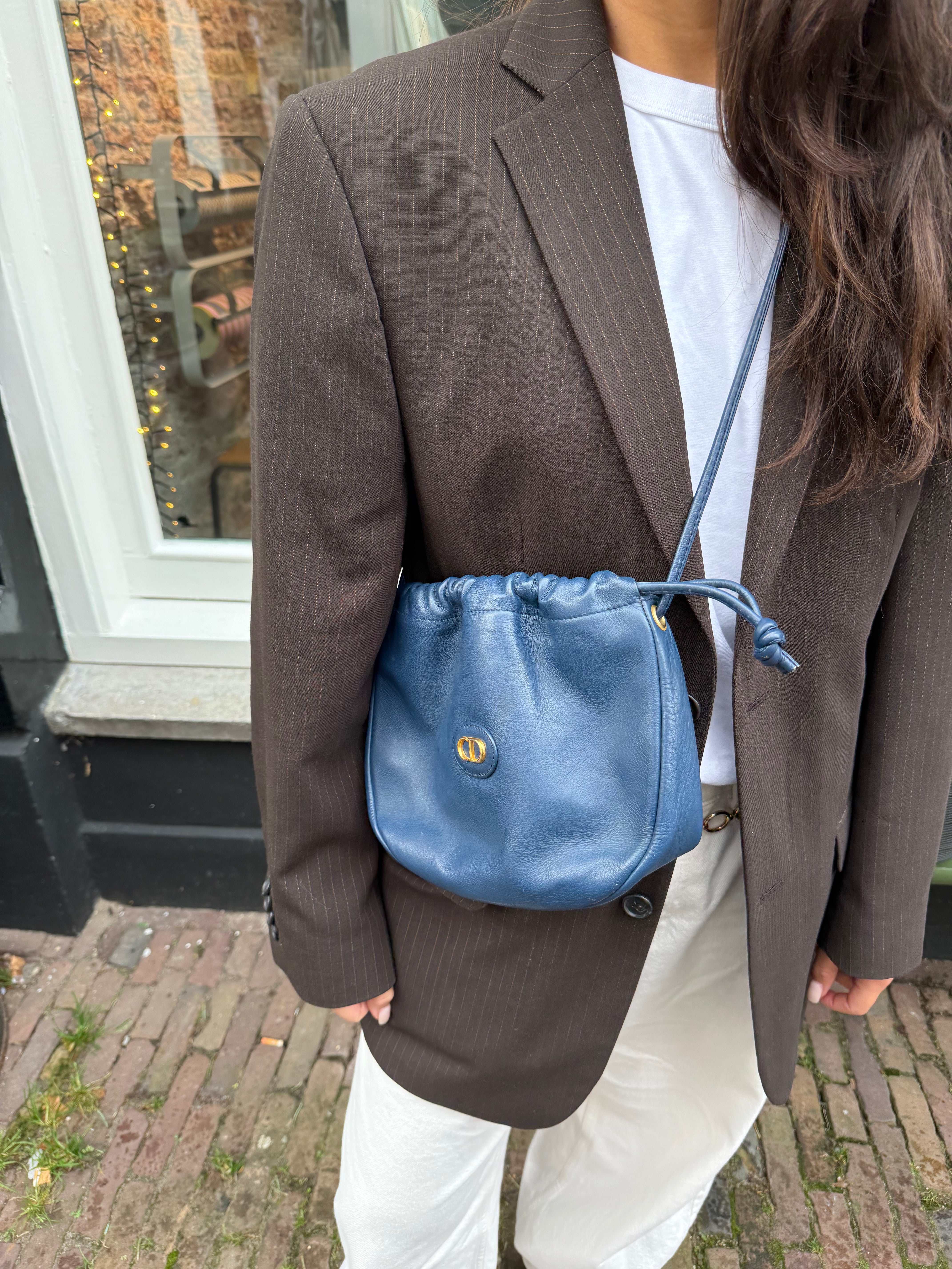 Tweedehands Christian Dior Trotter leather bag in een mooie blauwe kleur met gouden hardware. De tas beschikt over één groot vak en een binnenvakje met rits. De tas is een crossbody tas. Het item verkeert in een zeer goede vintage staat, met algemene gebruikssporen. De tas wordt geleverd in onze mooie Moon flower dustbag.