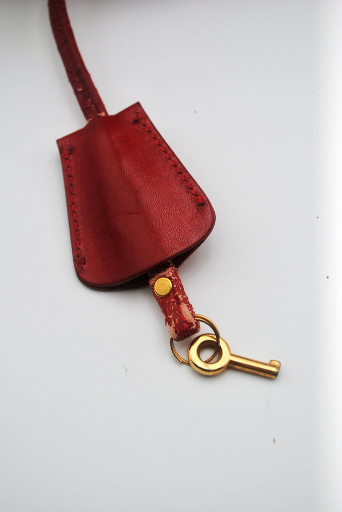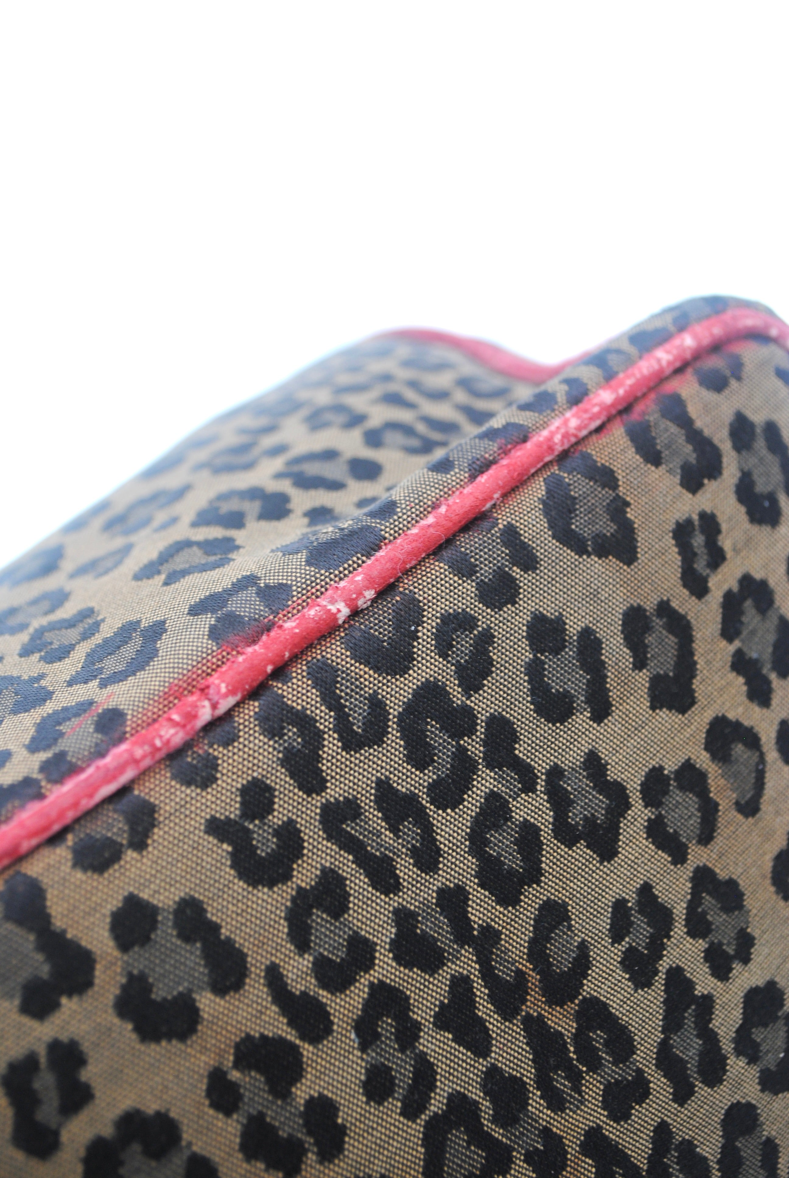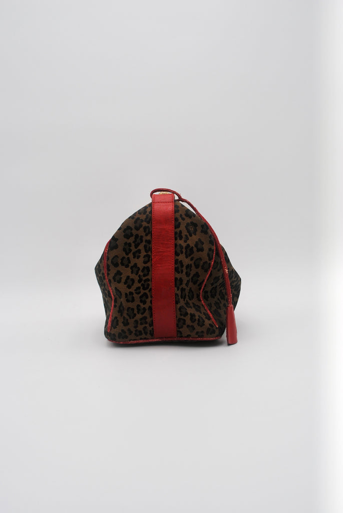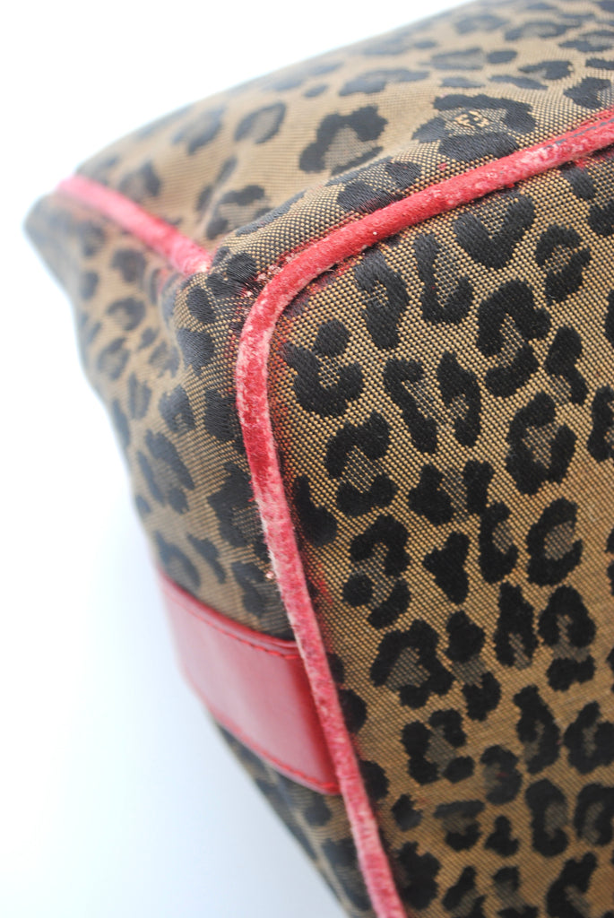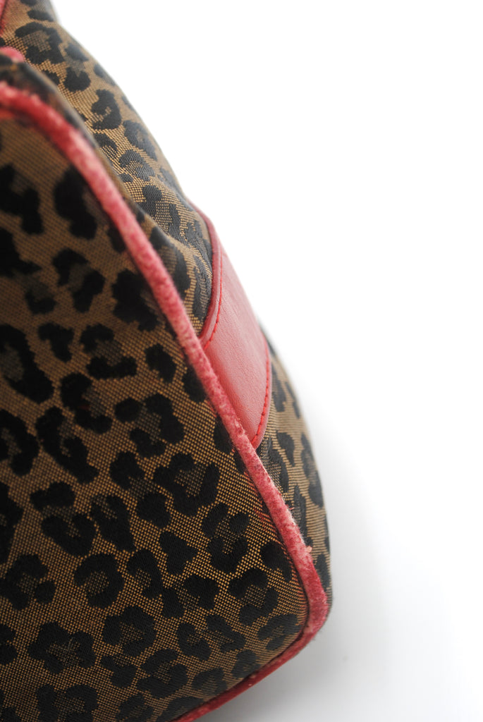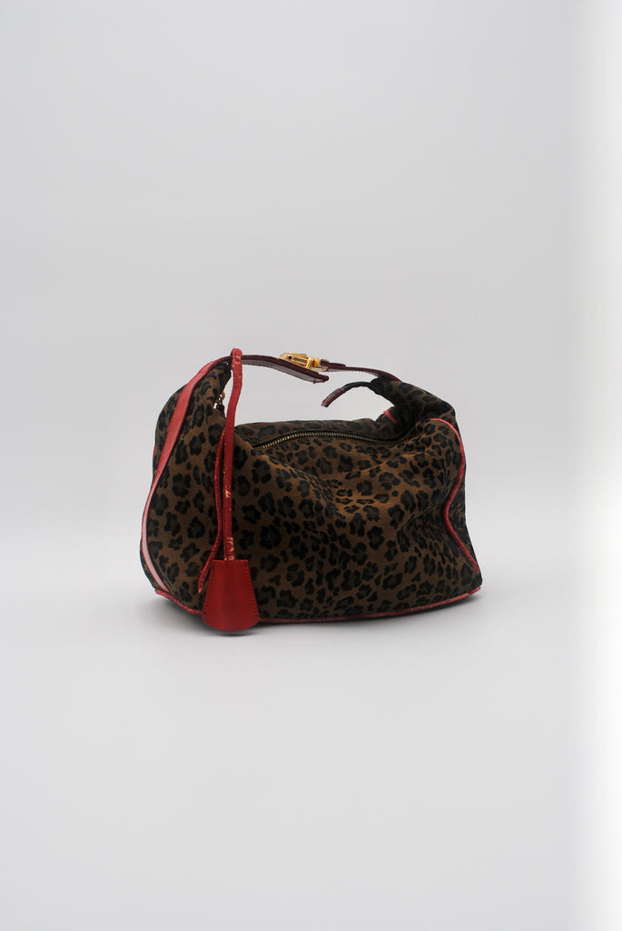 Tweedehands FENDI leopard bag met een rode leren strap met een slotje incl de sleutel, deze werkt ook nog. De tas sluit met een rits en heeft één binnenvakje met rits. Het item verkeert in een vintage staat, met gebruikssporen en wat slijtage. de tas wordt geleverd in onze mooie Moon flower dustbag.