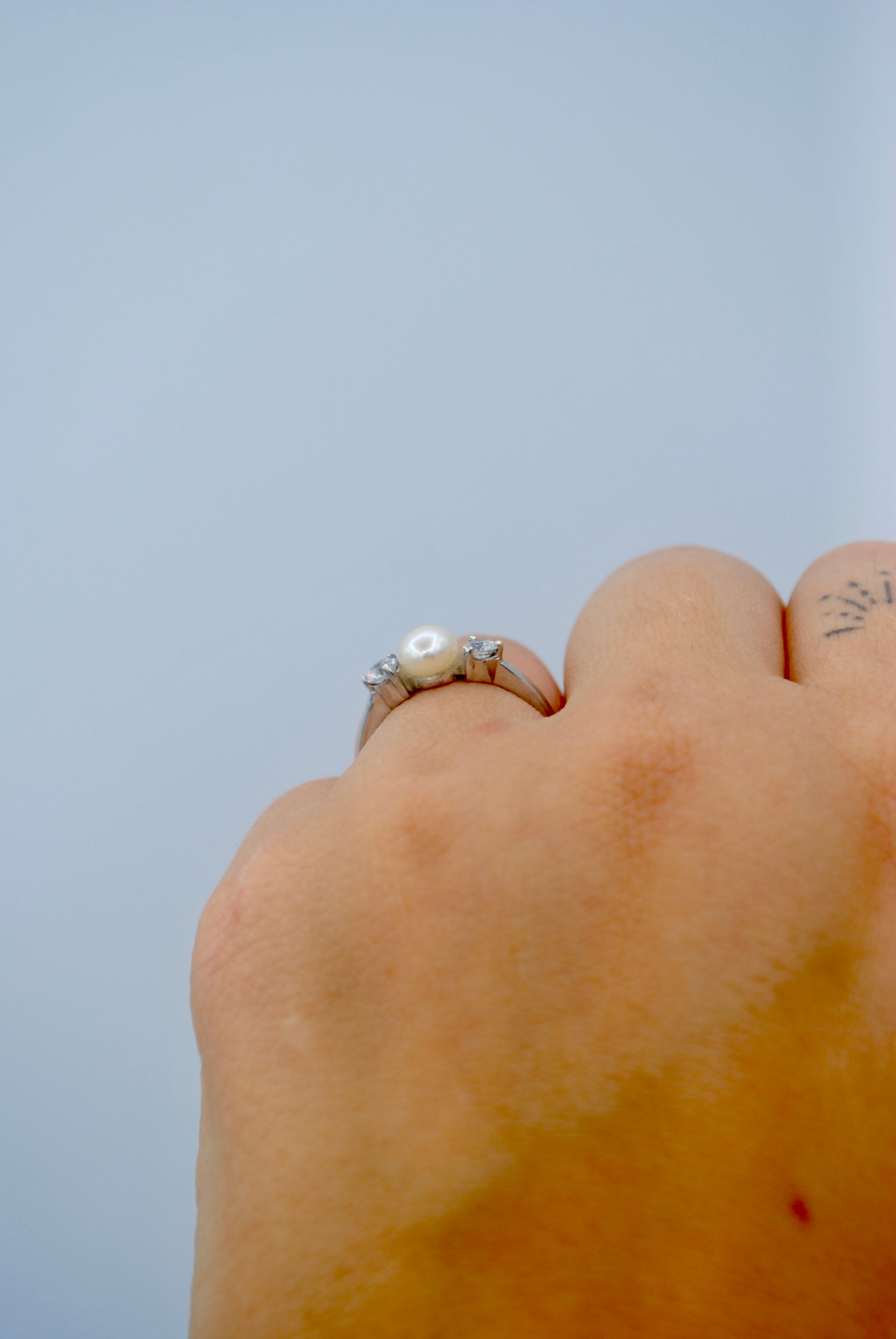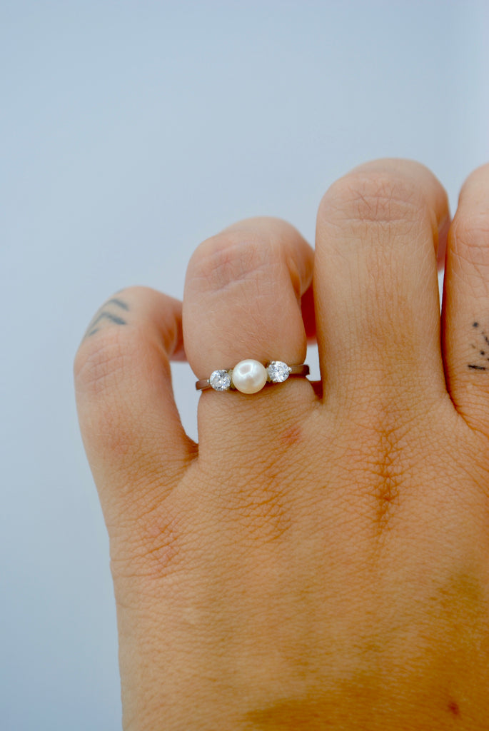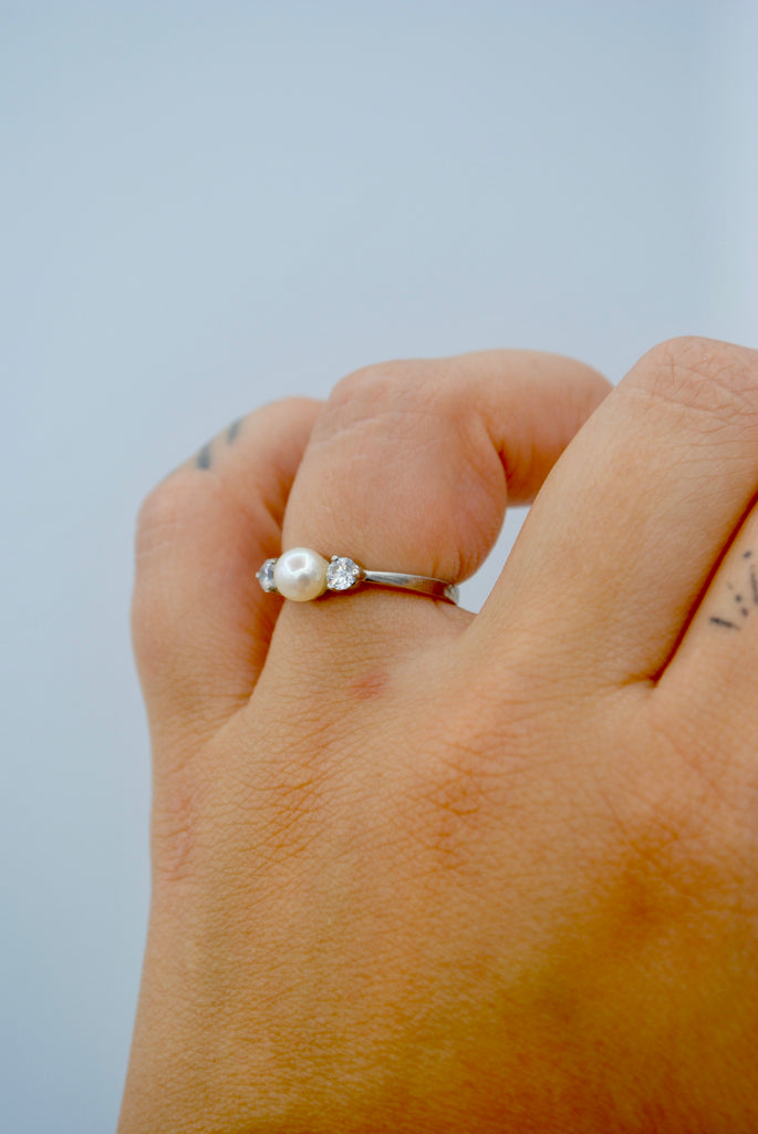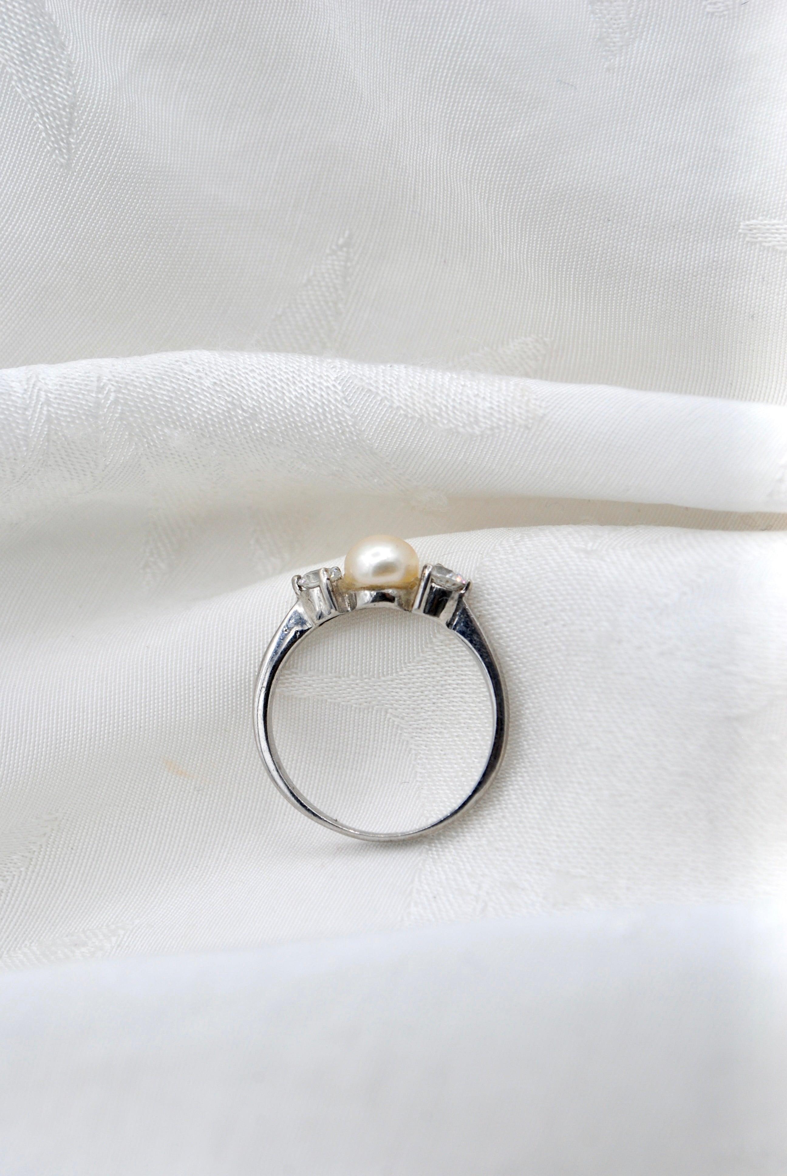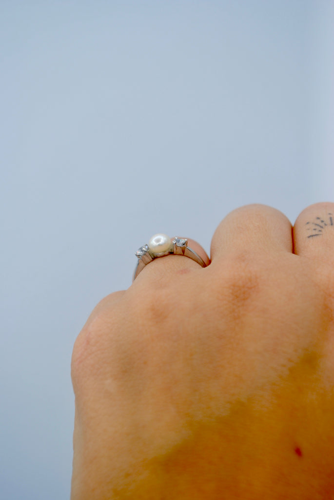 Vintage zilveren ring met parel