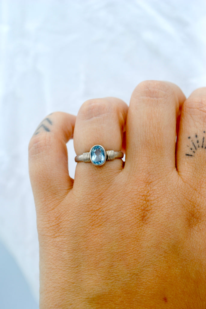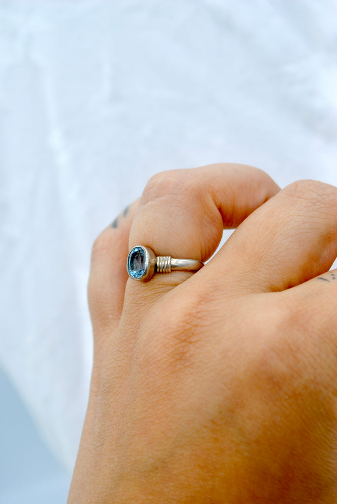 Vintage zilveren ring met topaas