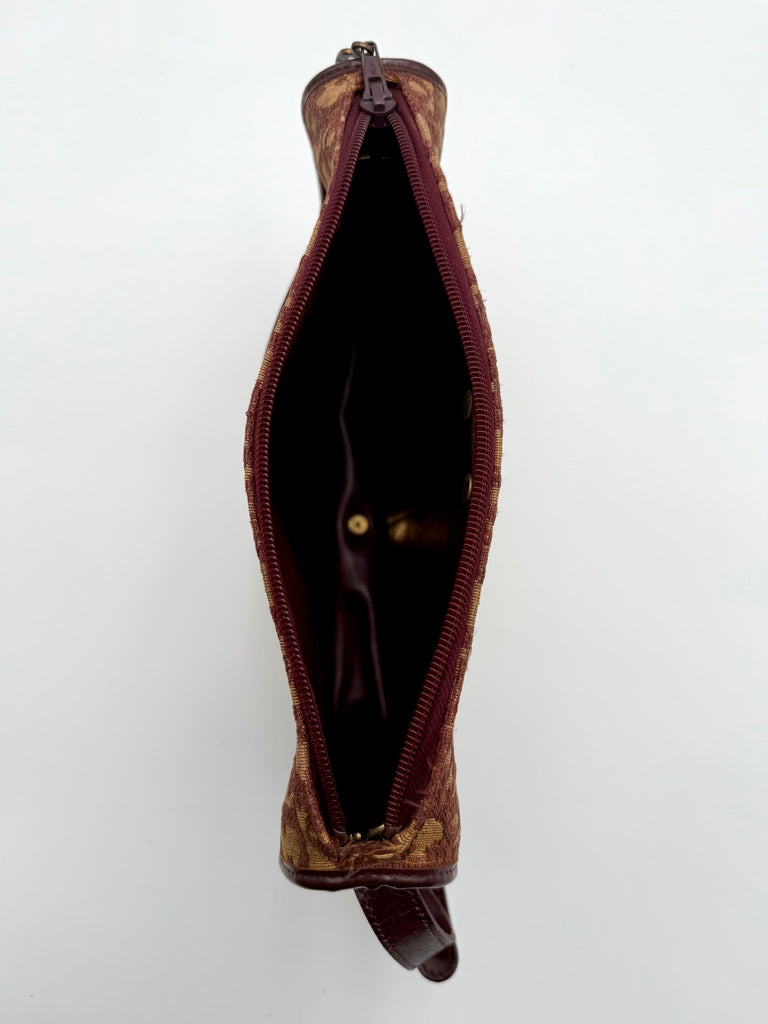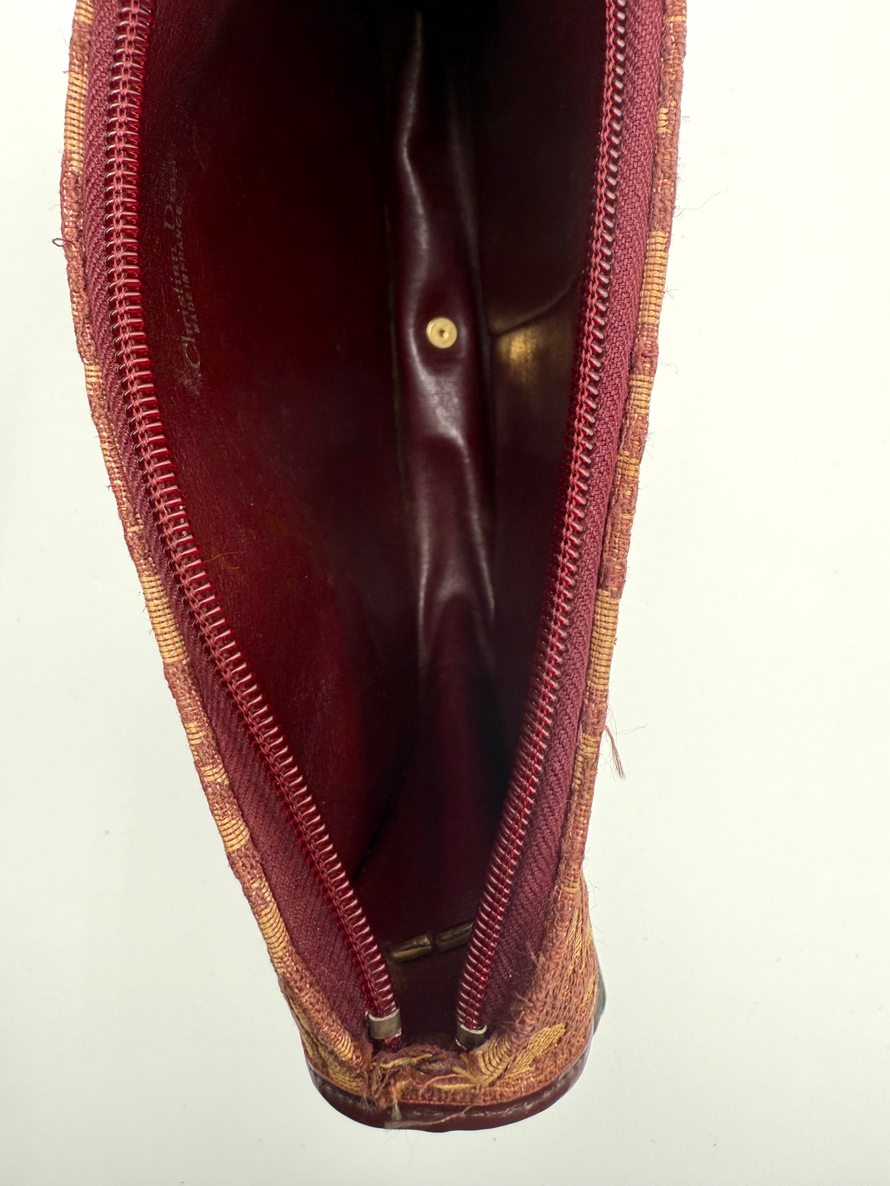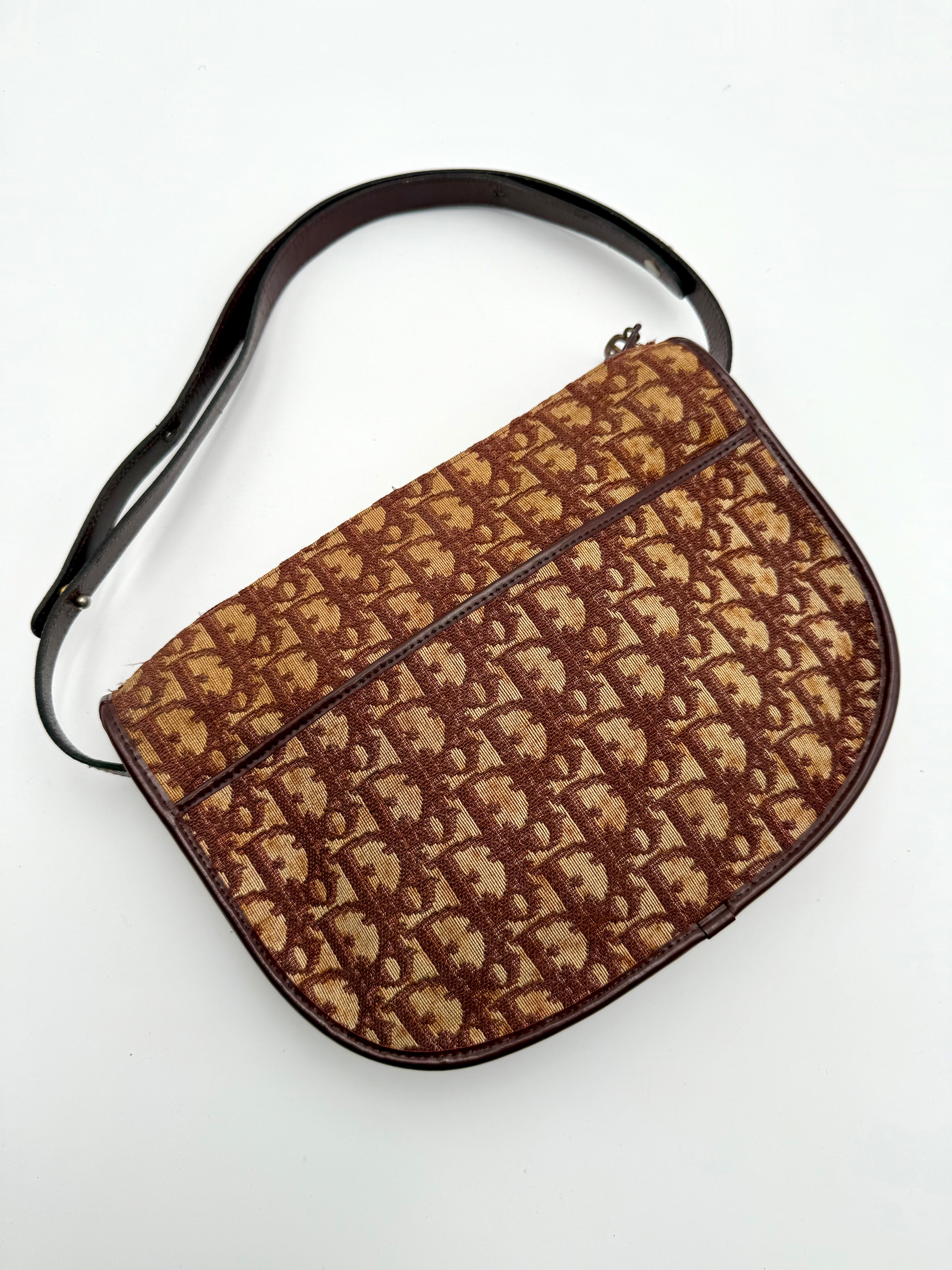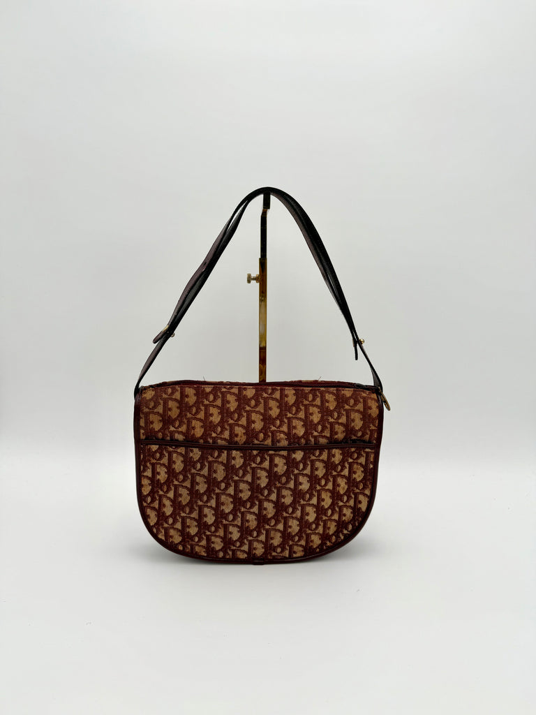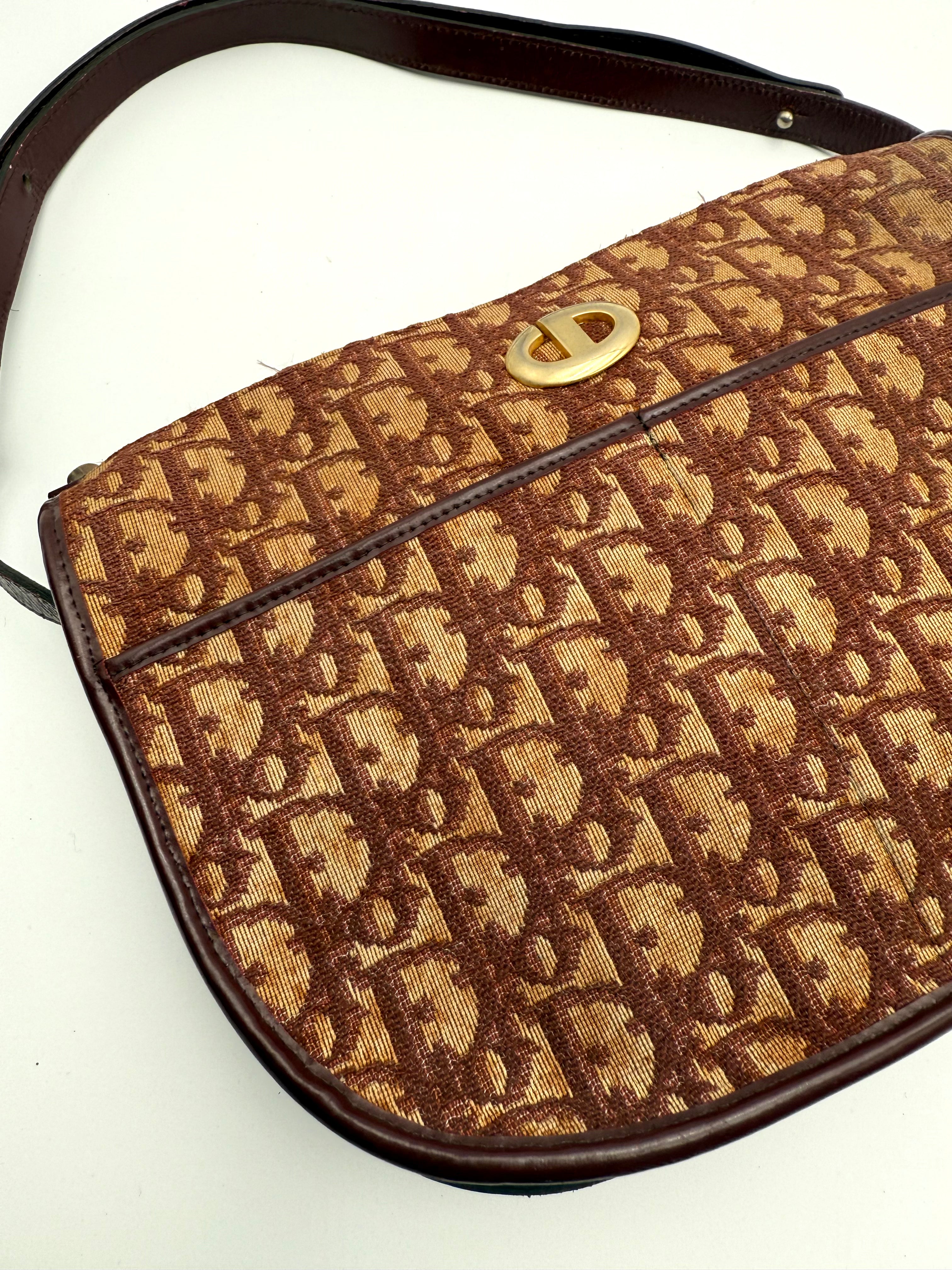 Tweedehands Christian Dior Trotter Canvas bag in de kleur rood/beige met gouden hardware. De tas beschikt over twee voorvakjes en een achtervakje. De tas kan kort en als crossbody gedragen worden. Het item verkeert in een zeer goede vintage staat, met algemene gebruikssporen. De tas wordt geleverd in onze mooie Moon flower dustbag.