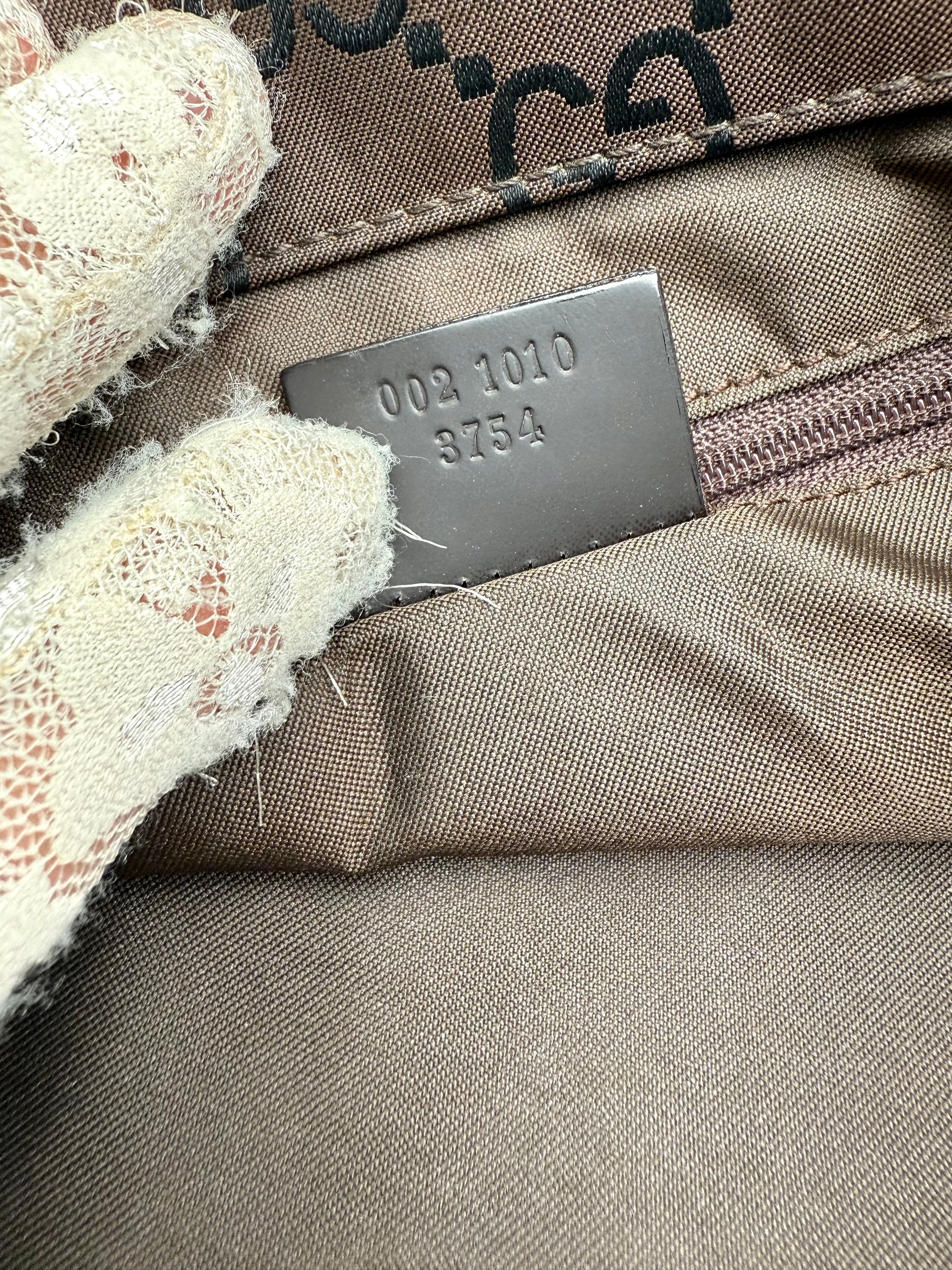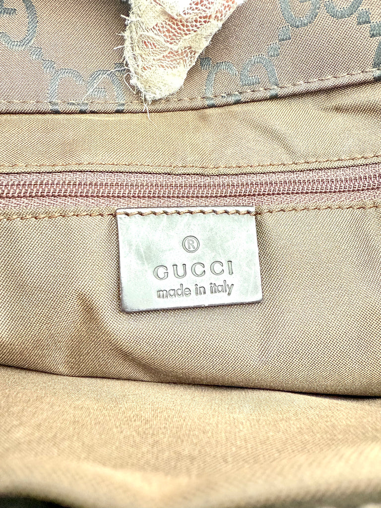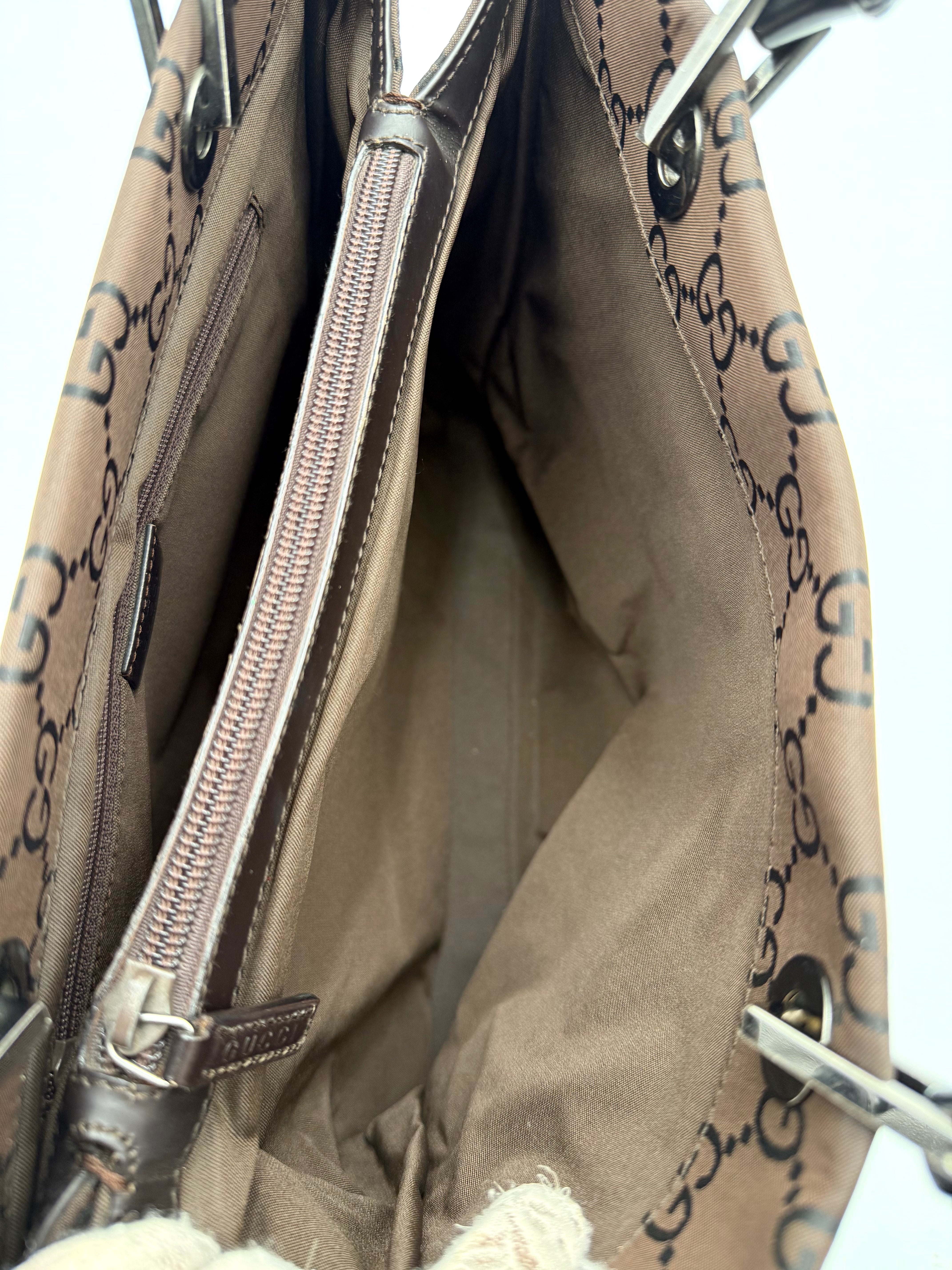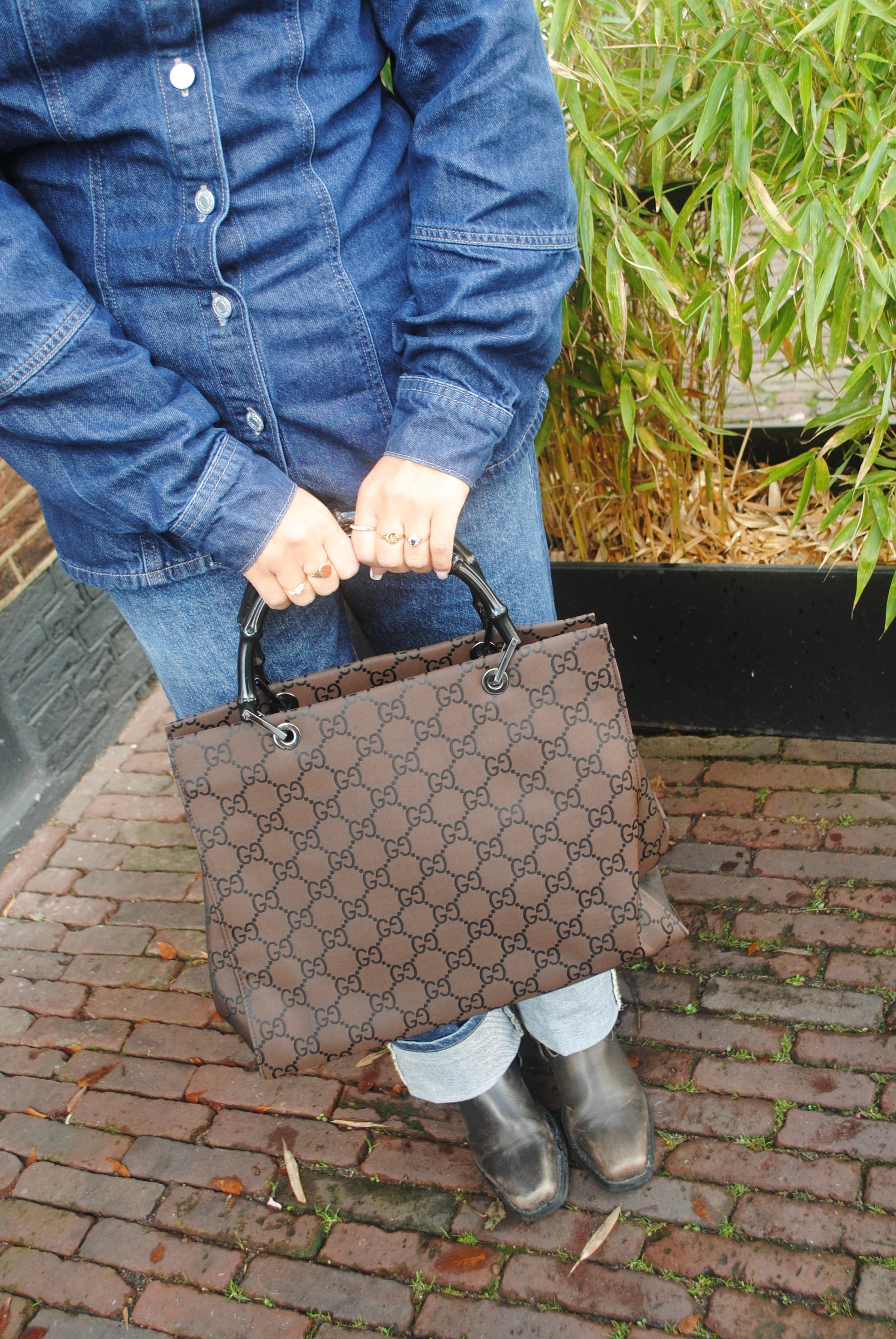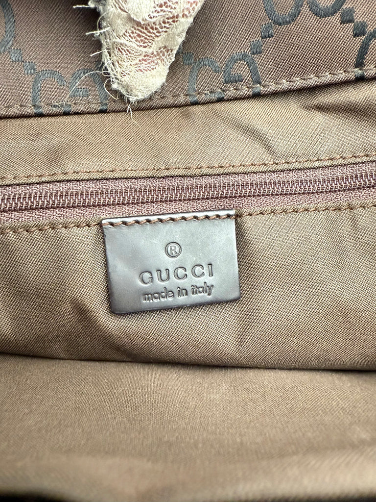 Tweedehands GUCCI bamboo bag met een mooie bruine kleur en bamboe hengsels. De tas beschikt over twee open vakken en een tussenvak met rits en nog een klein binnenvakje met rits. Het item verkeert in een zeer goede vintage staat, met algemene gebruikssporen. De tas wordt geleverd in onze mooie Moon flower dustbag.