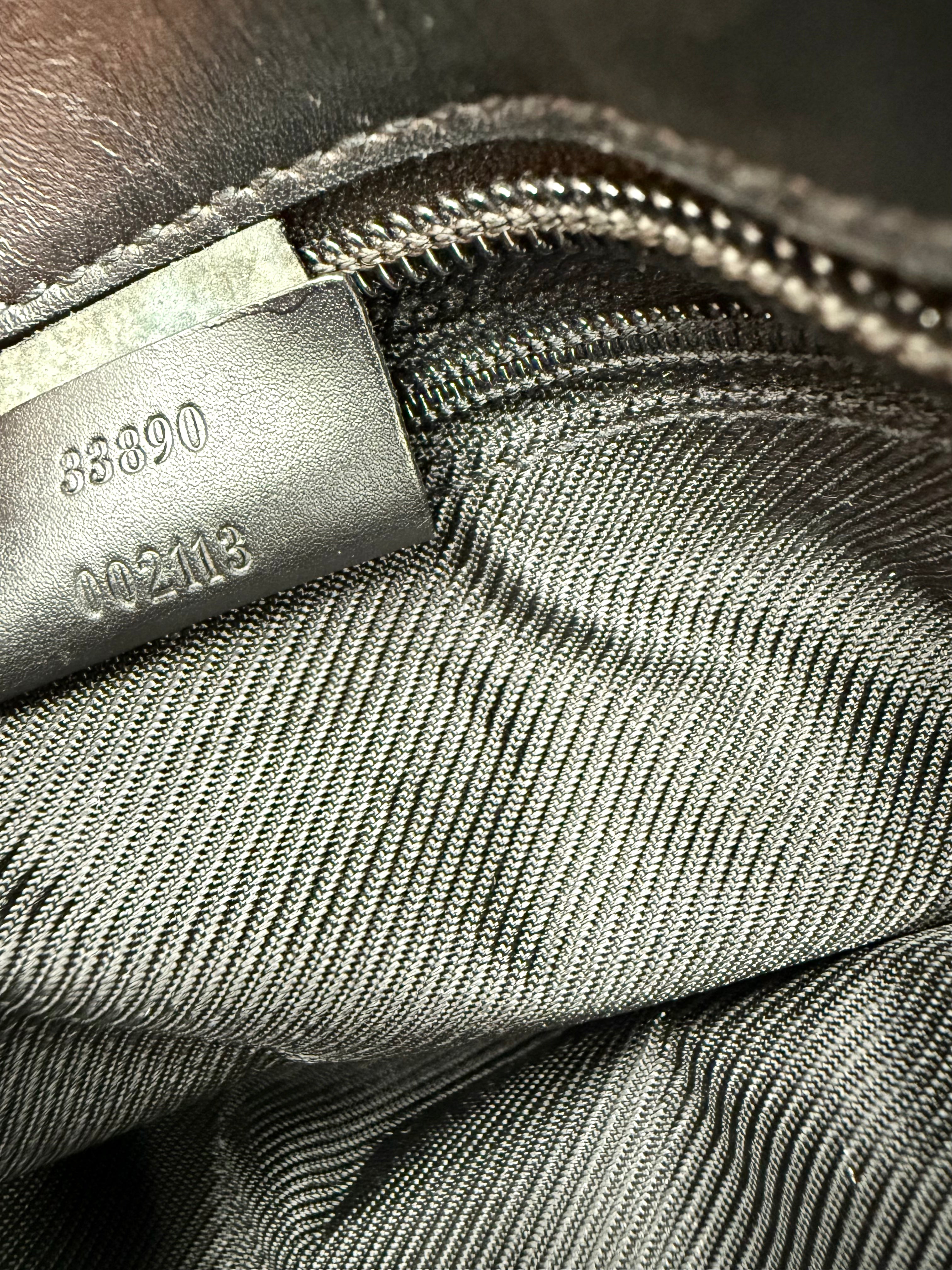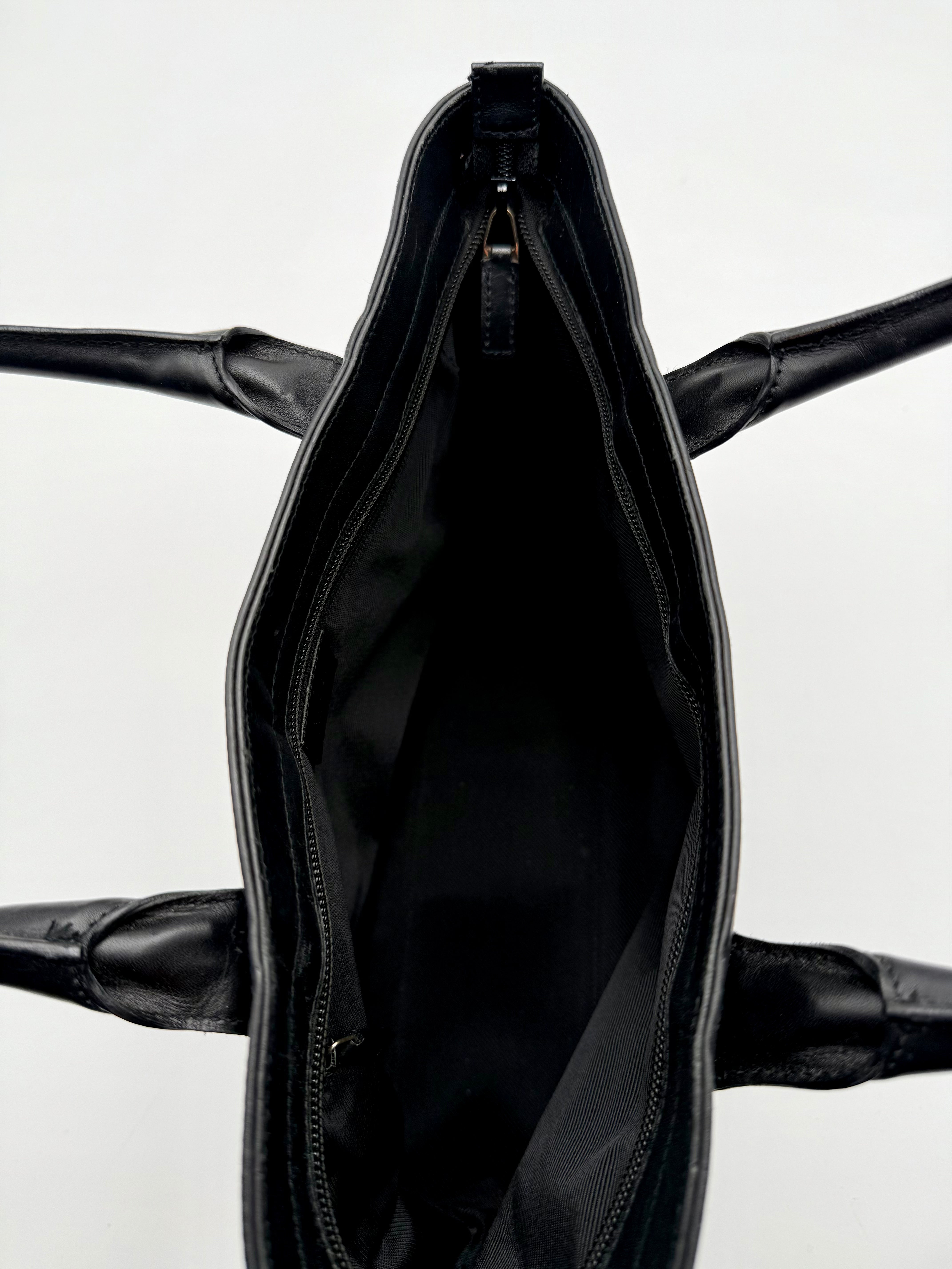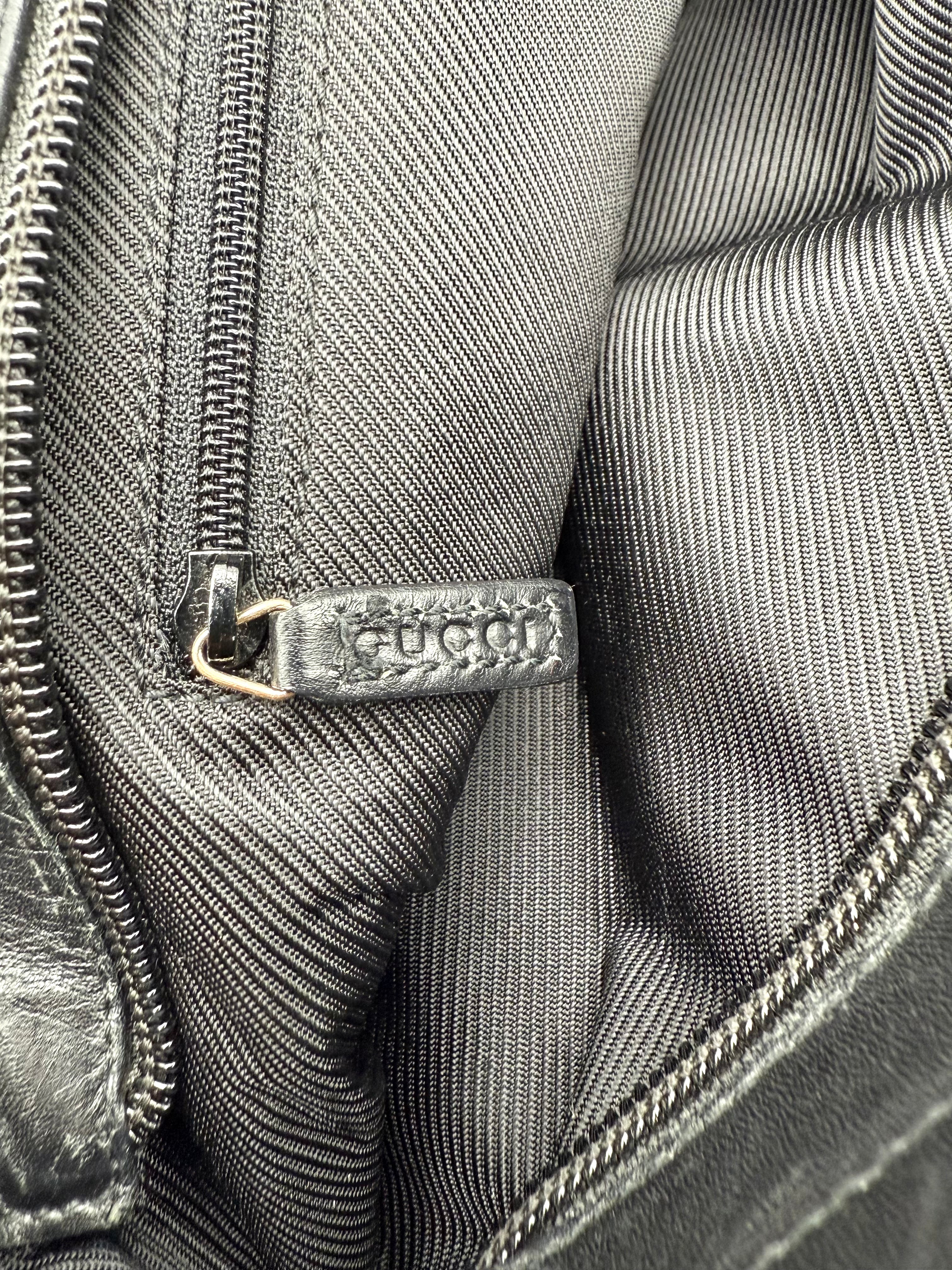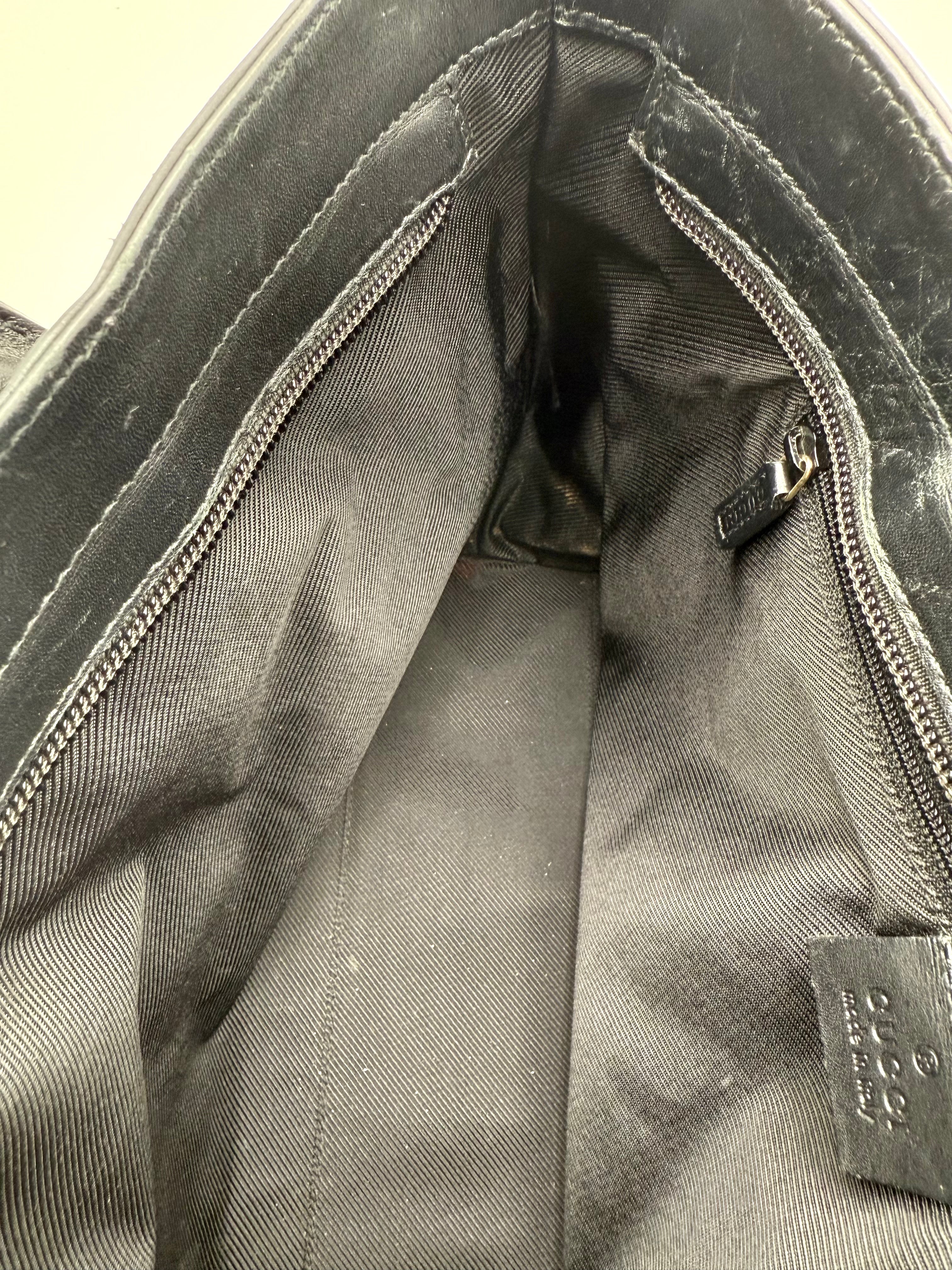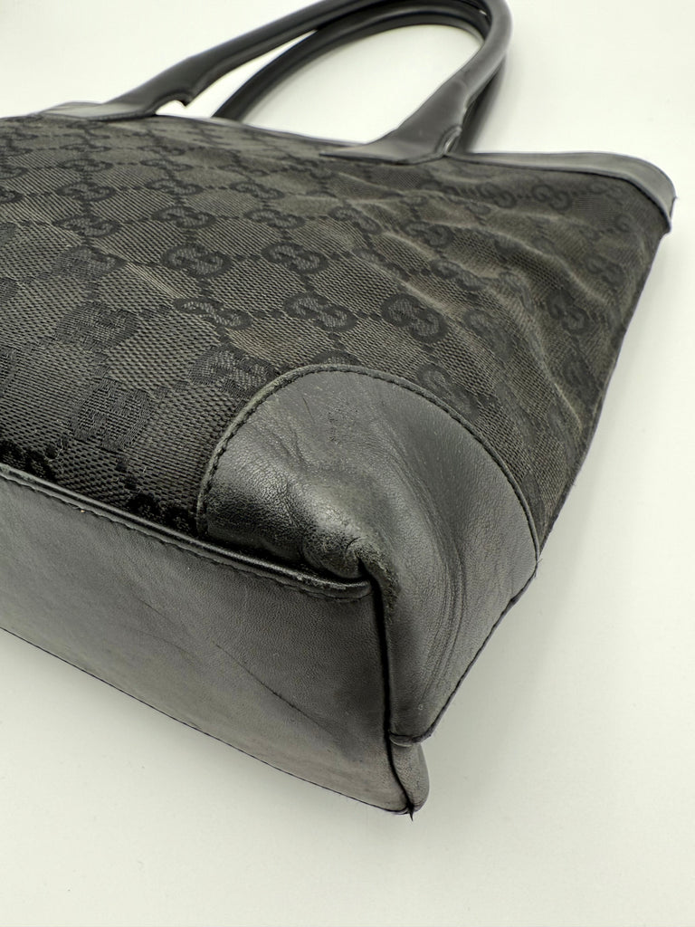 Tweedehands GUCCI Supreme canvas tote bag. De tas is van zwart canvas met een mooi leren hengsels. De tas sluit met een rits en beschikt over een binnenvak met rits. Het item verkeert in een mooie vintage staat, met algemene gebruikssporen. De tas wordt geleverd in onze mooie Moon flower dustbag.