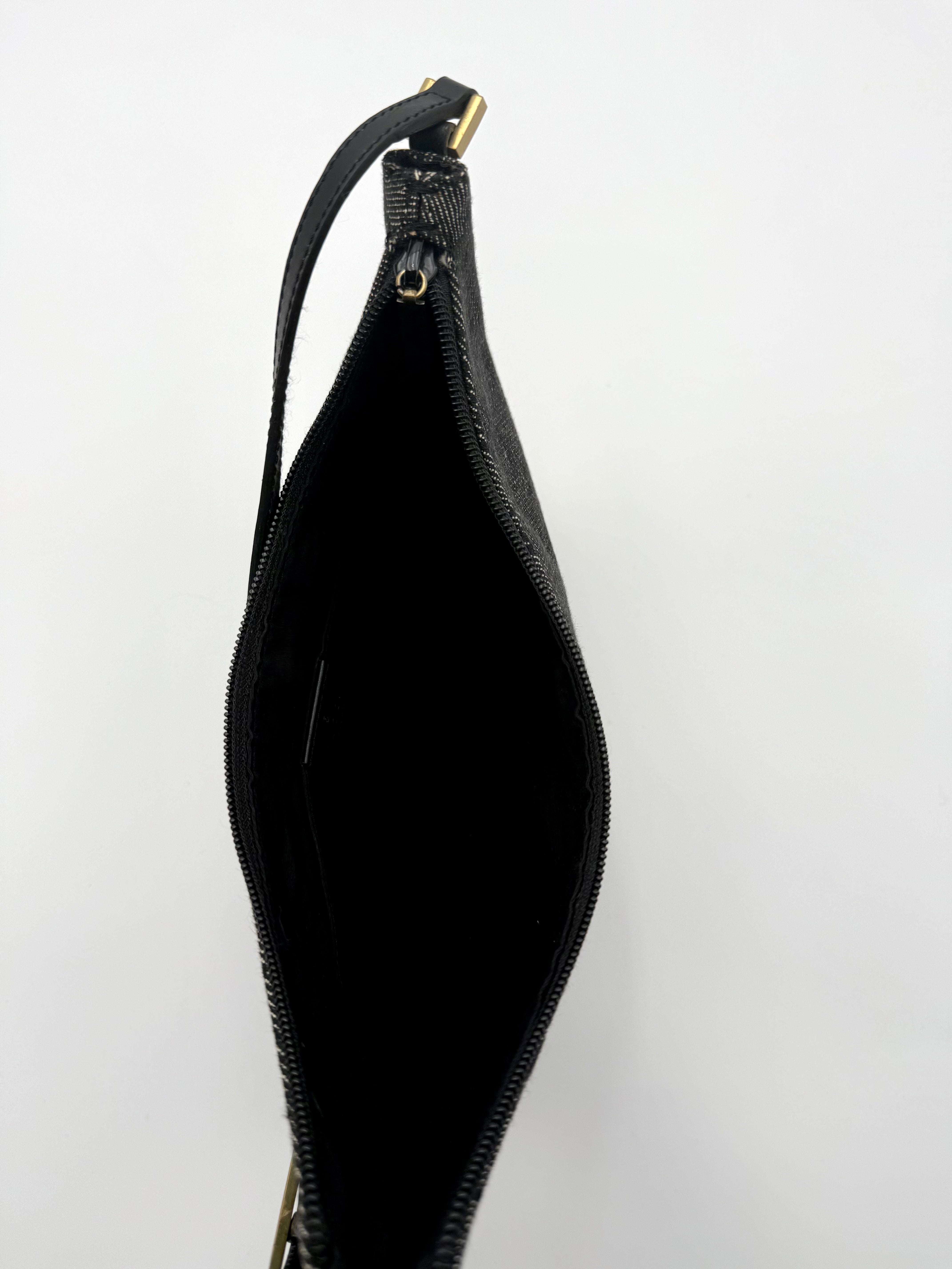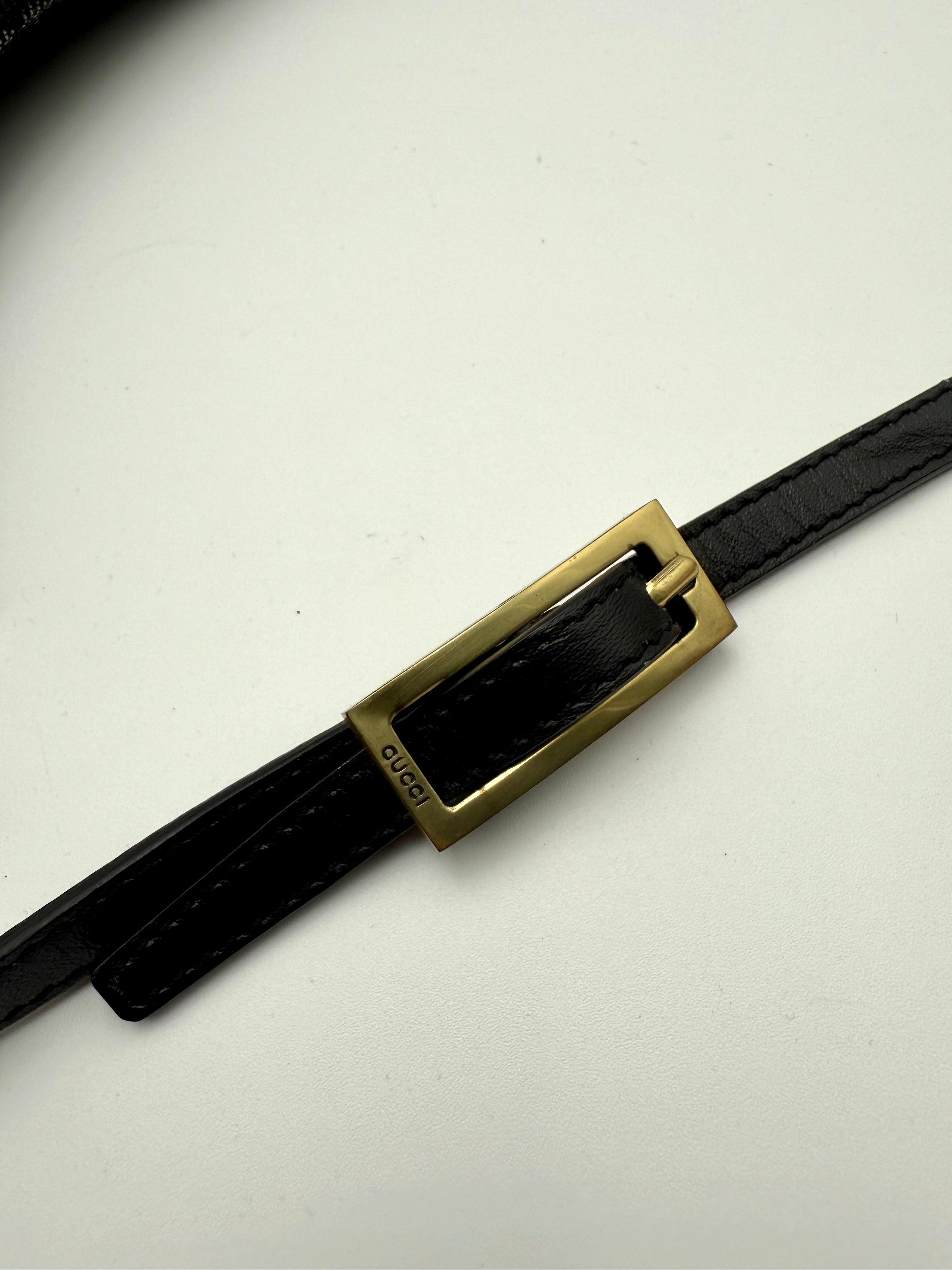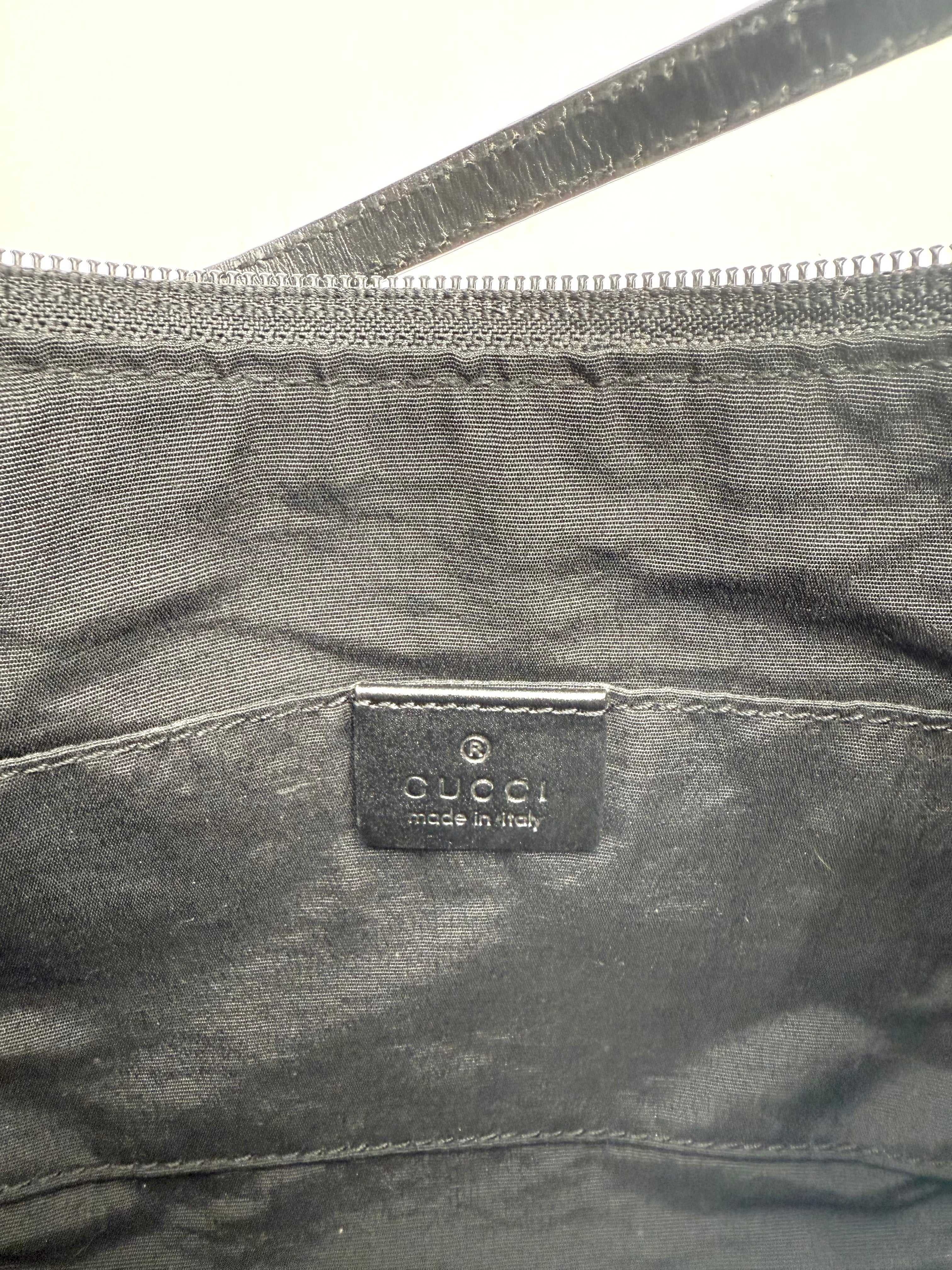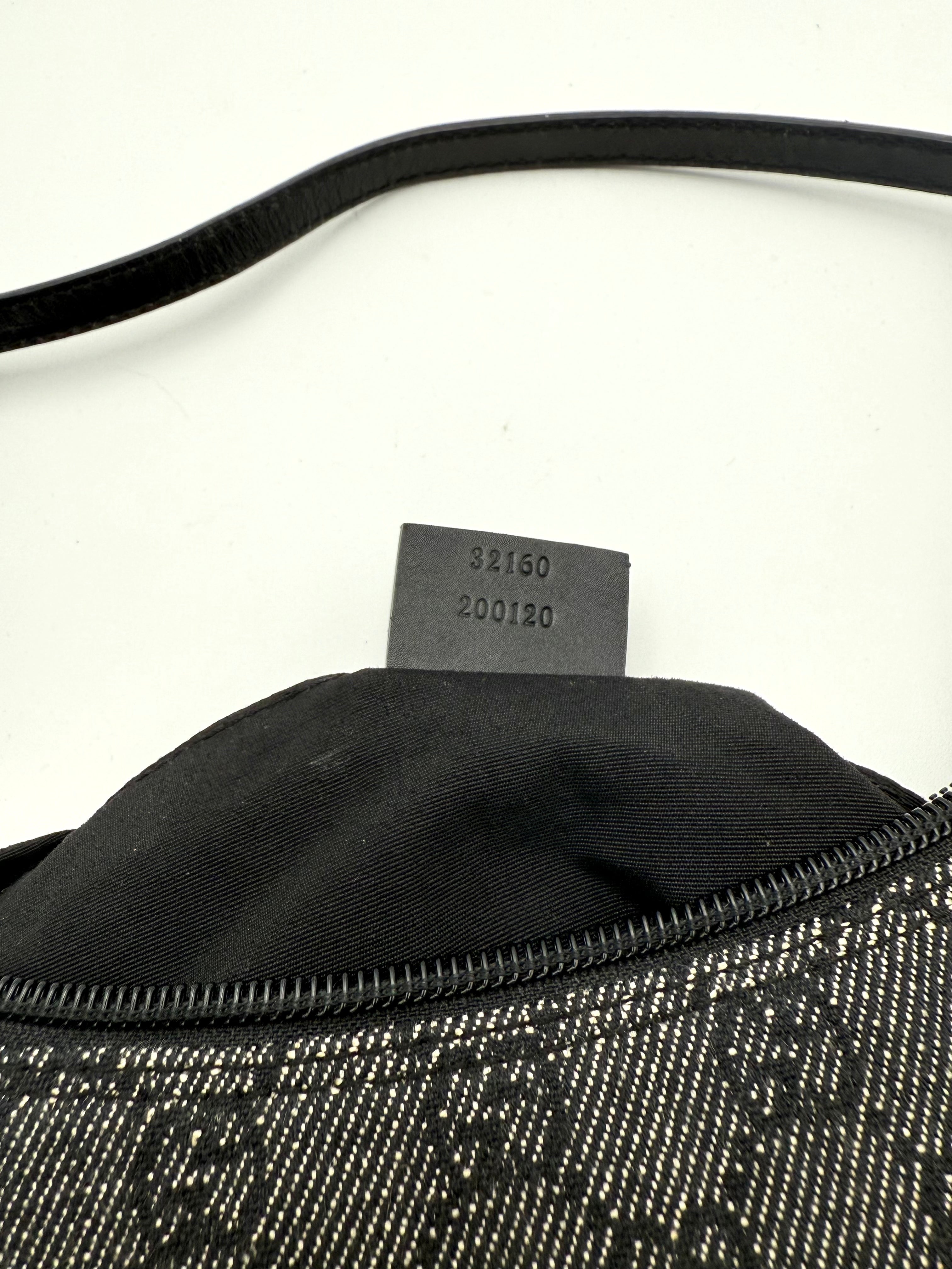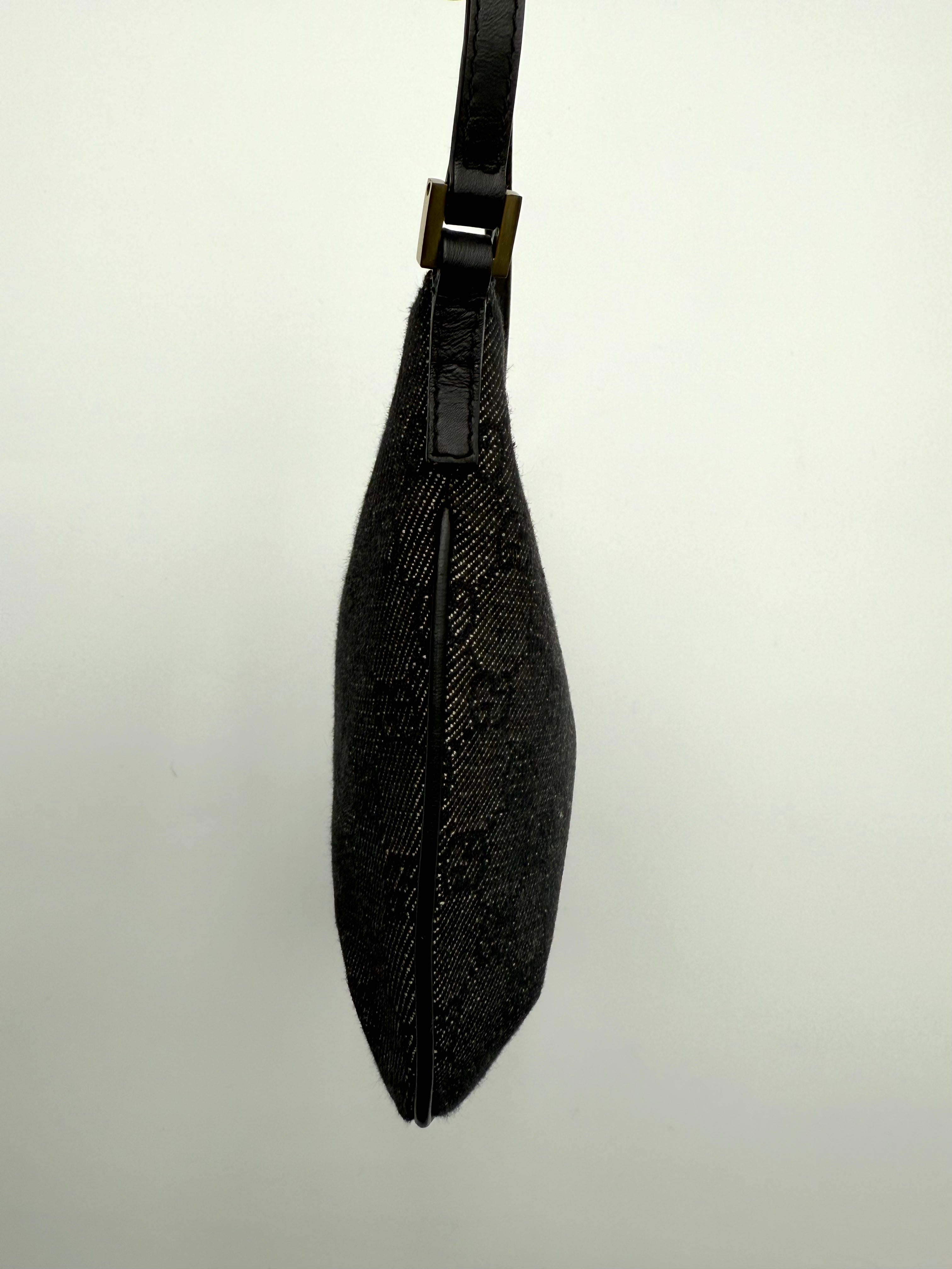 Tweedehands GUCCI canvas bag in een blauw/grijze denim kleur. De tas is van canvas met een leren hengsel en met gouden hardware. De tas beschikt over één binnenvakje. Het item verkeert in een zeer goede vintage staat, met algemene gebruikssporen. De tas wordt geleverd in onze mooie Moon flower dustbag.