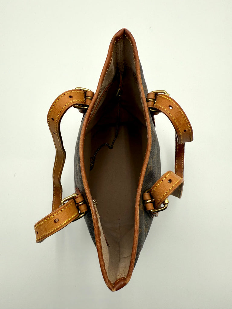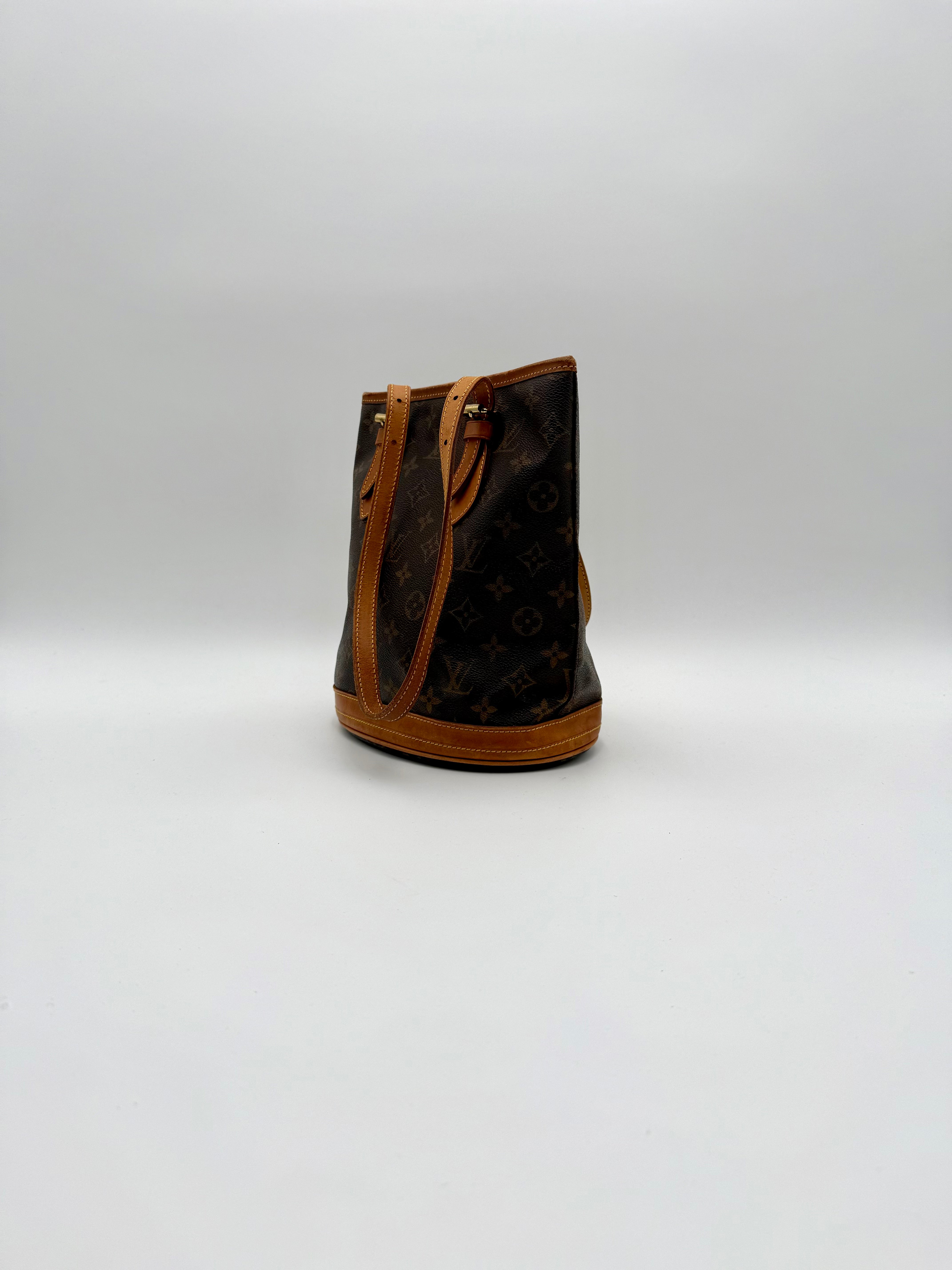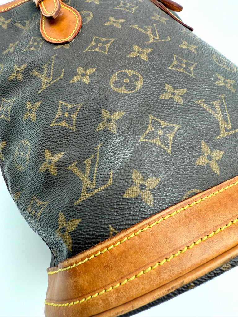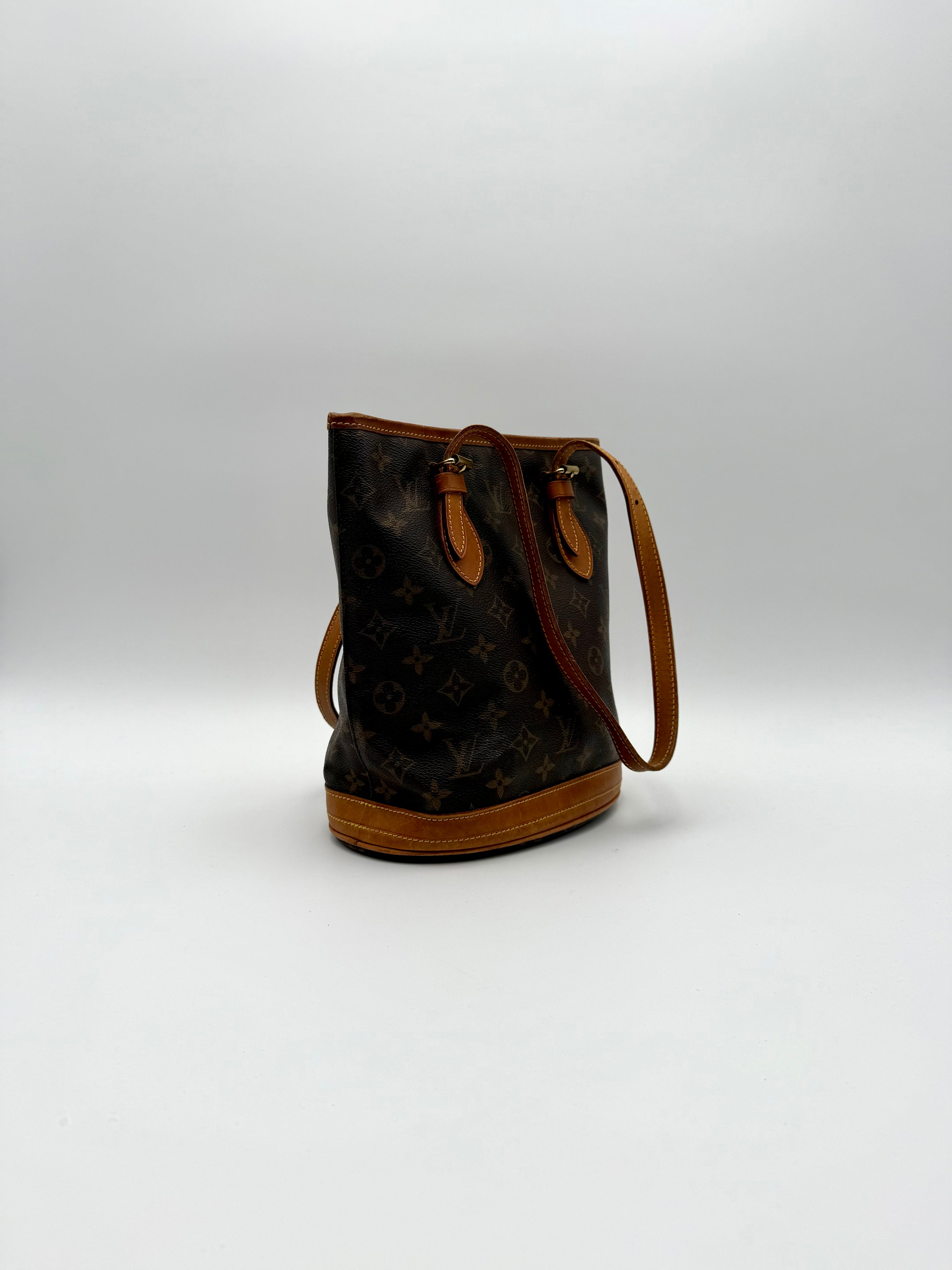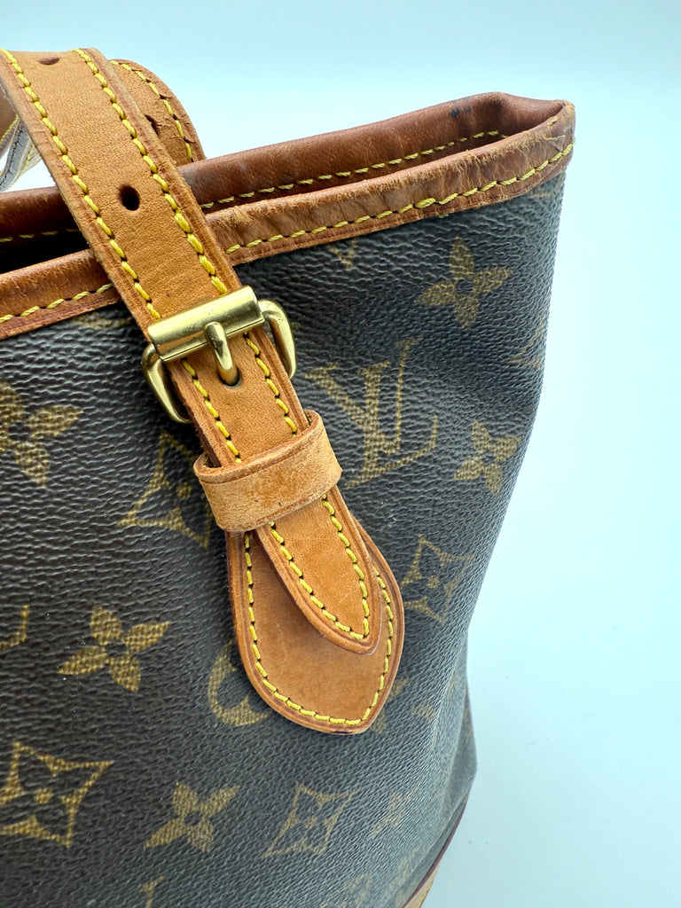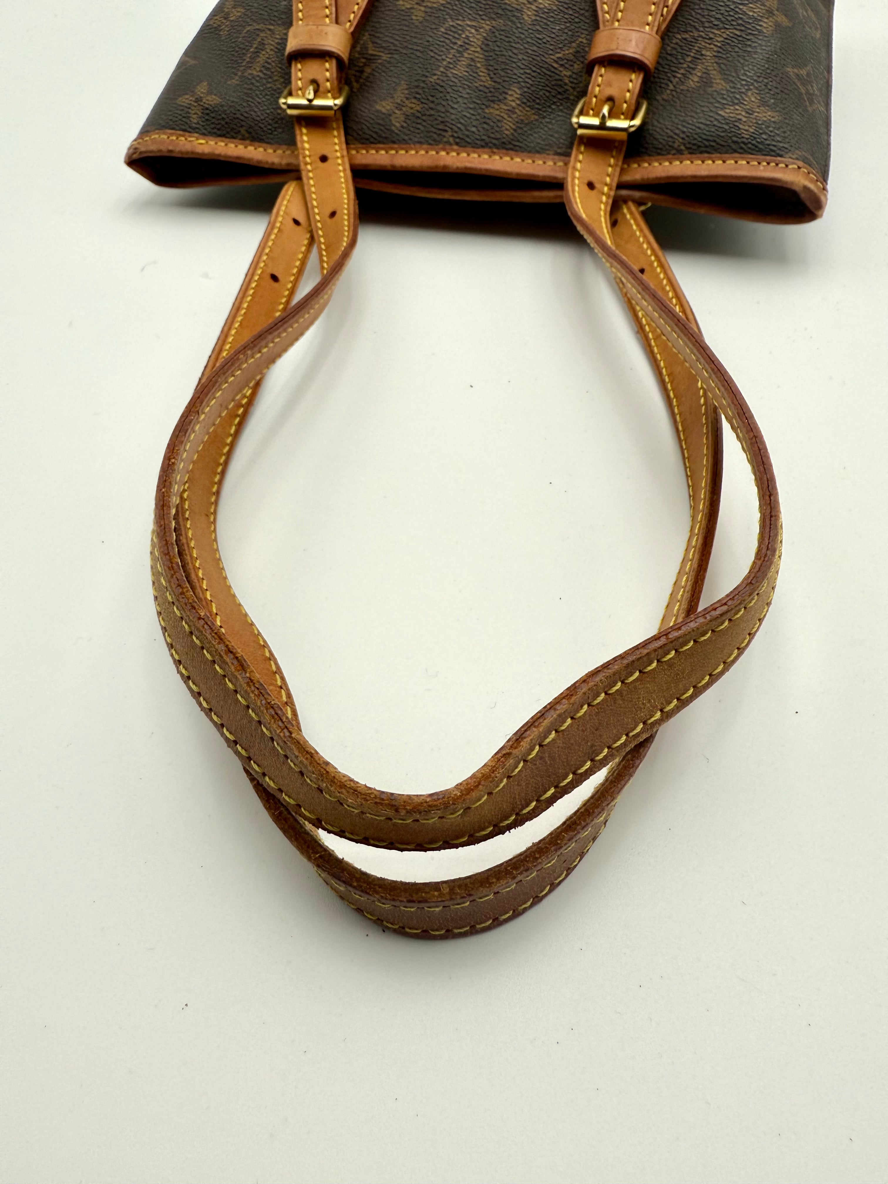 Tweedehands LOUIS VUITTON Monogram bucket PM bag en gouden hardware. De perfecte alledaagse tas! De tas heeft twee binnenvakjes waarvan één met rits en een gouden sleutelketting. Het item verkeert in een zeer goede vintage staat, met algemene gebruikssporen. De tas wordt geleverd in onze mooie Moon flower dustbag.