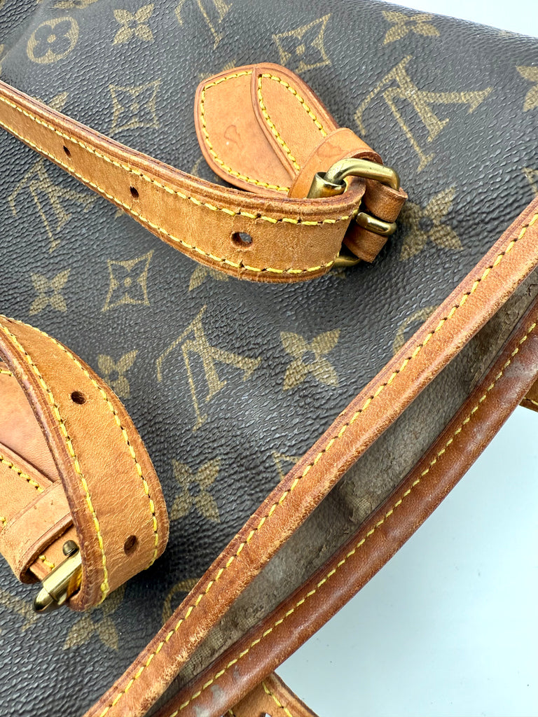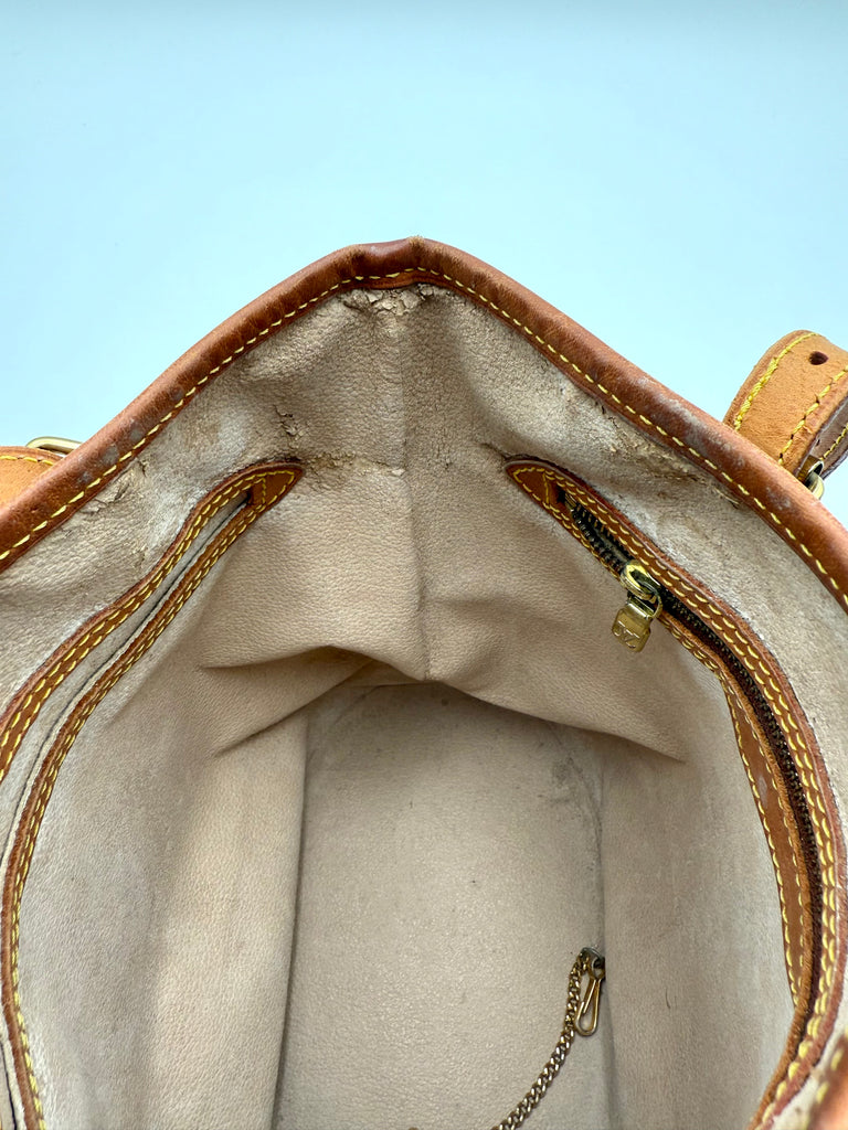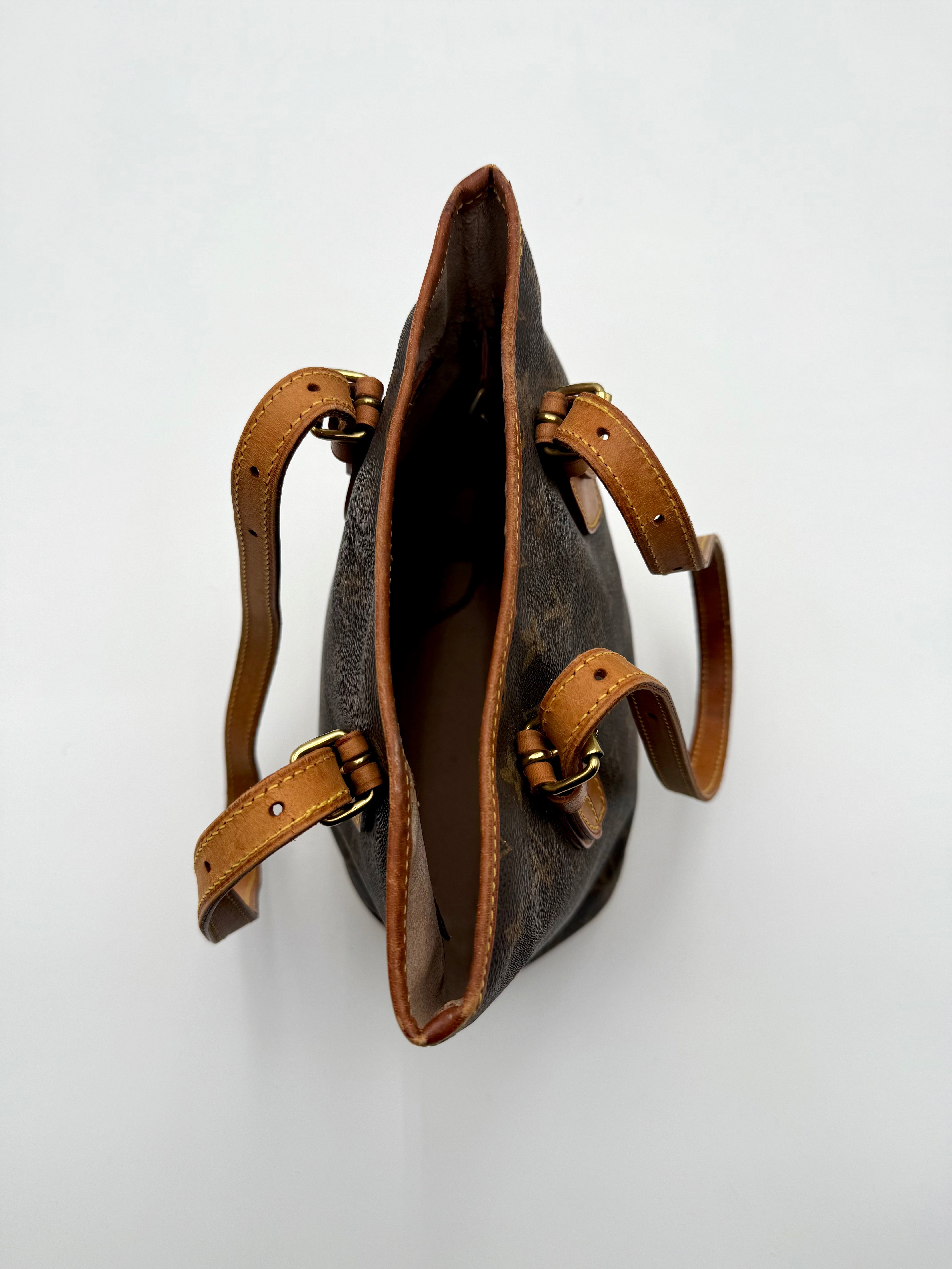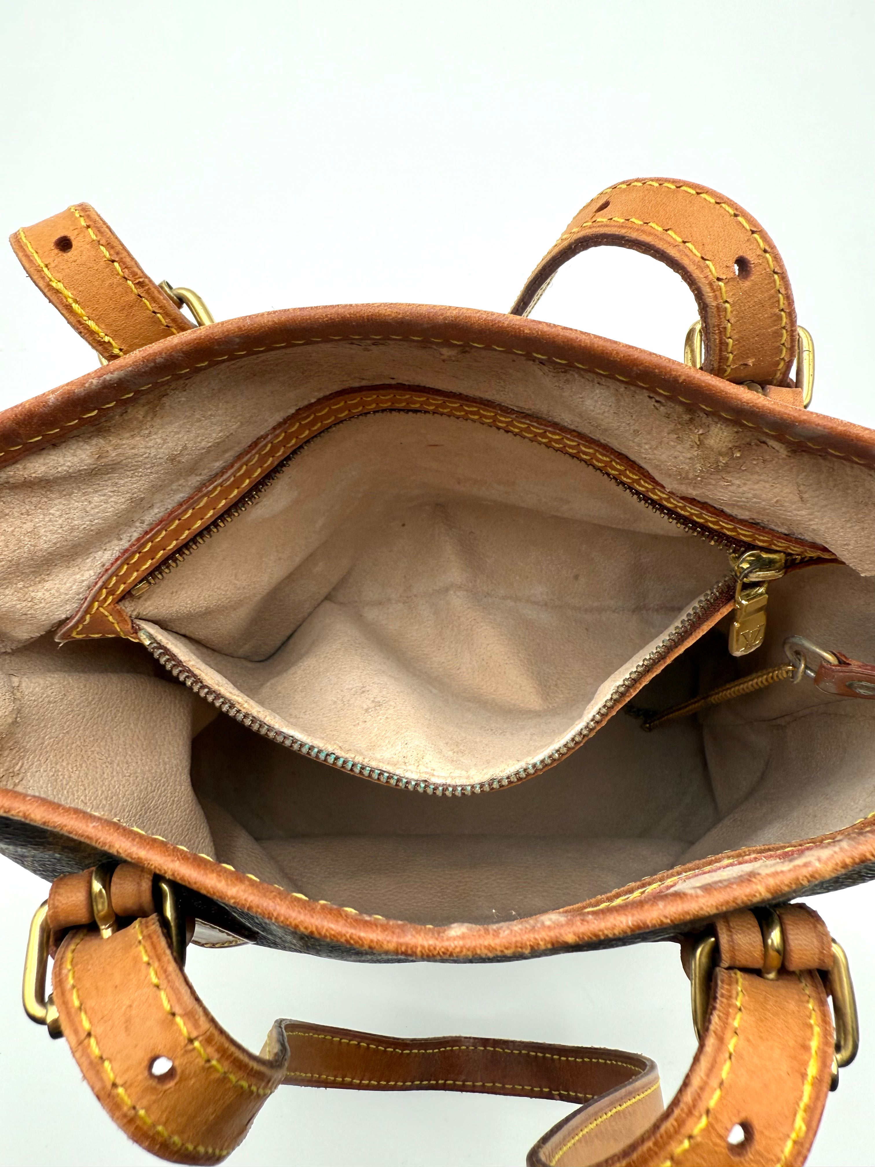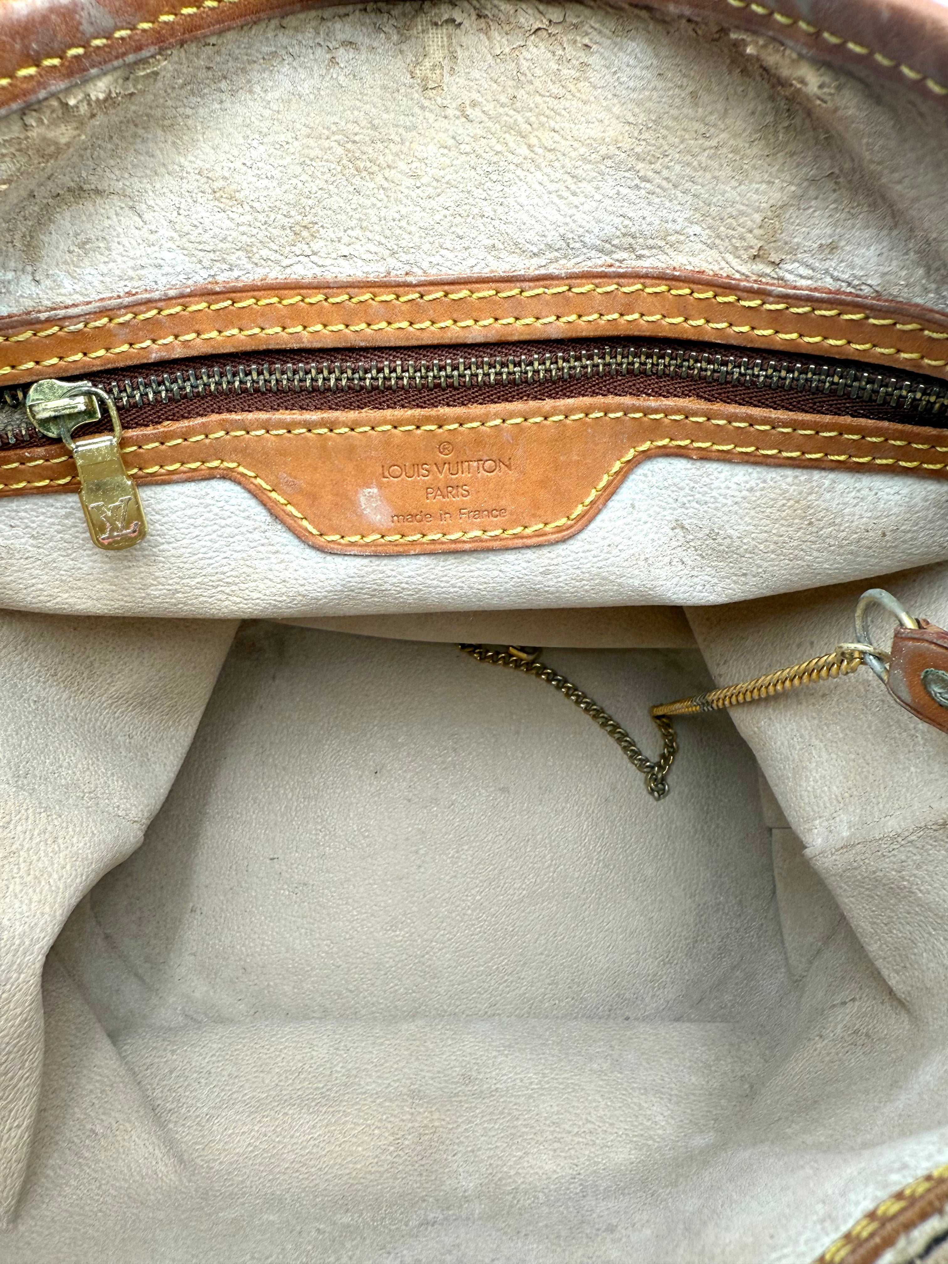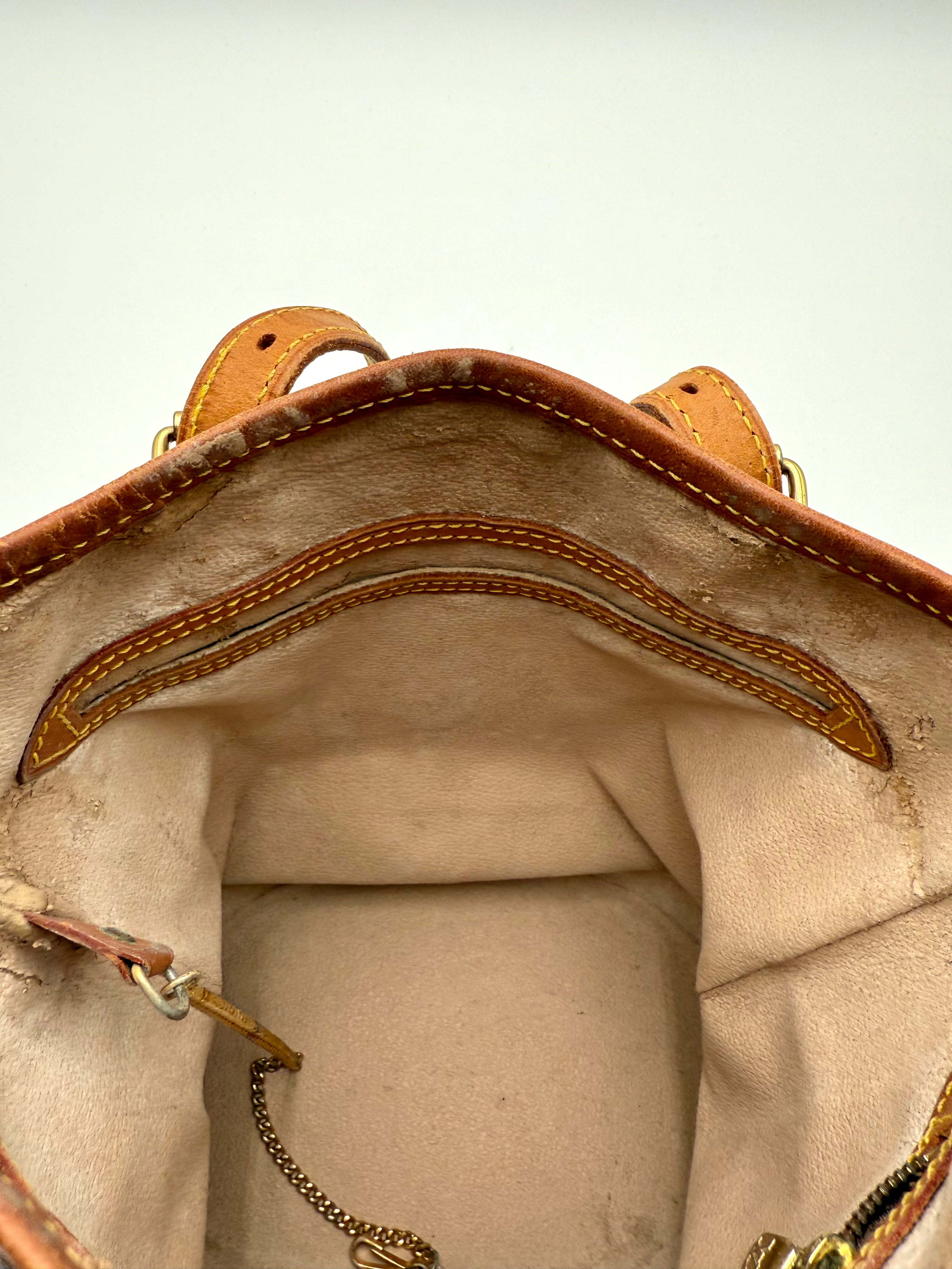 Tweedehands LOUIS VUITTON Monogram bucket PM bag en gouden hardware. De perfecte alledaagse tas! De tas heeft twee binnenvakjes waarvan één met rits en een gouden sleutelketting. Het item verkeert in een zeer goede vintage staat, met algemene gebruikssporen. De tas wordt geleverd in onze mooie Moon flower dustbag.