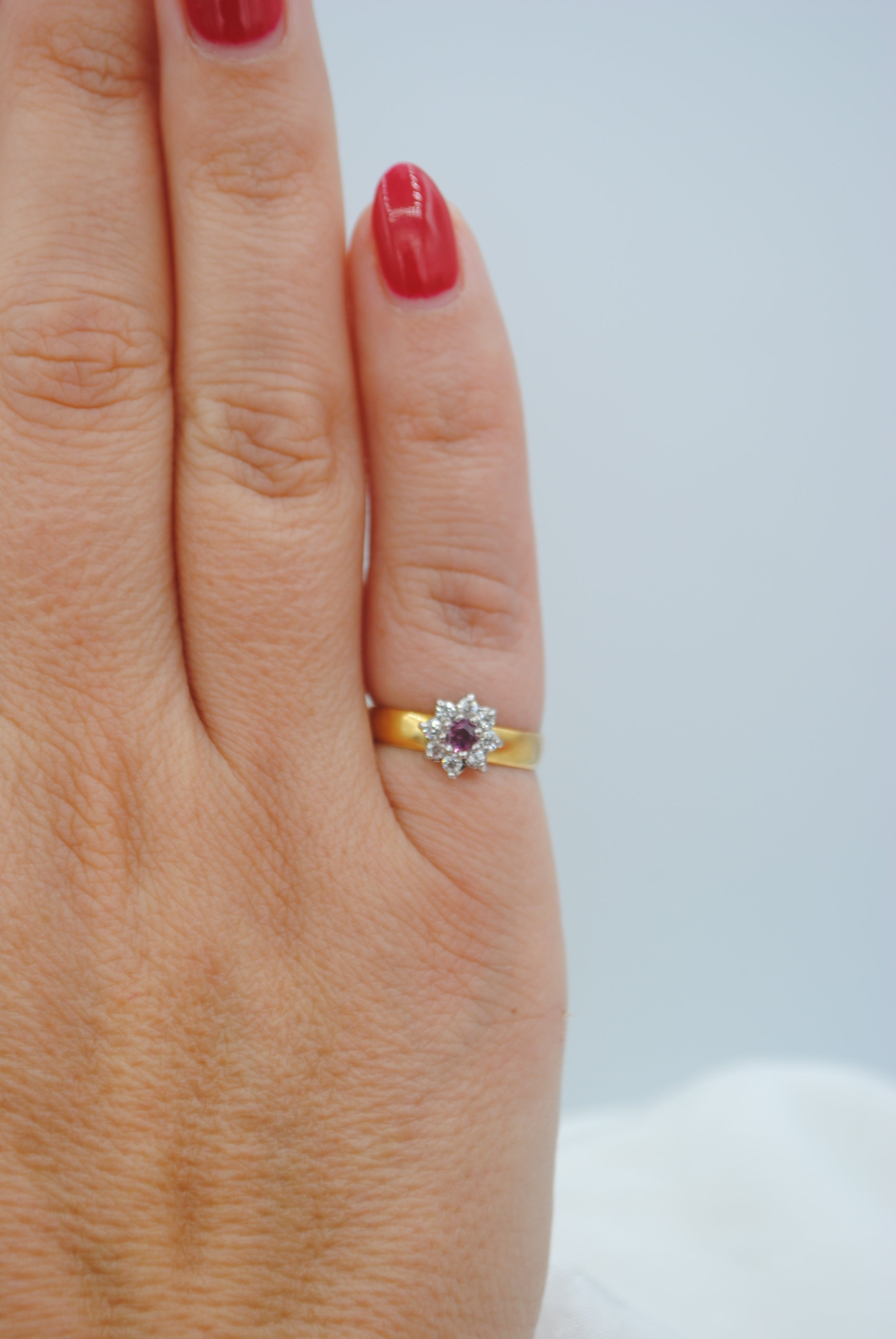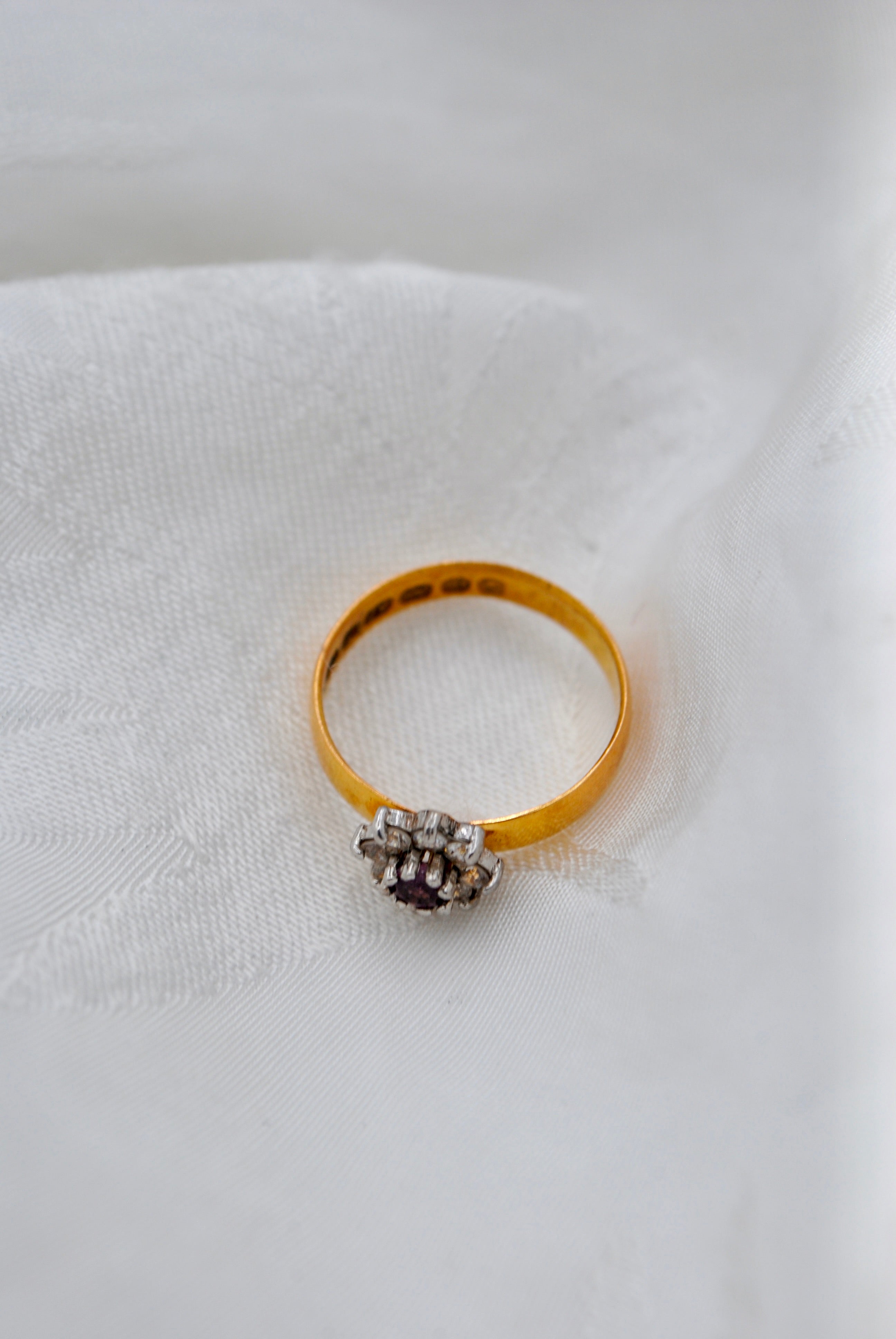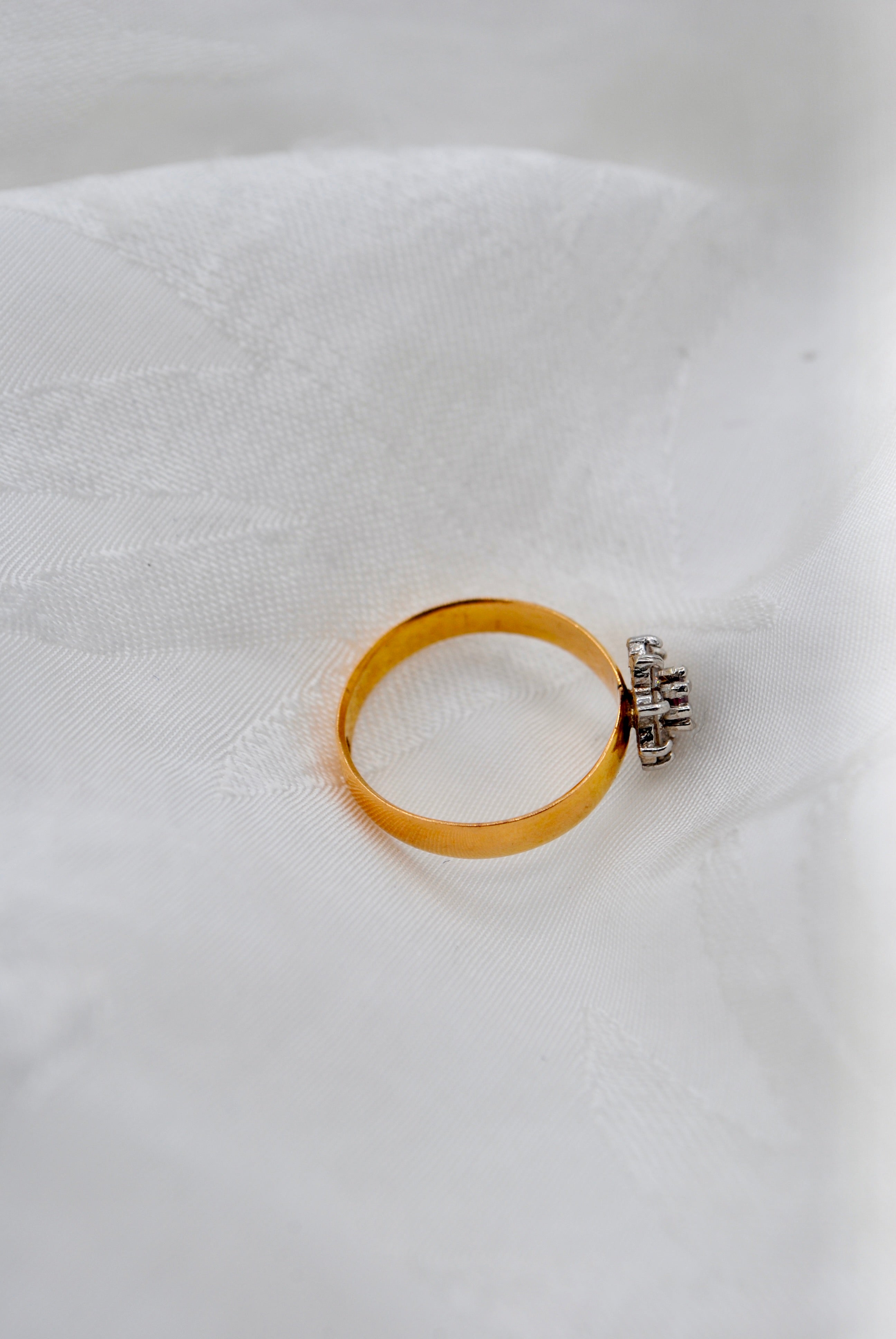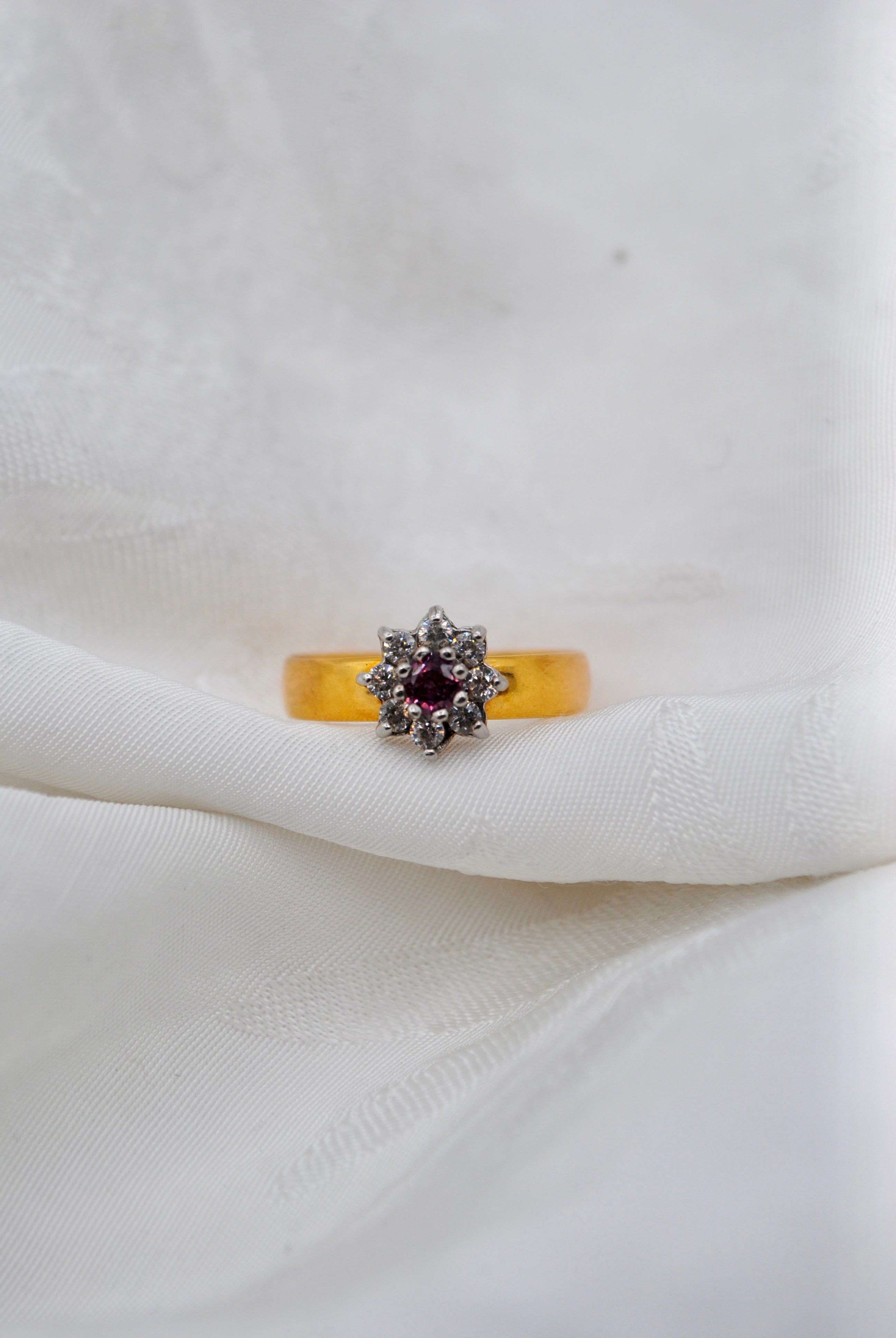 Vintage 22k gouden ring met robijn & diamant