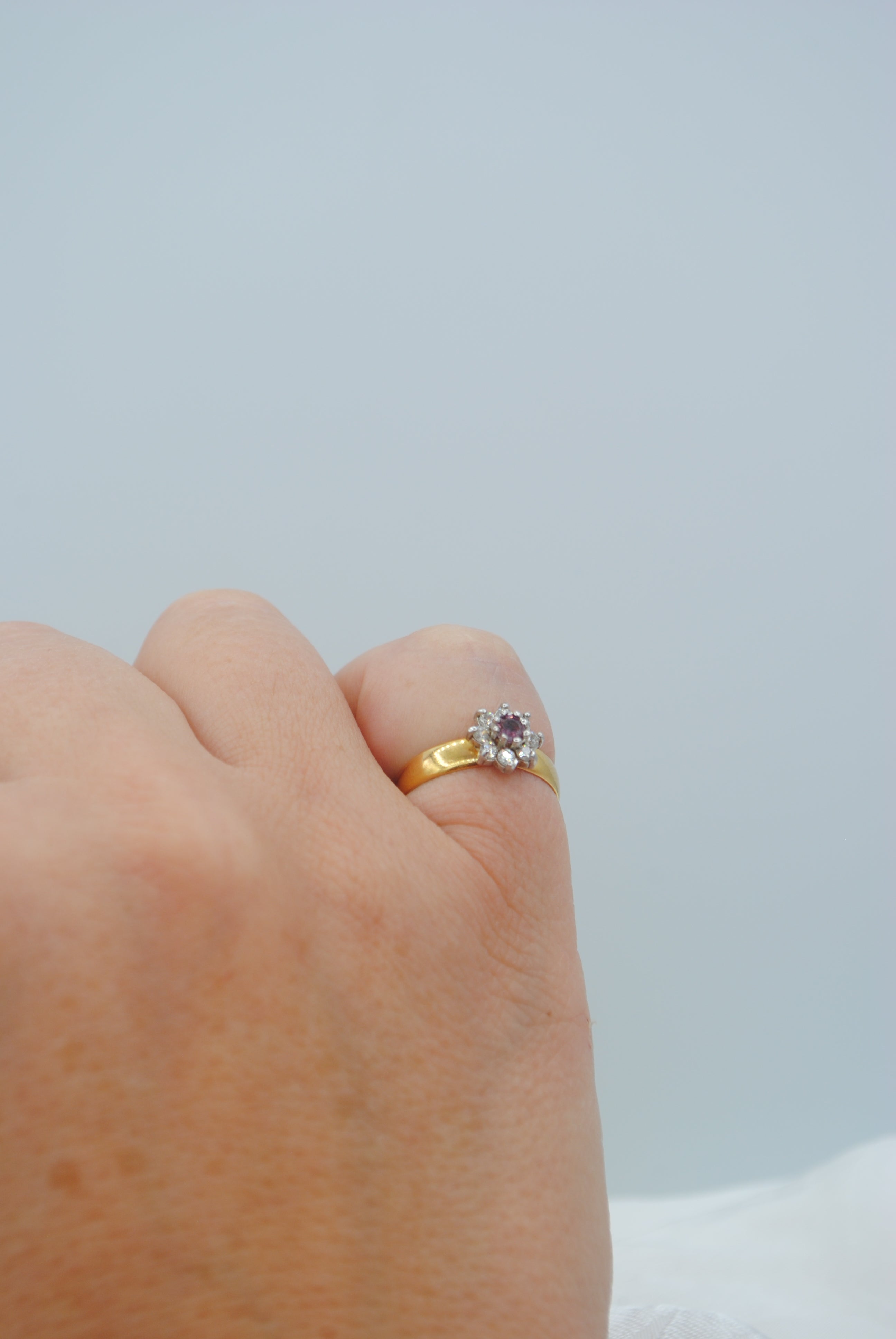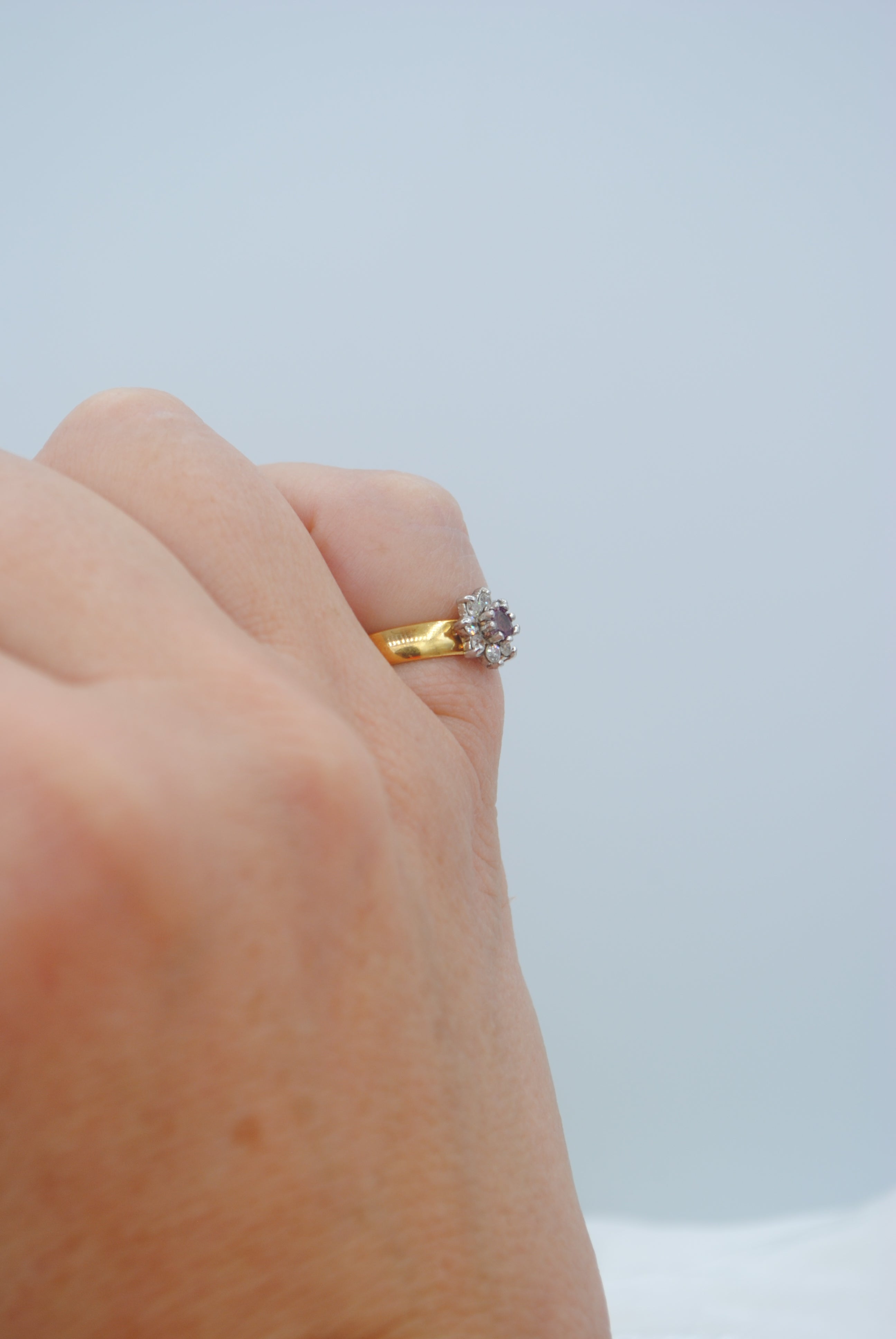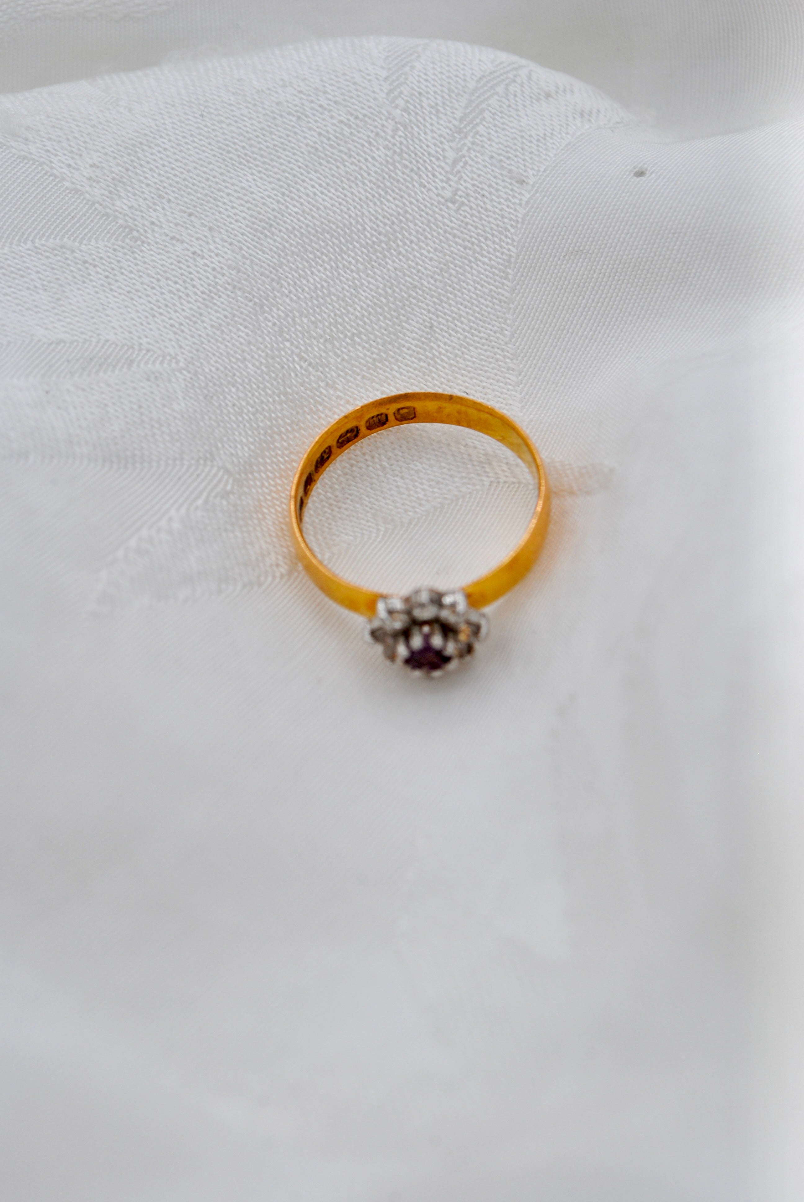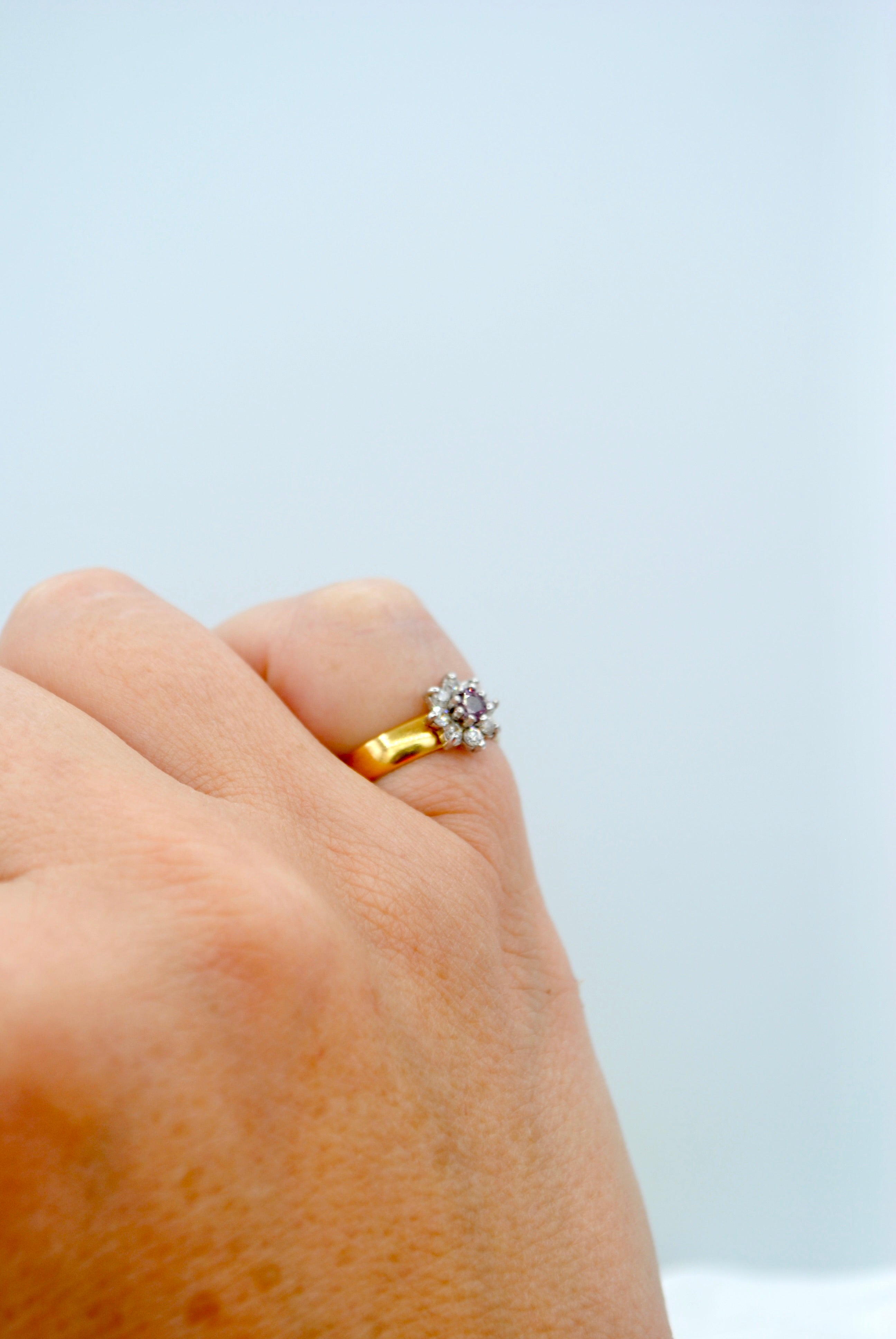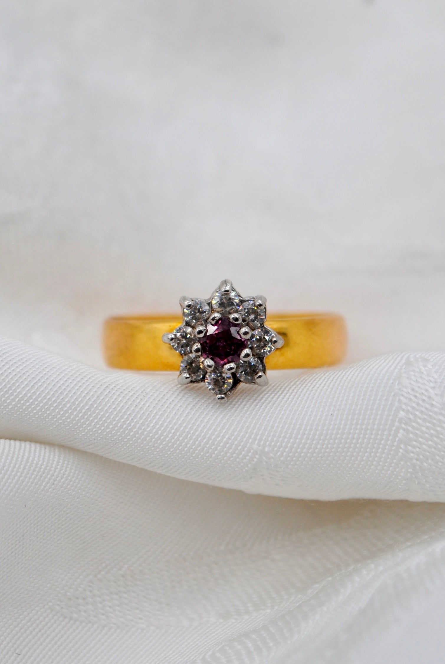 Vintage 22k gouden ring met robijn & diamant