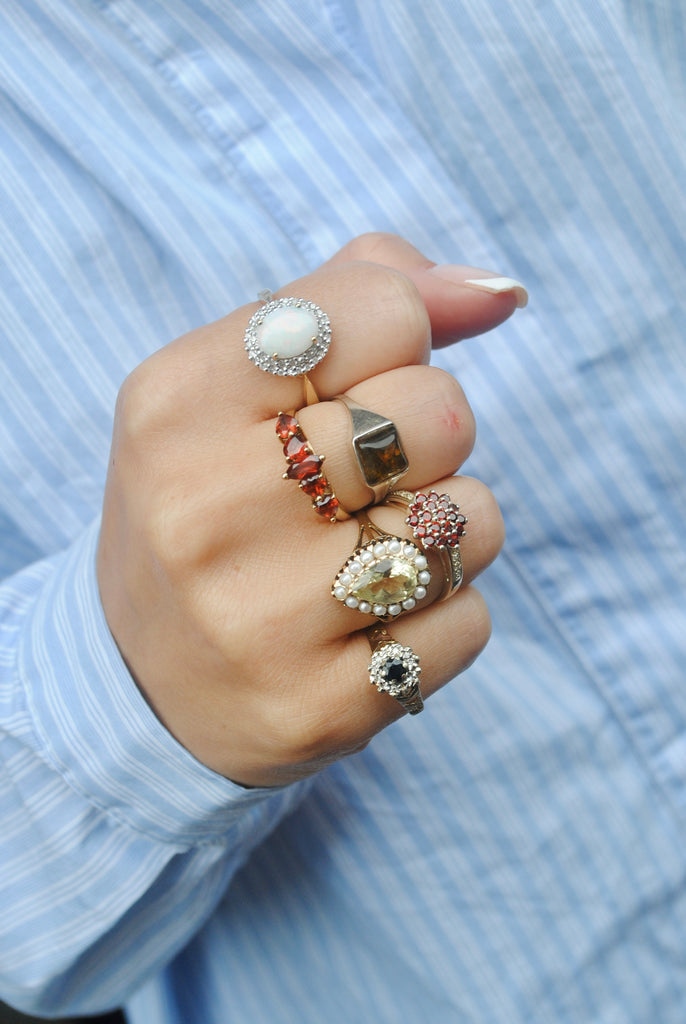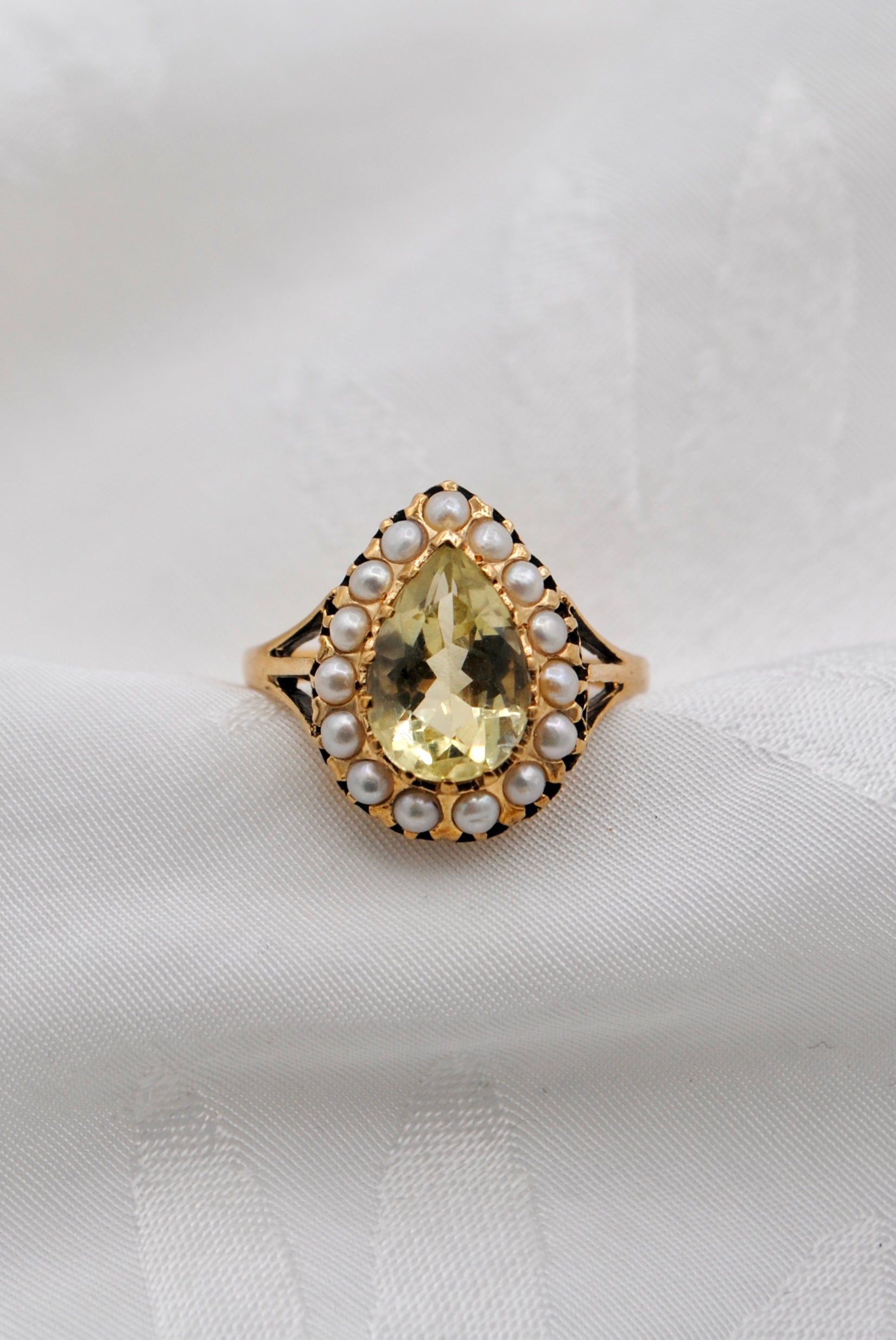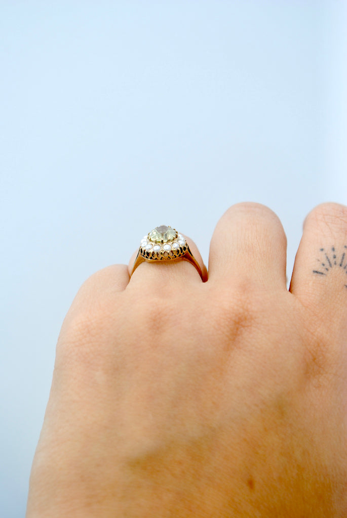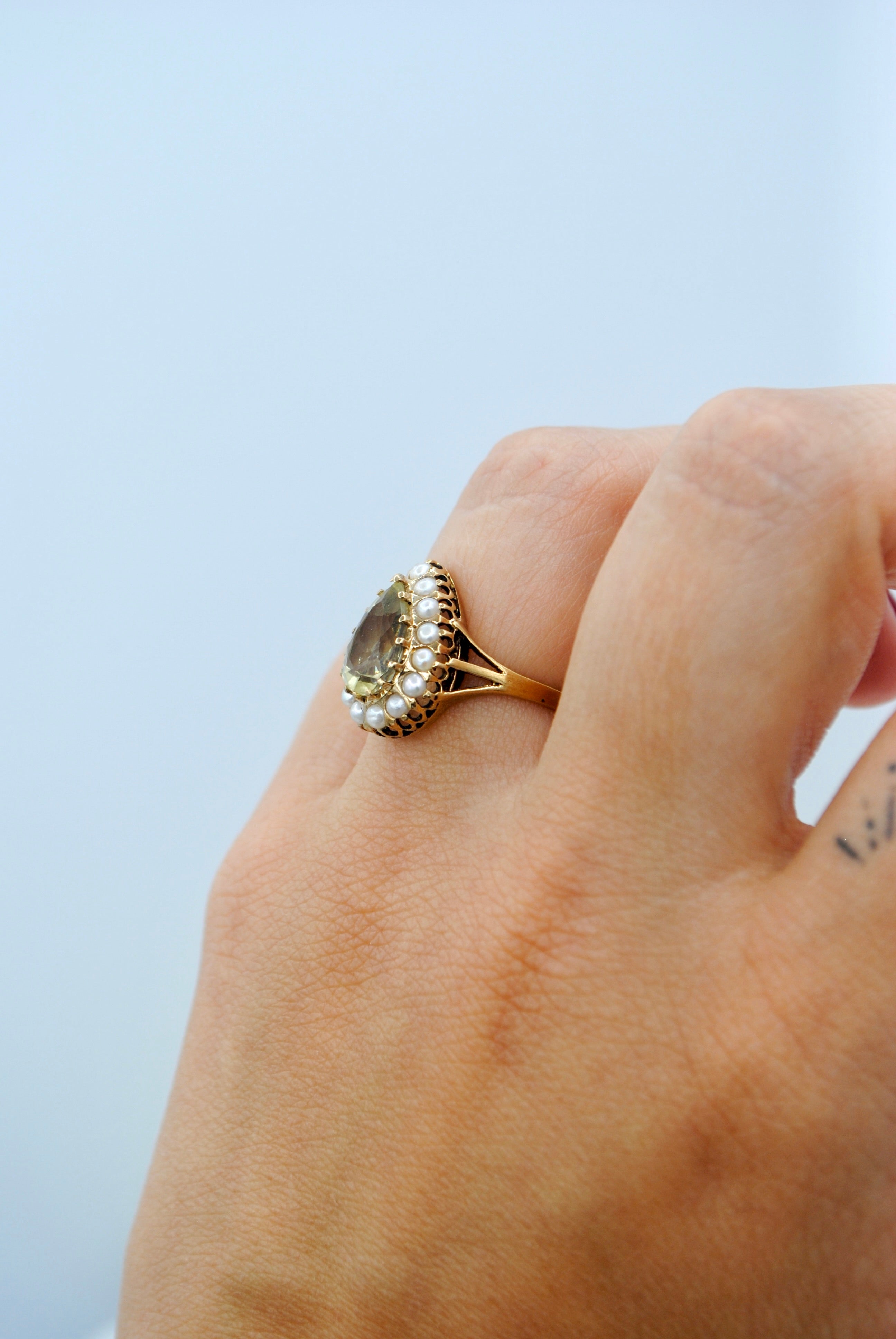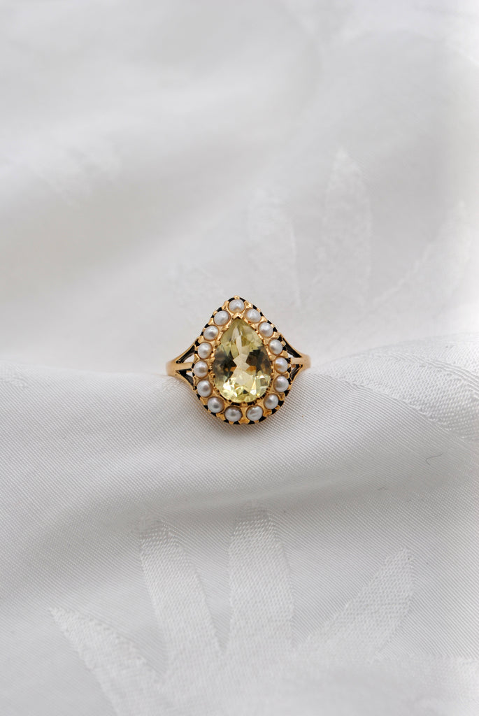 Vintage 9k gouden ring met citrien & parel