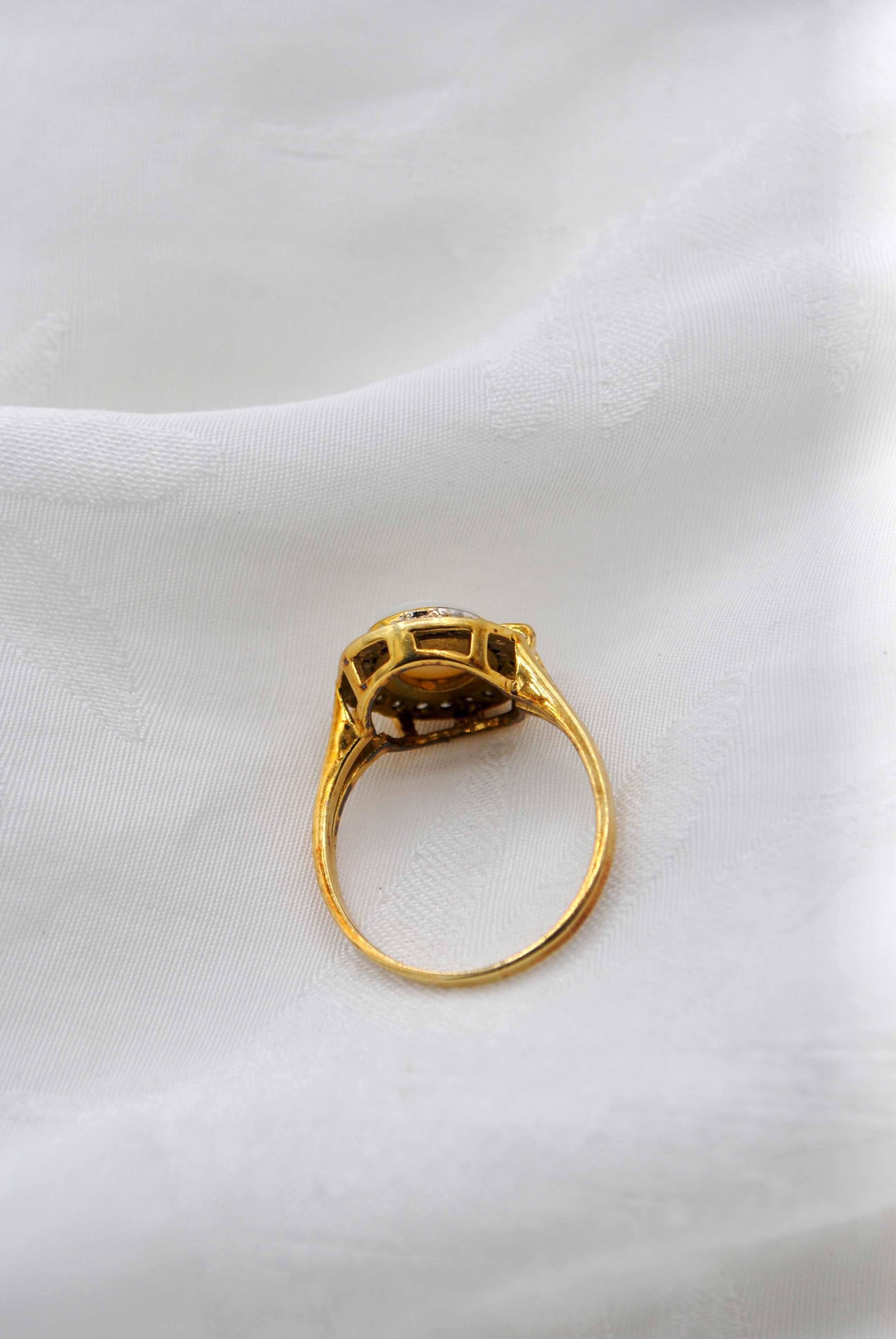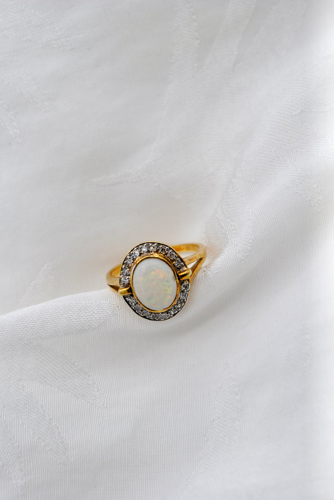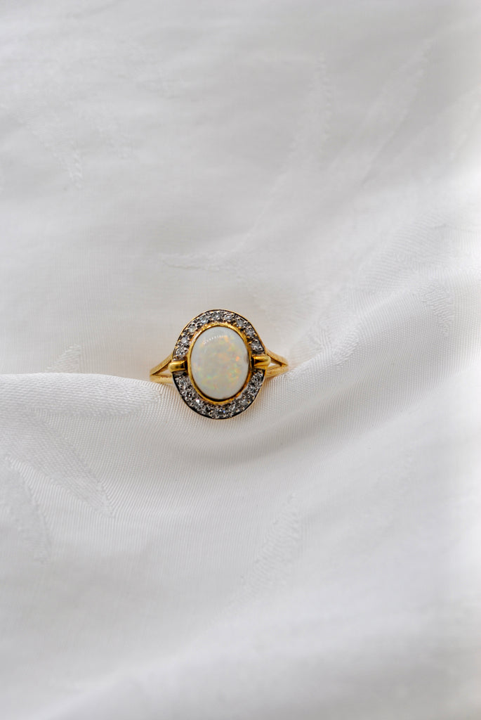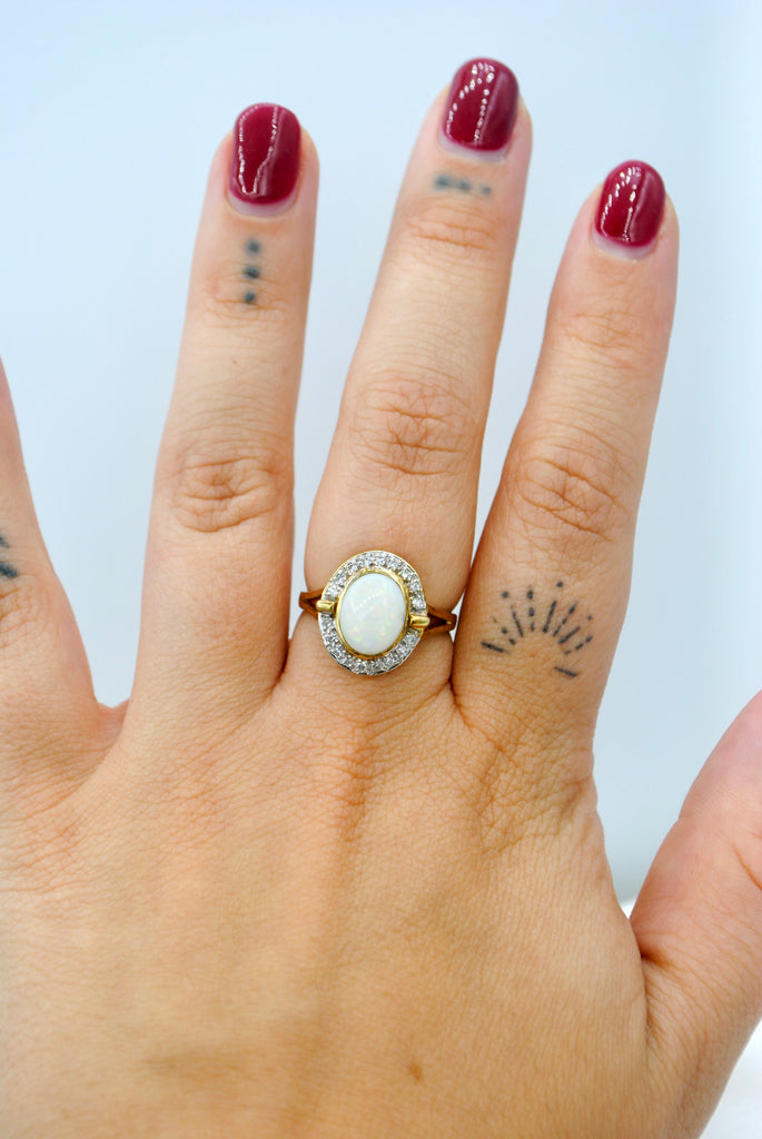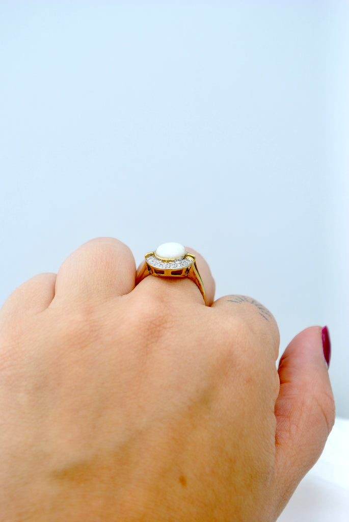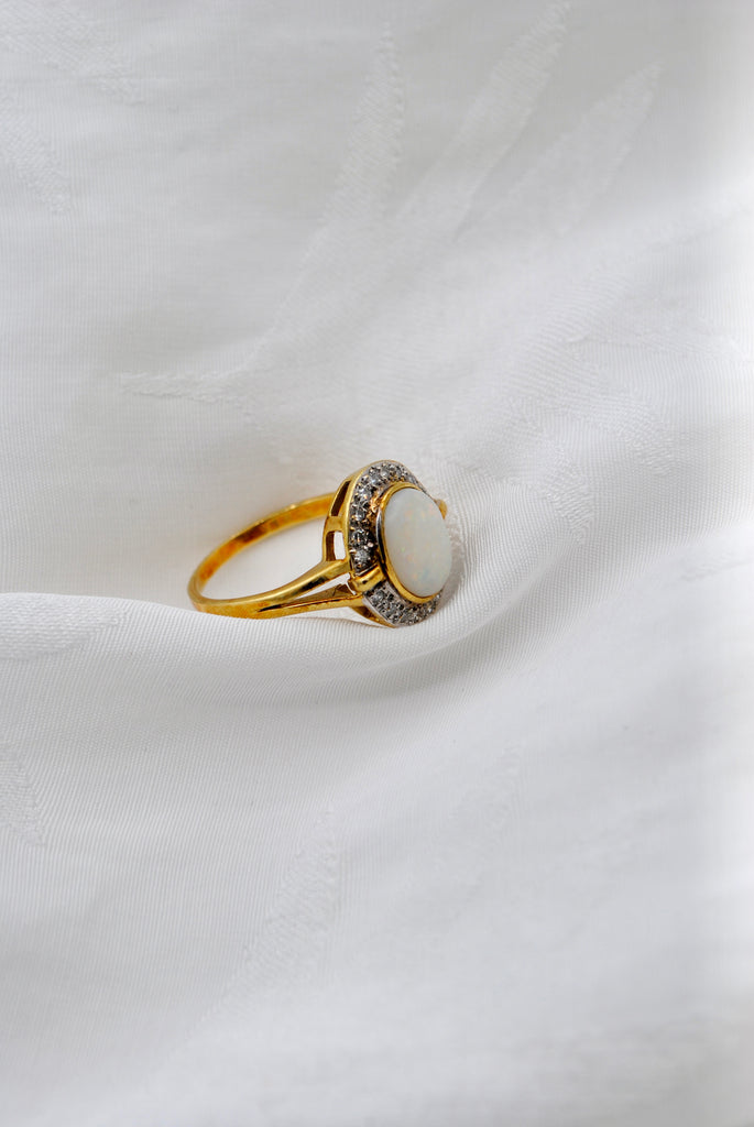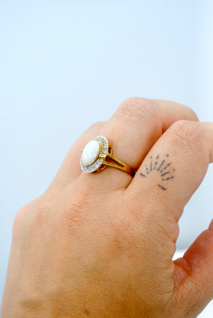 Vintage 9k gouden ring met opaal & diamant