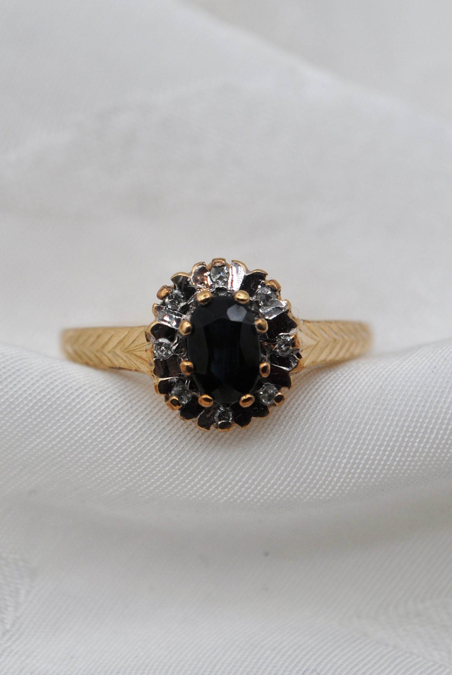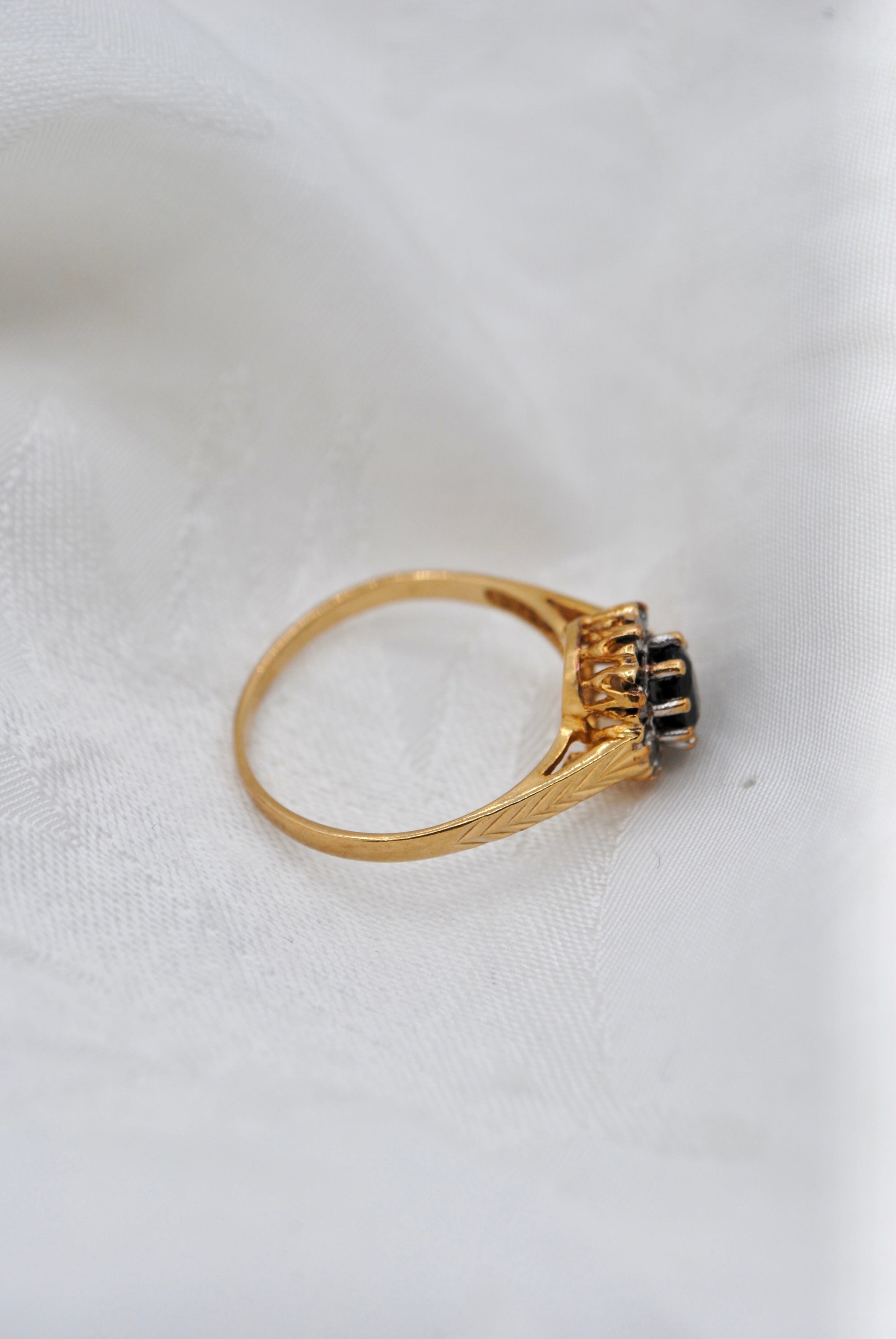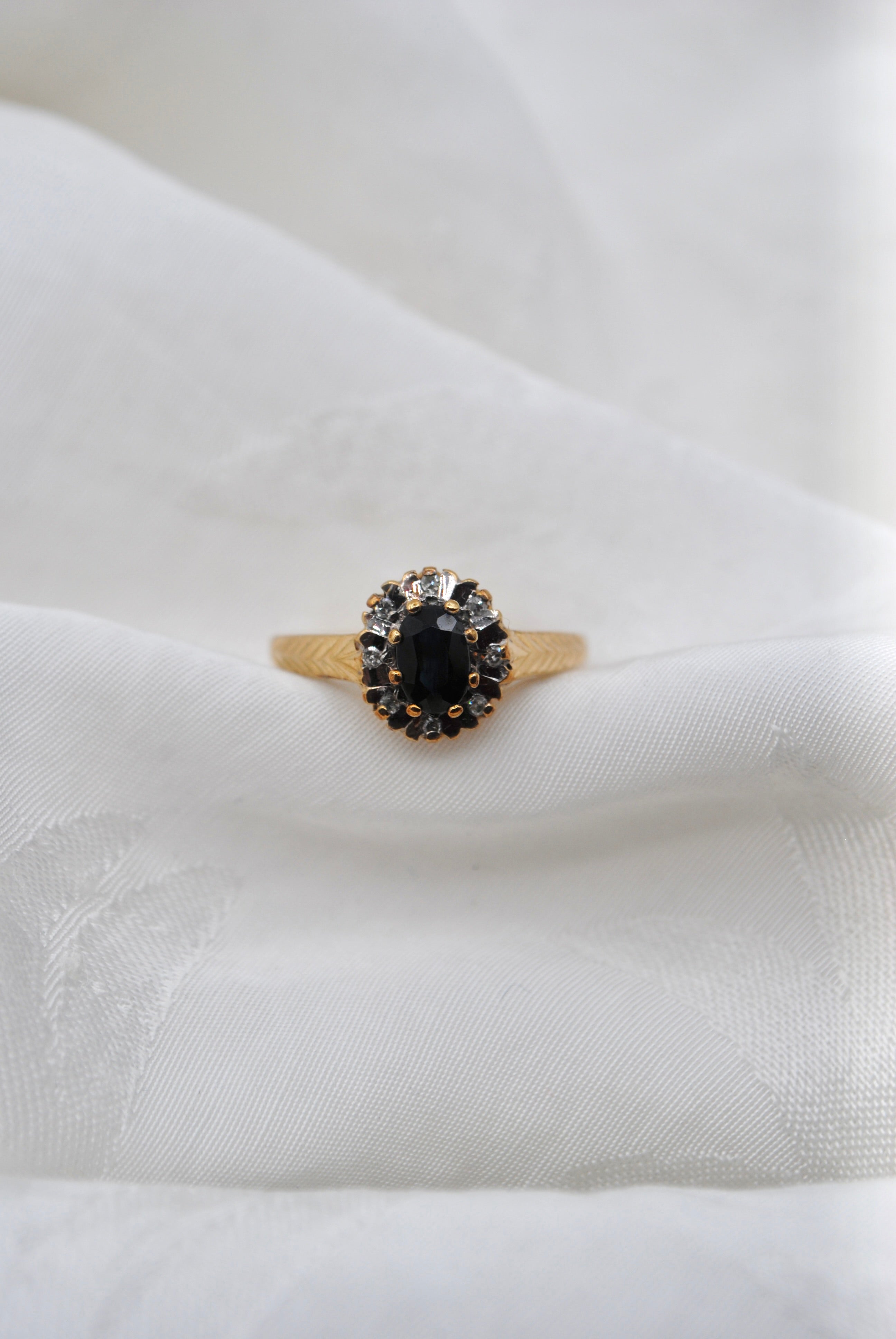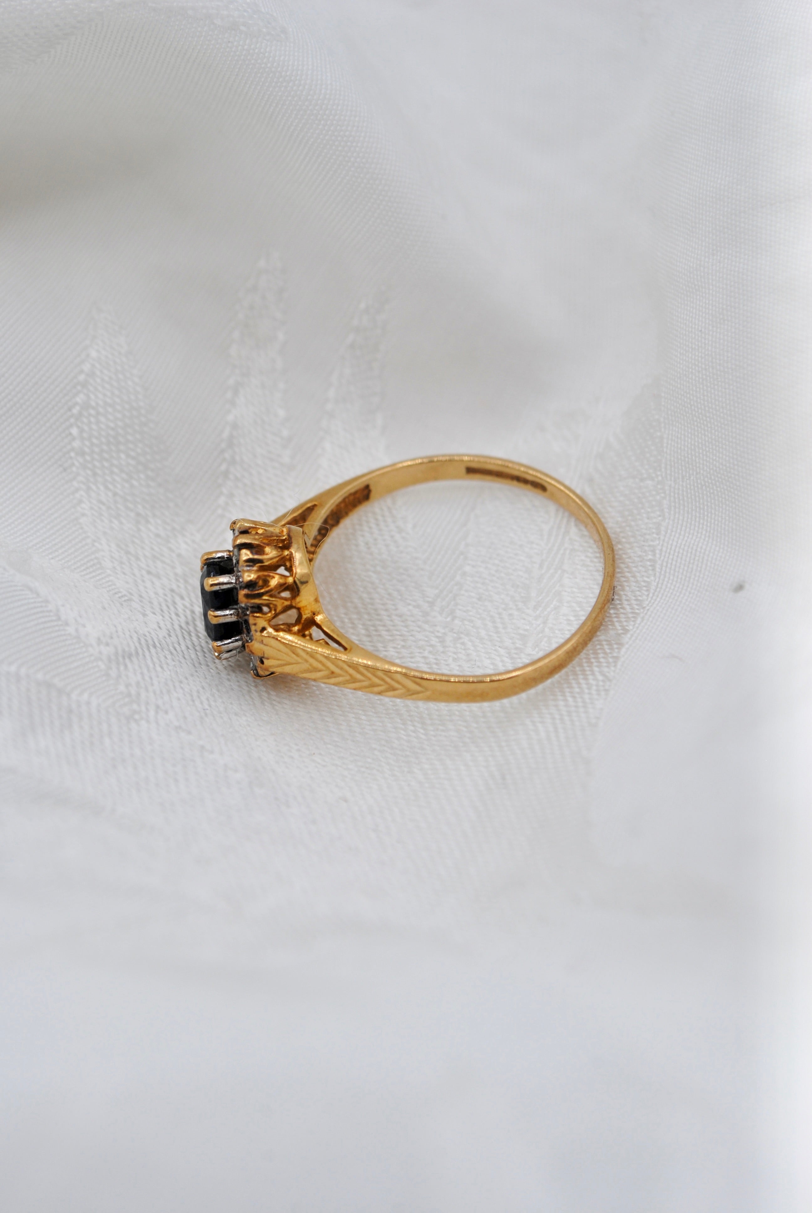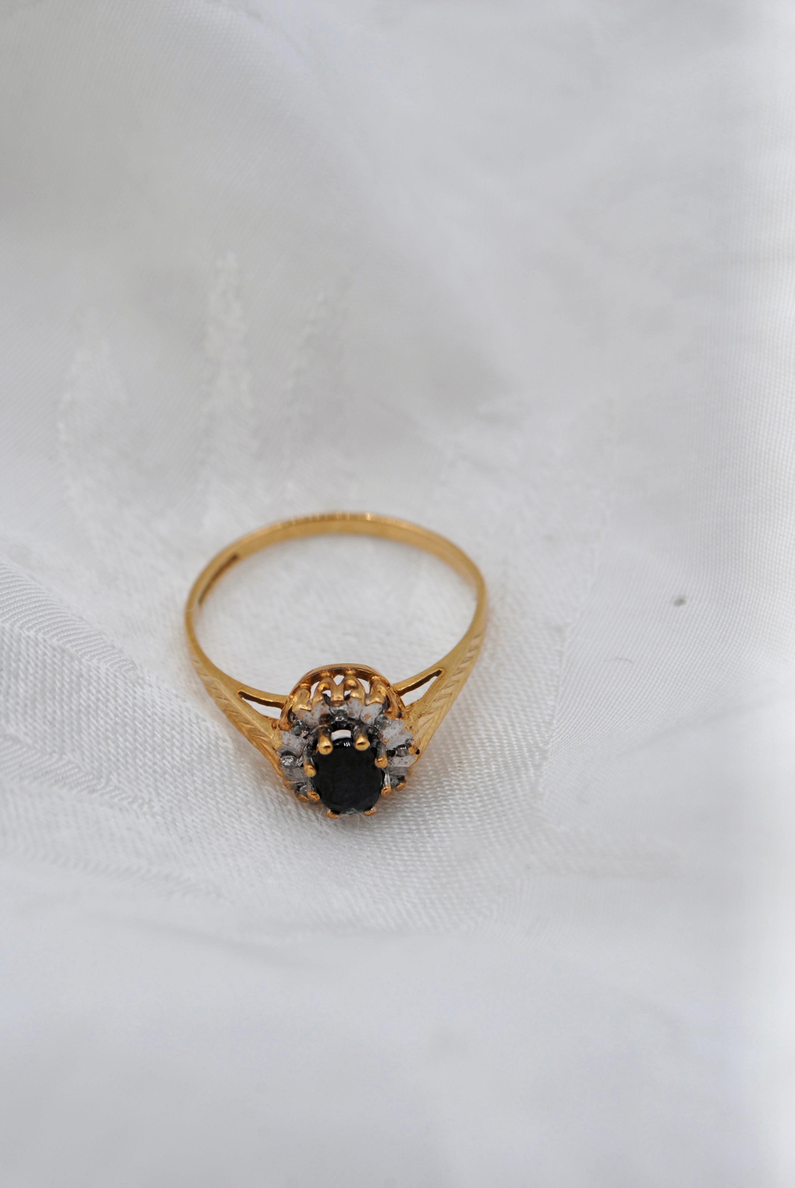 Vintage 9k ring met saffier & diamant