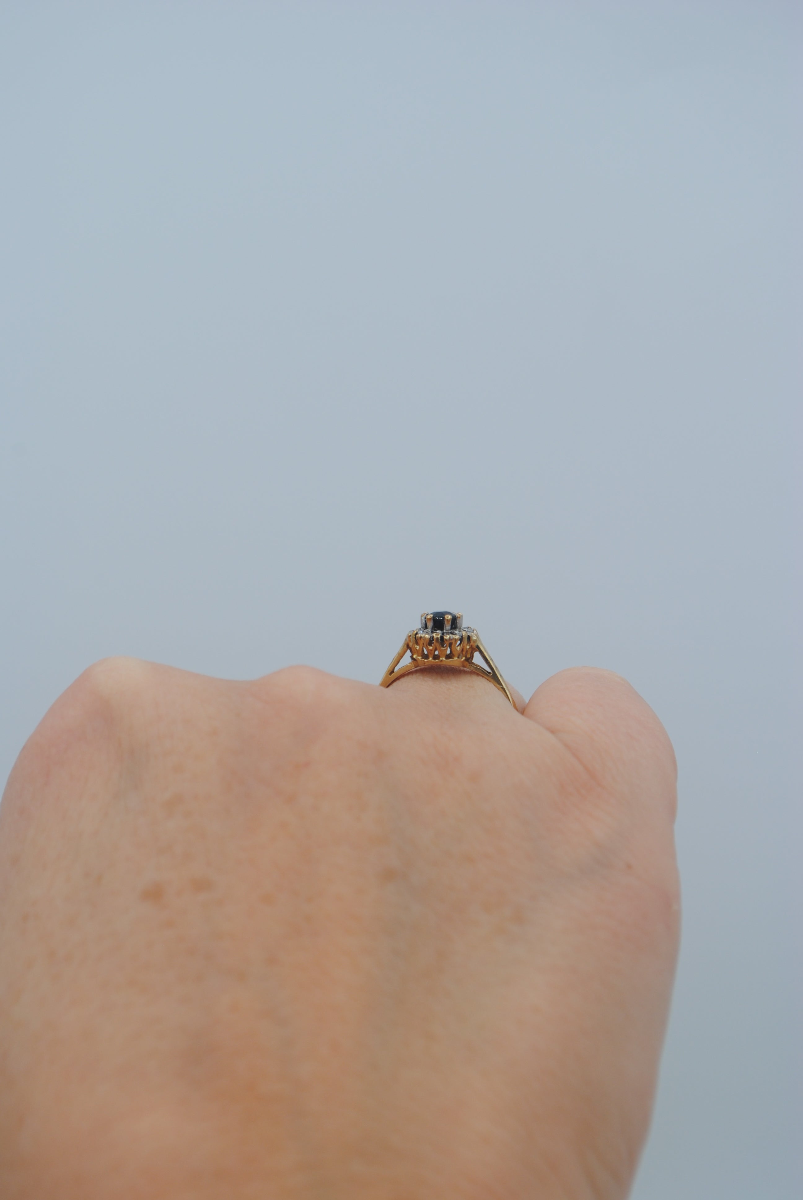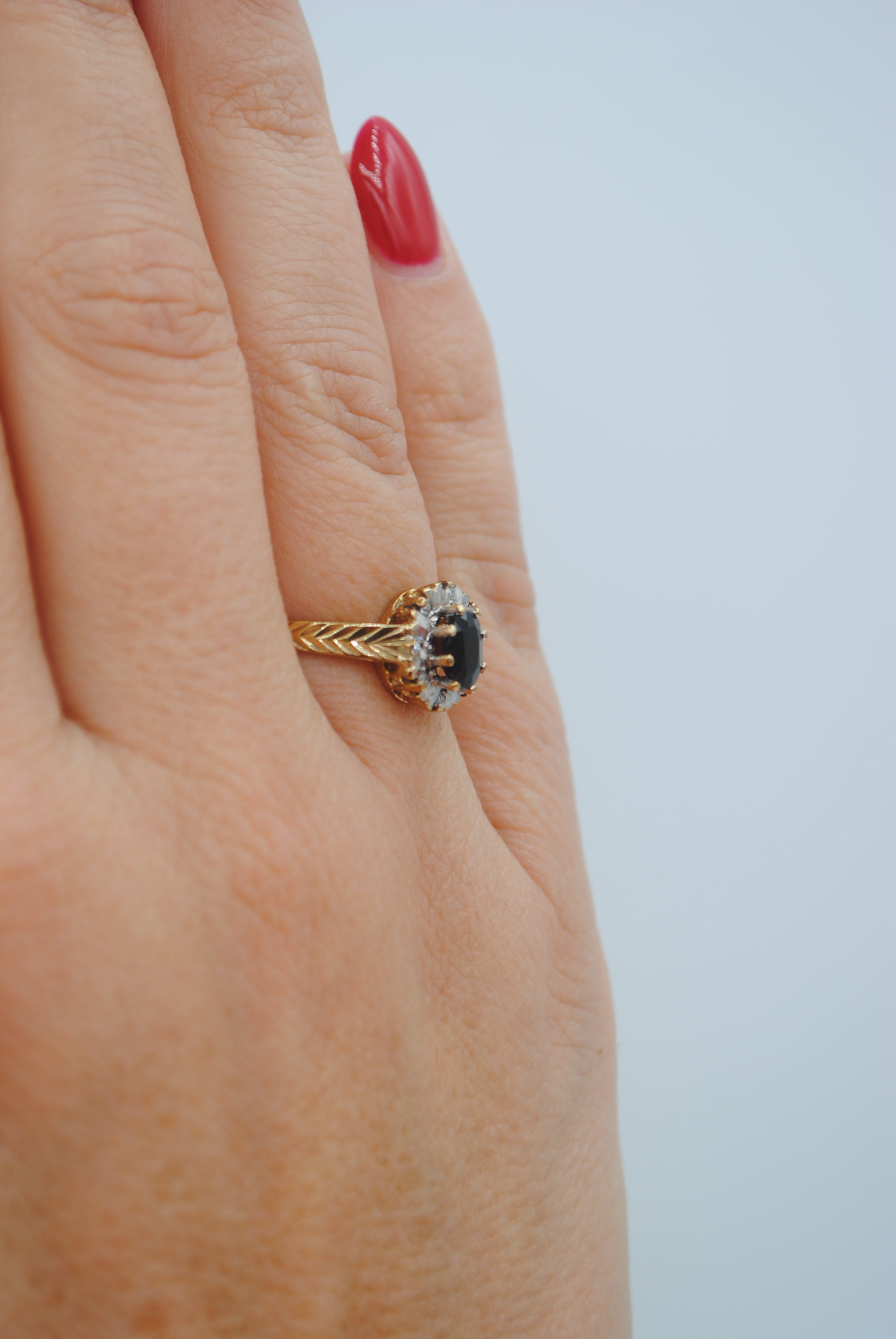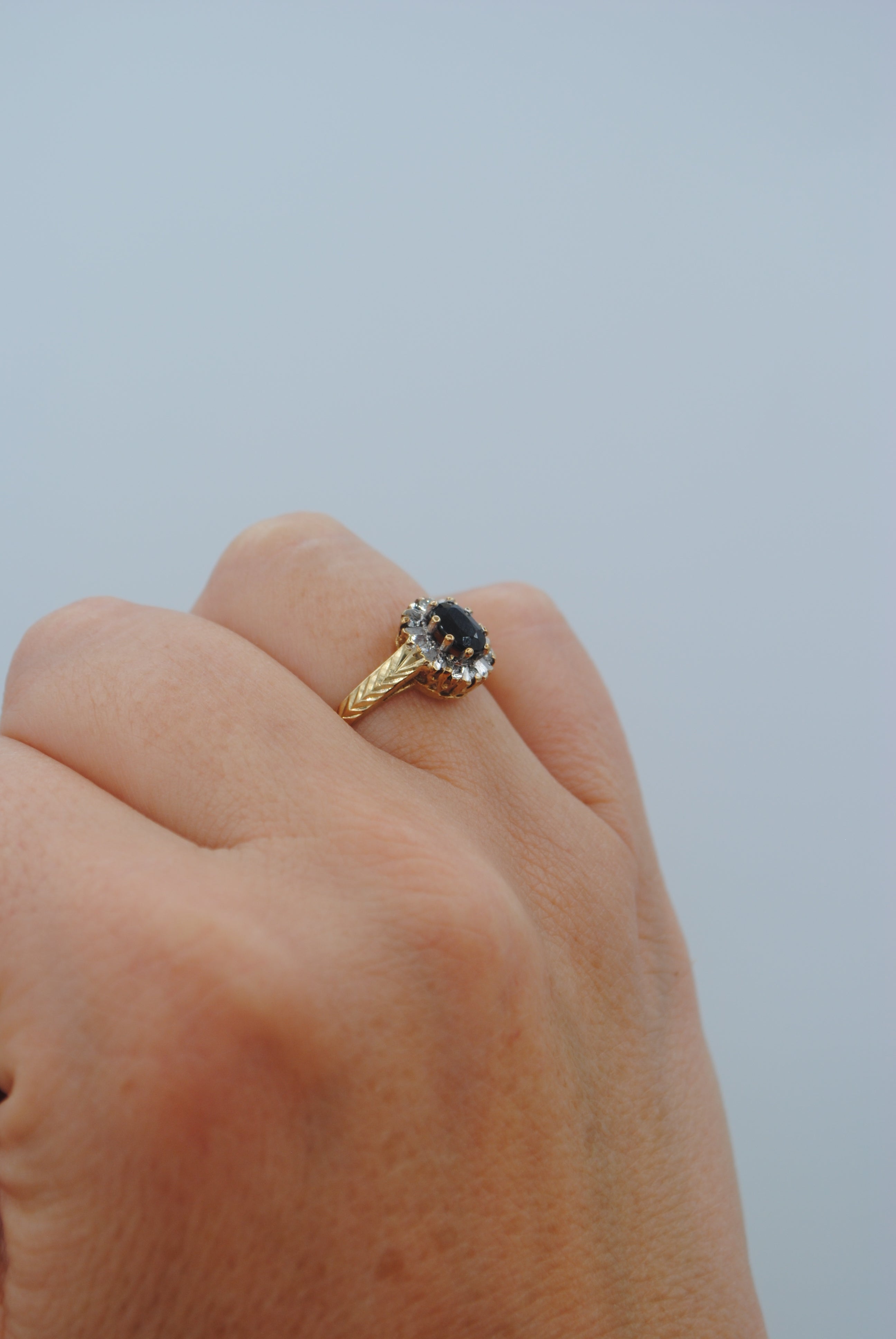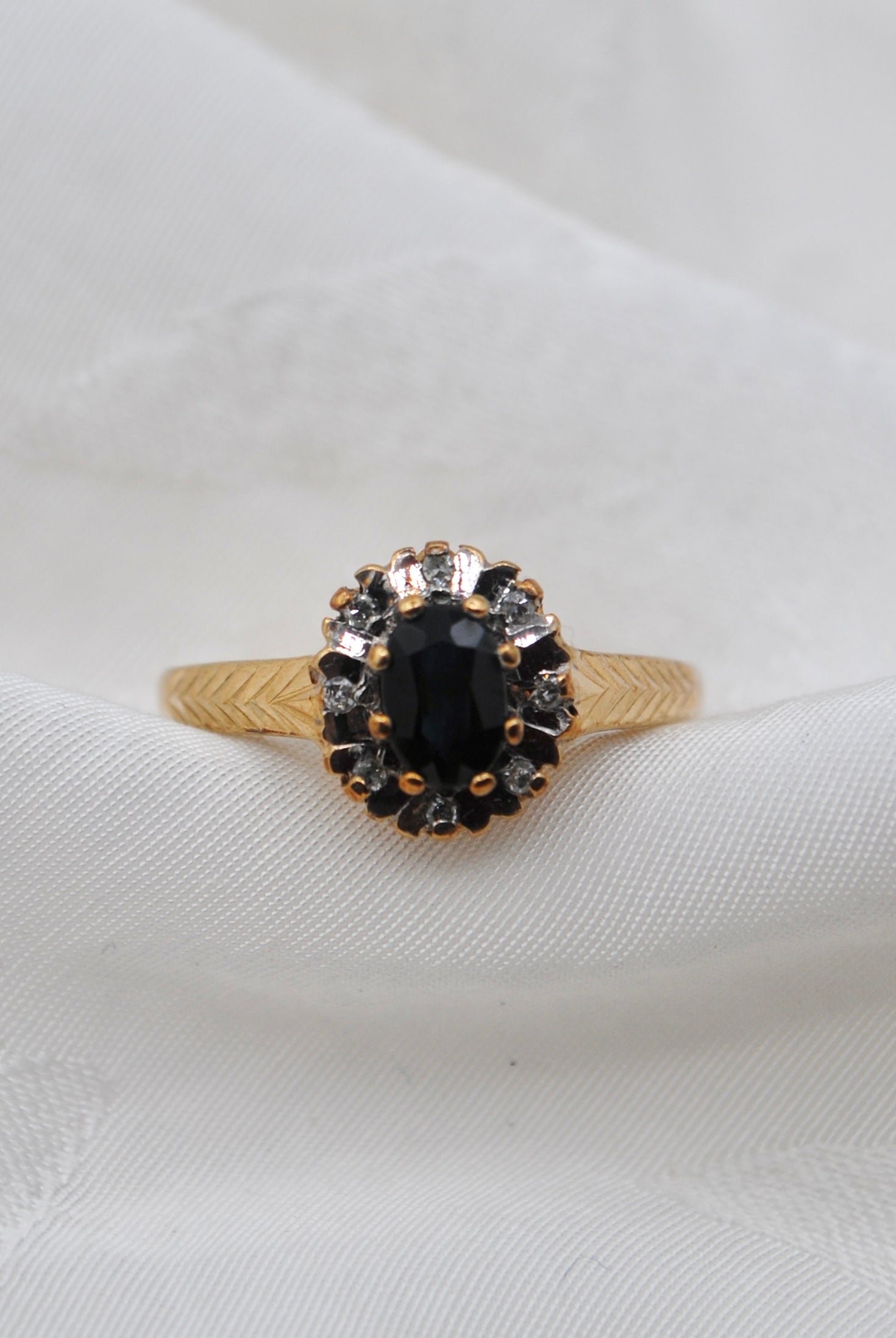 Vintage 9k ring met saffier & diamant