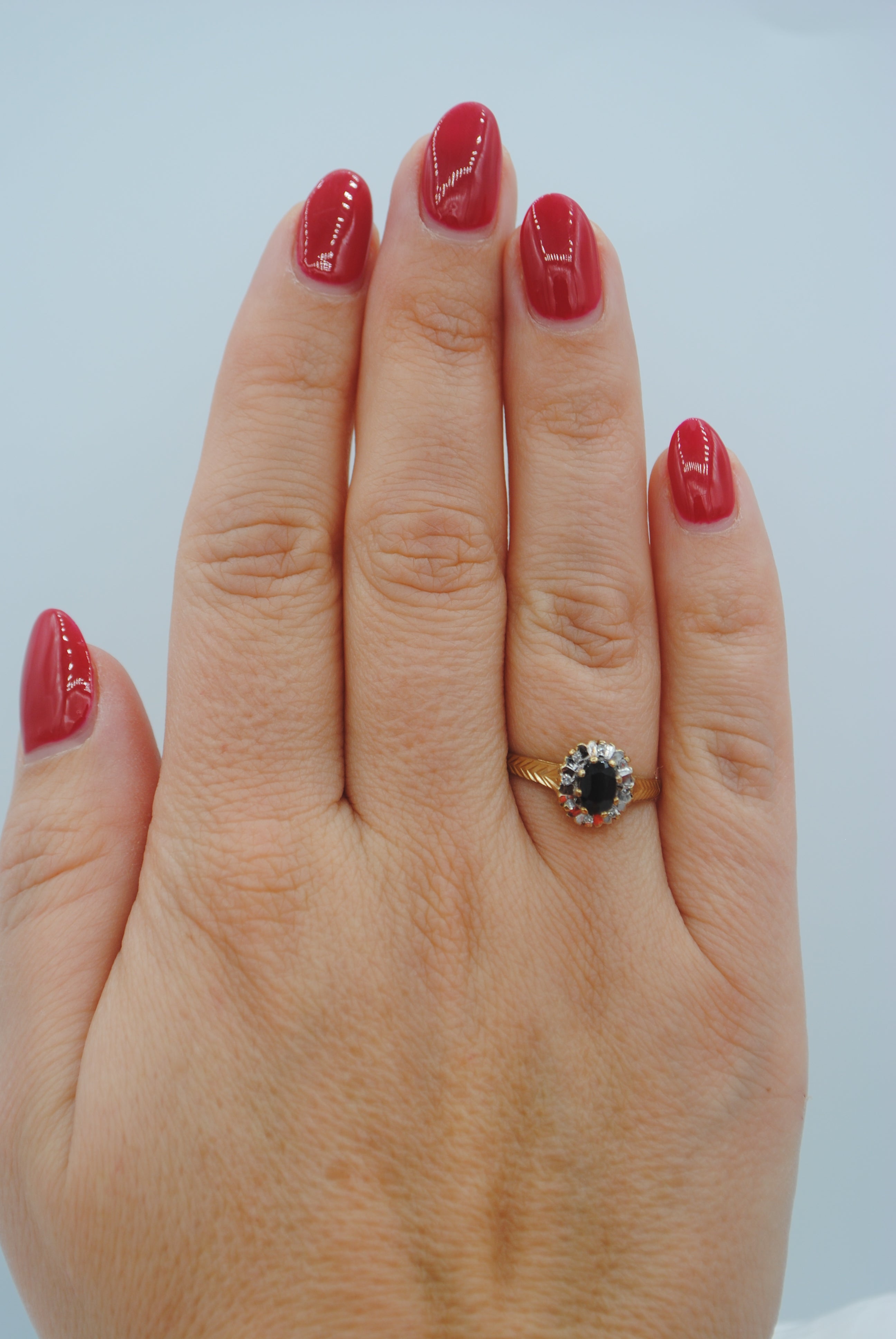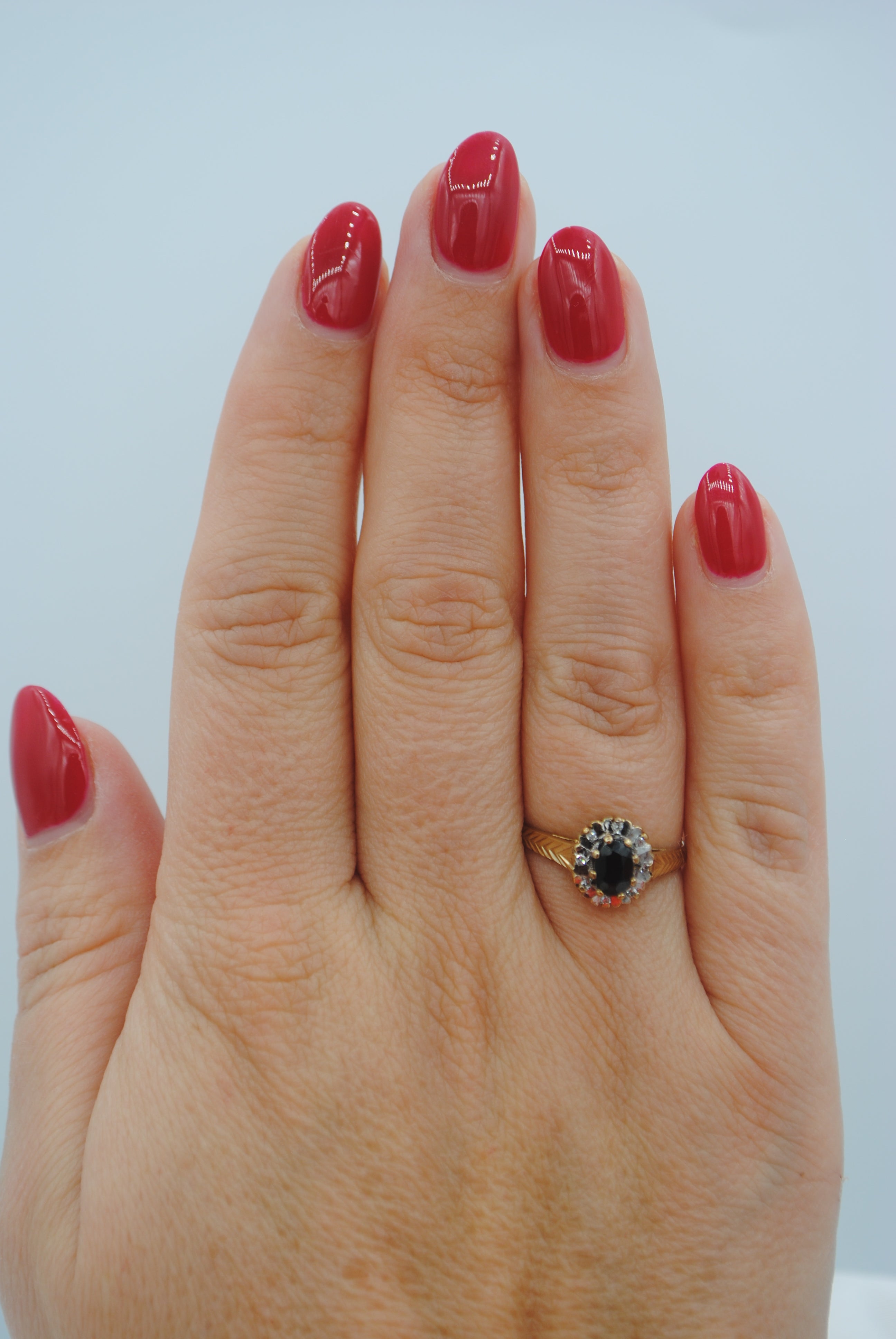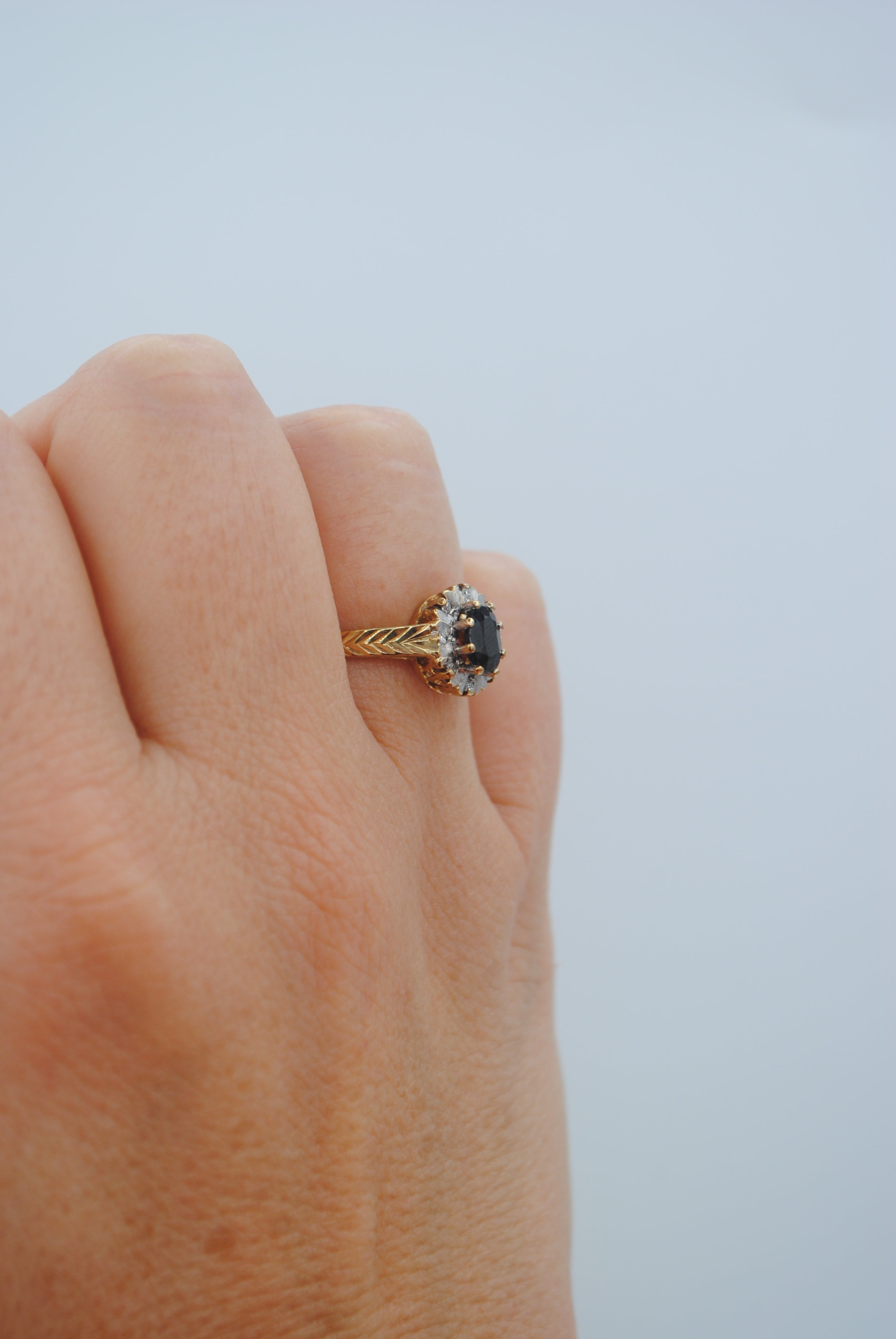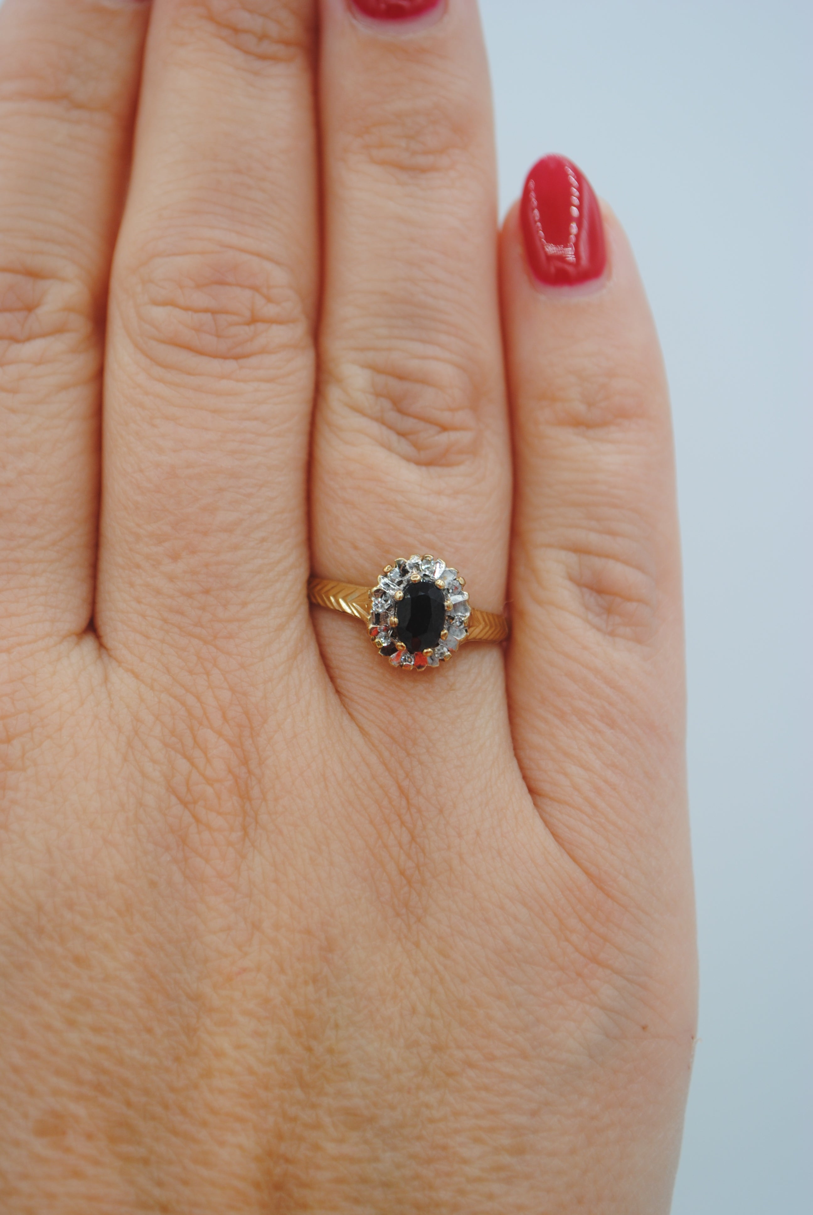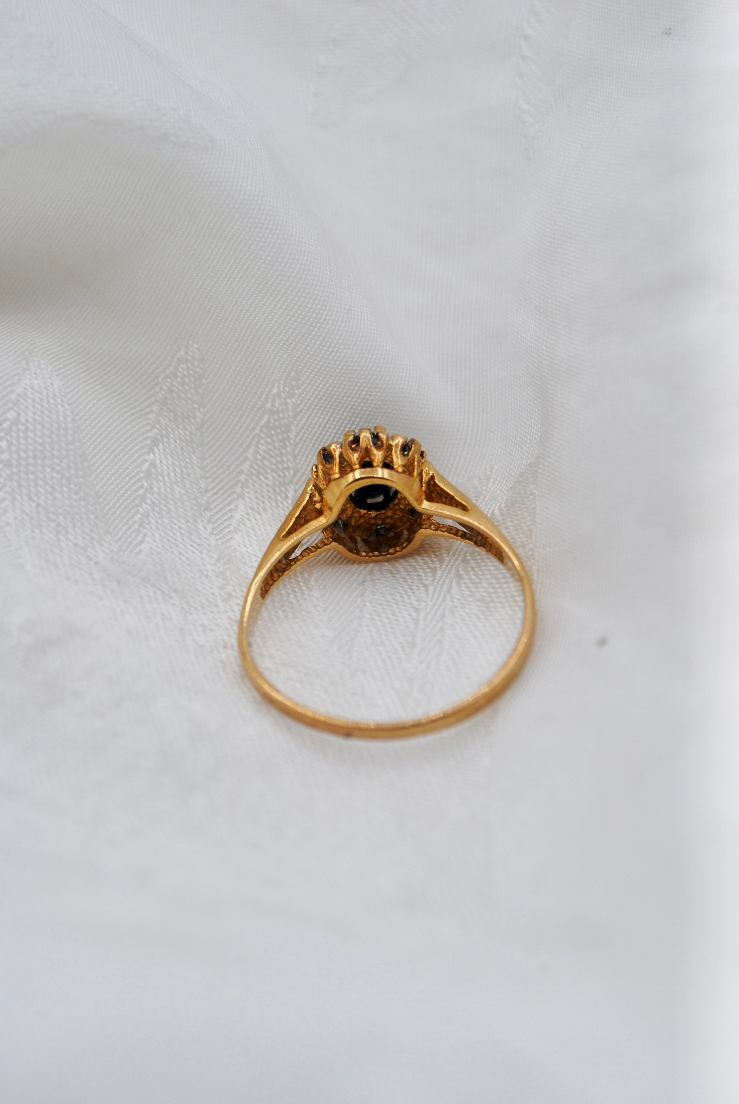 Vintage 9k ring met saffier & diamant