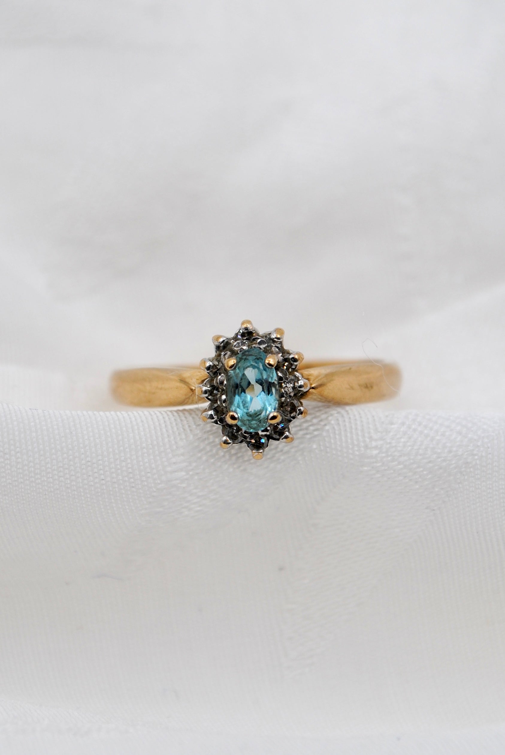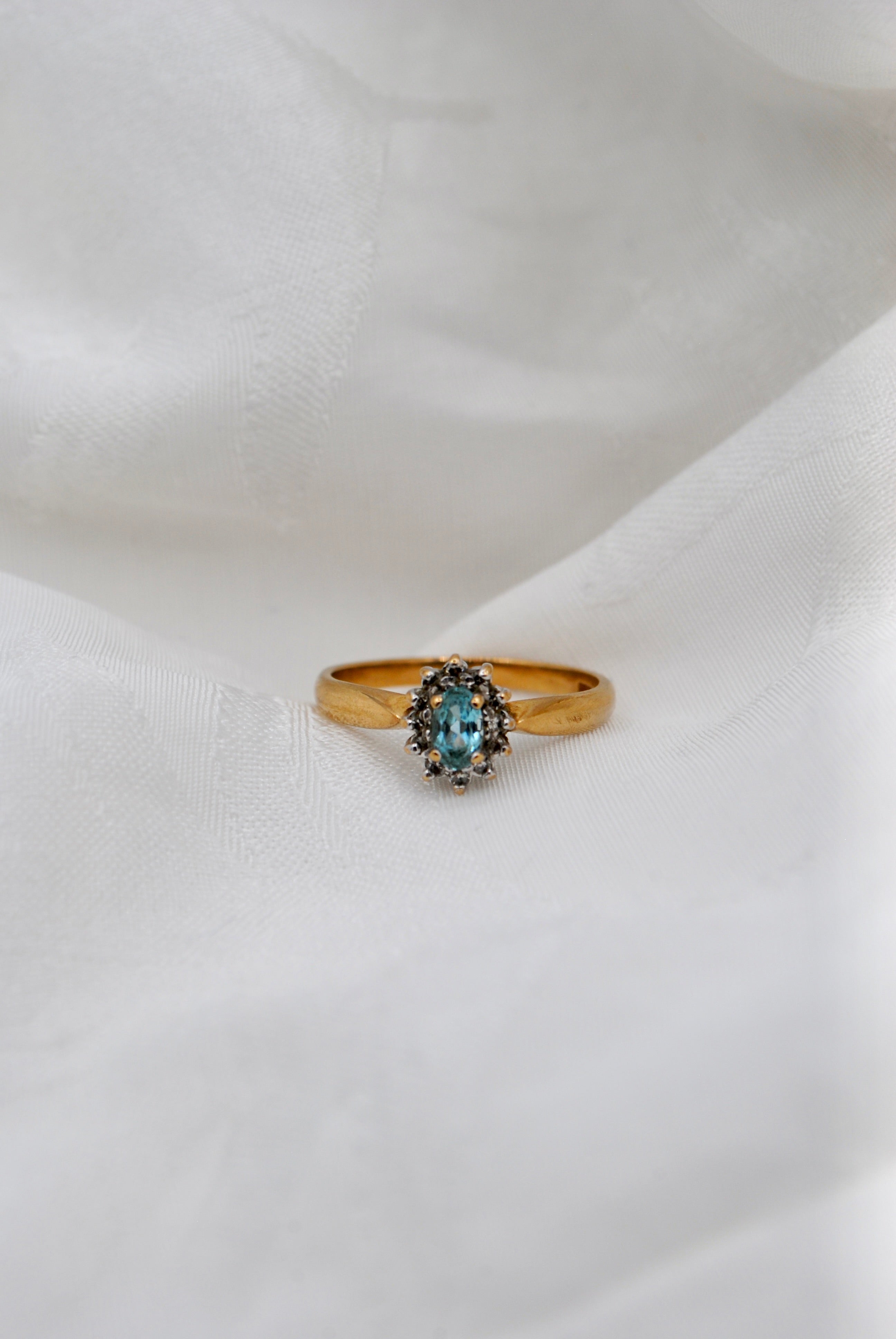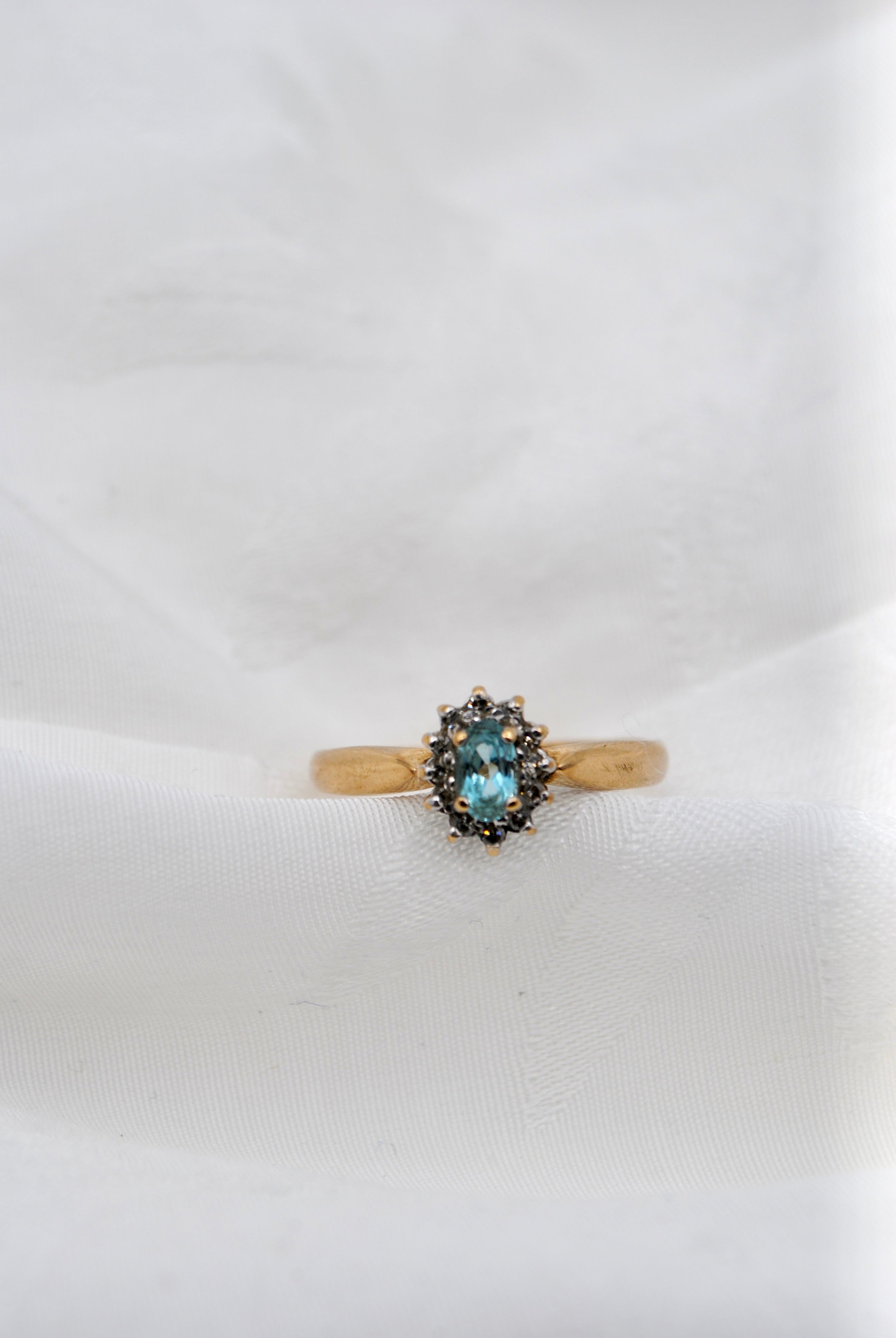 Vintage 9k ring met topaas & diamant