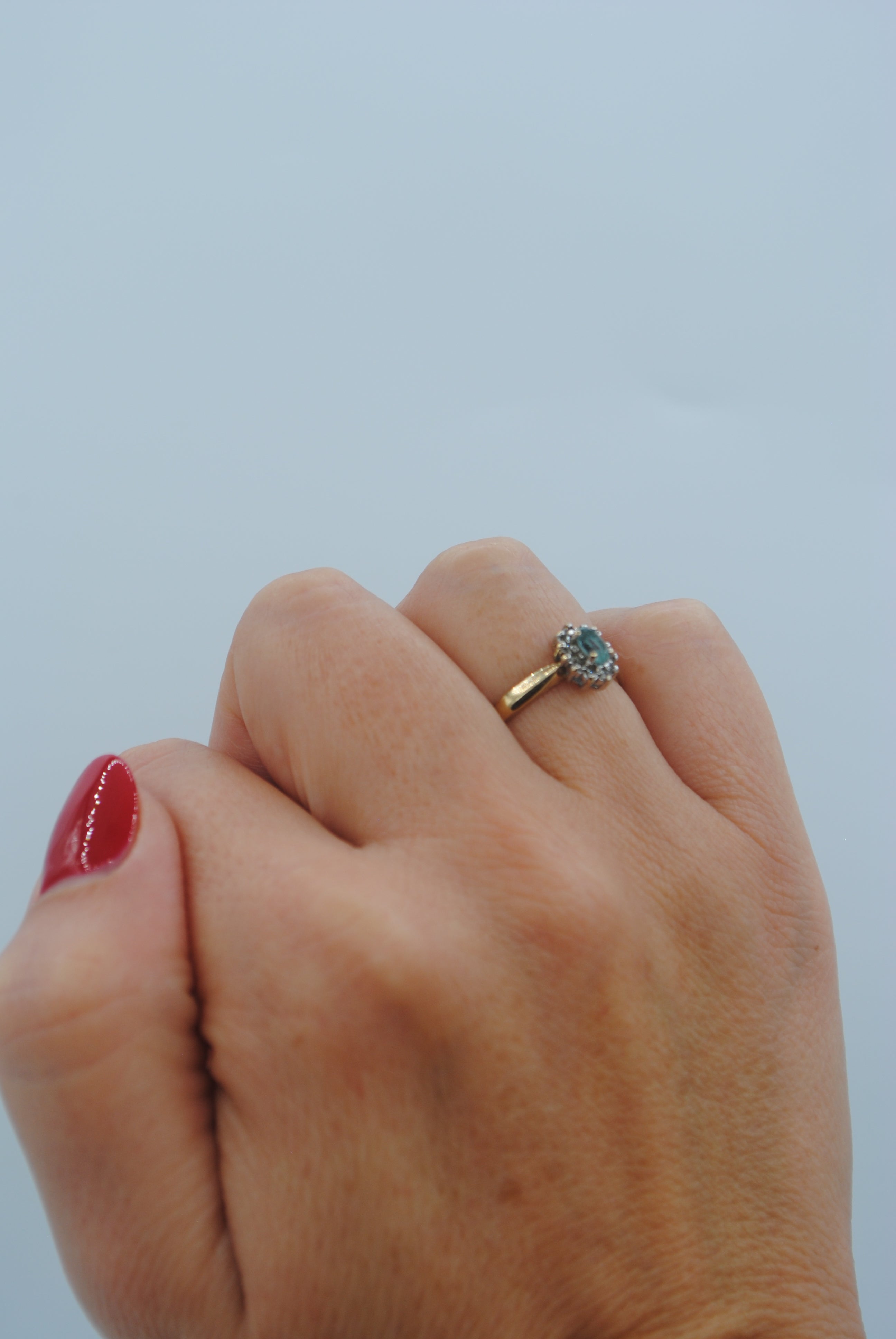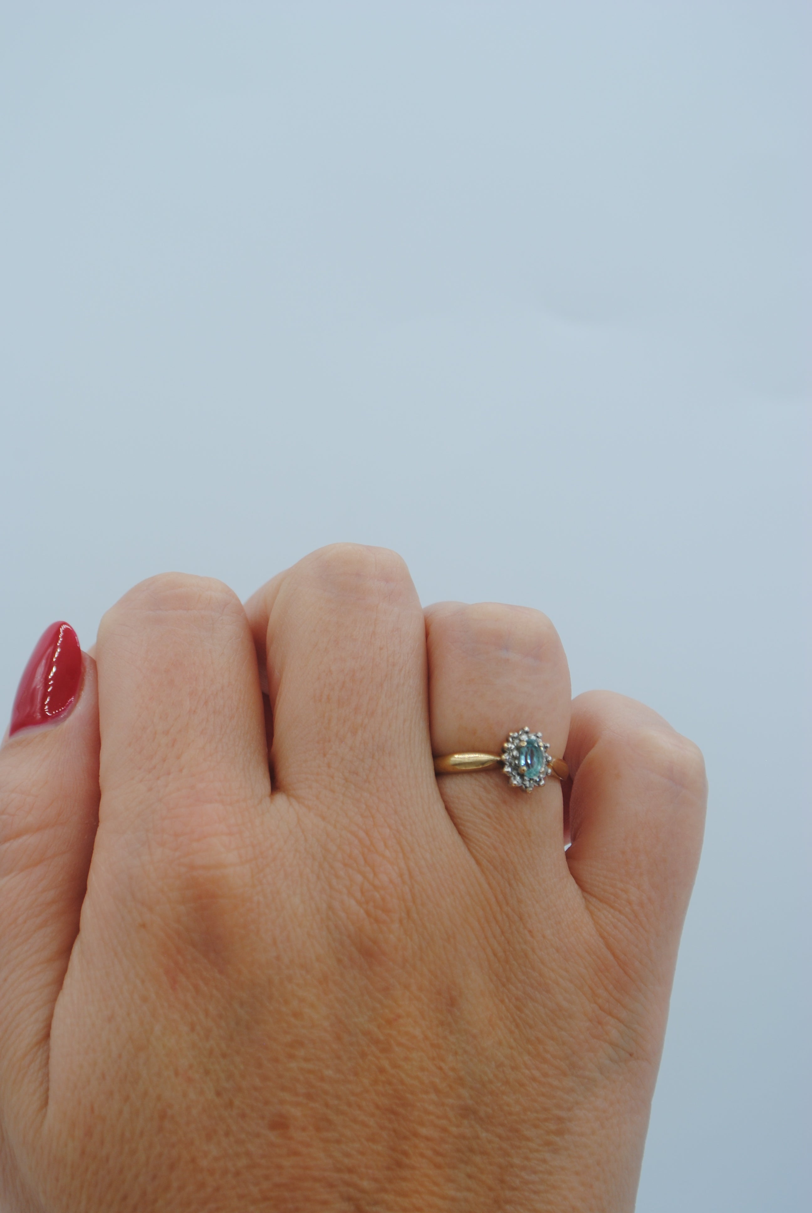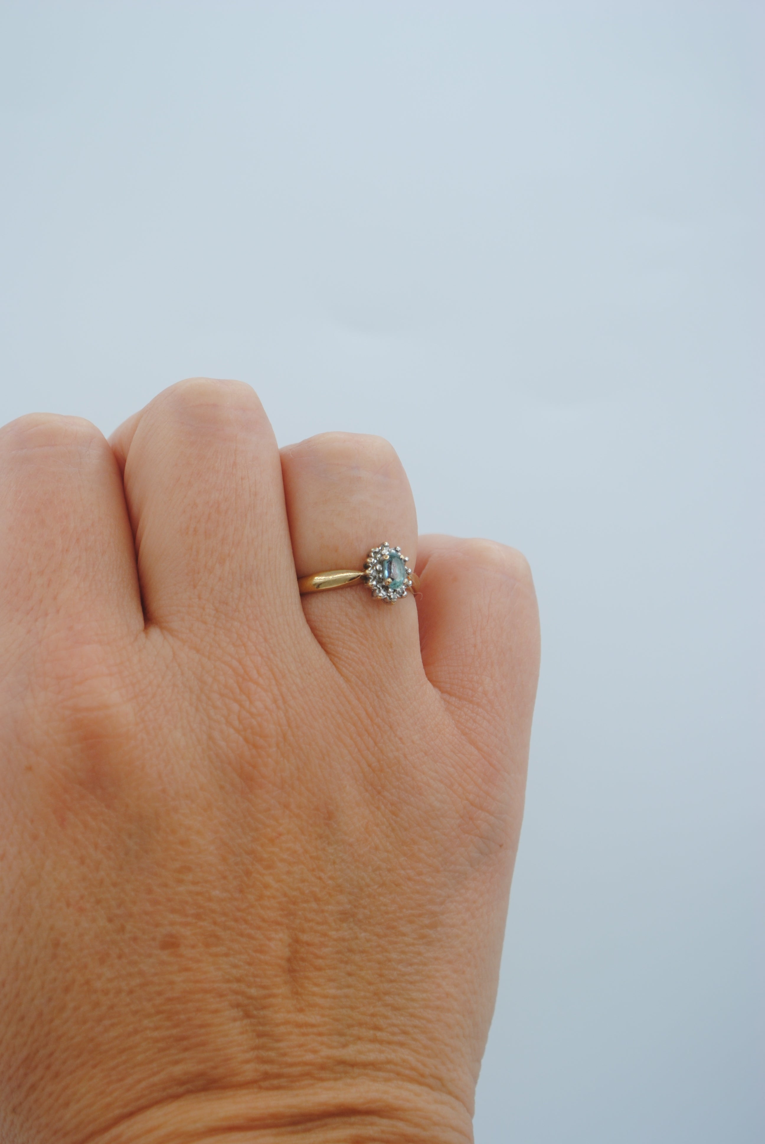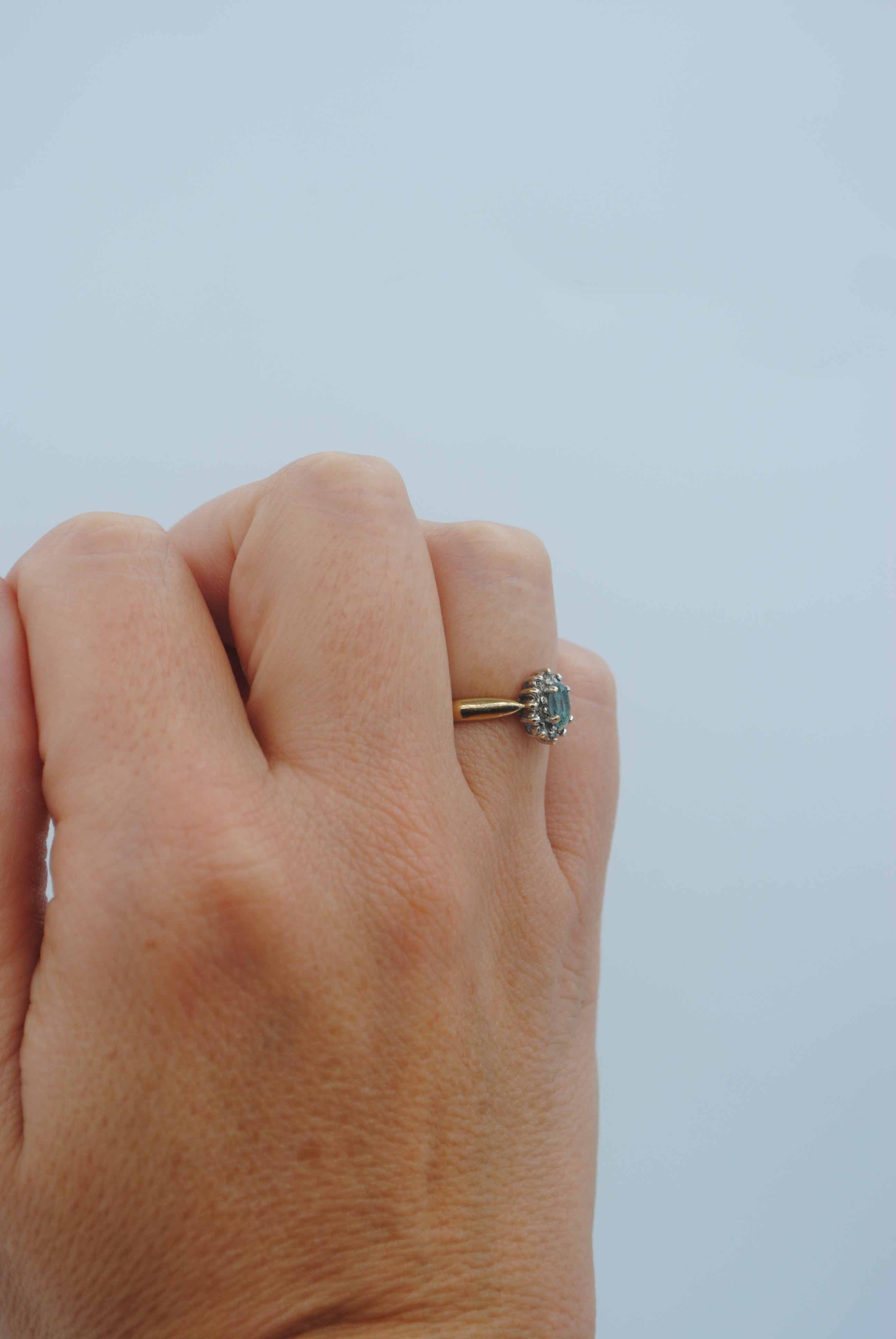 Vintage 9k ring met topaas & diamant
